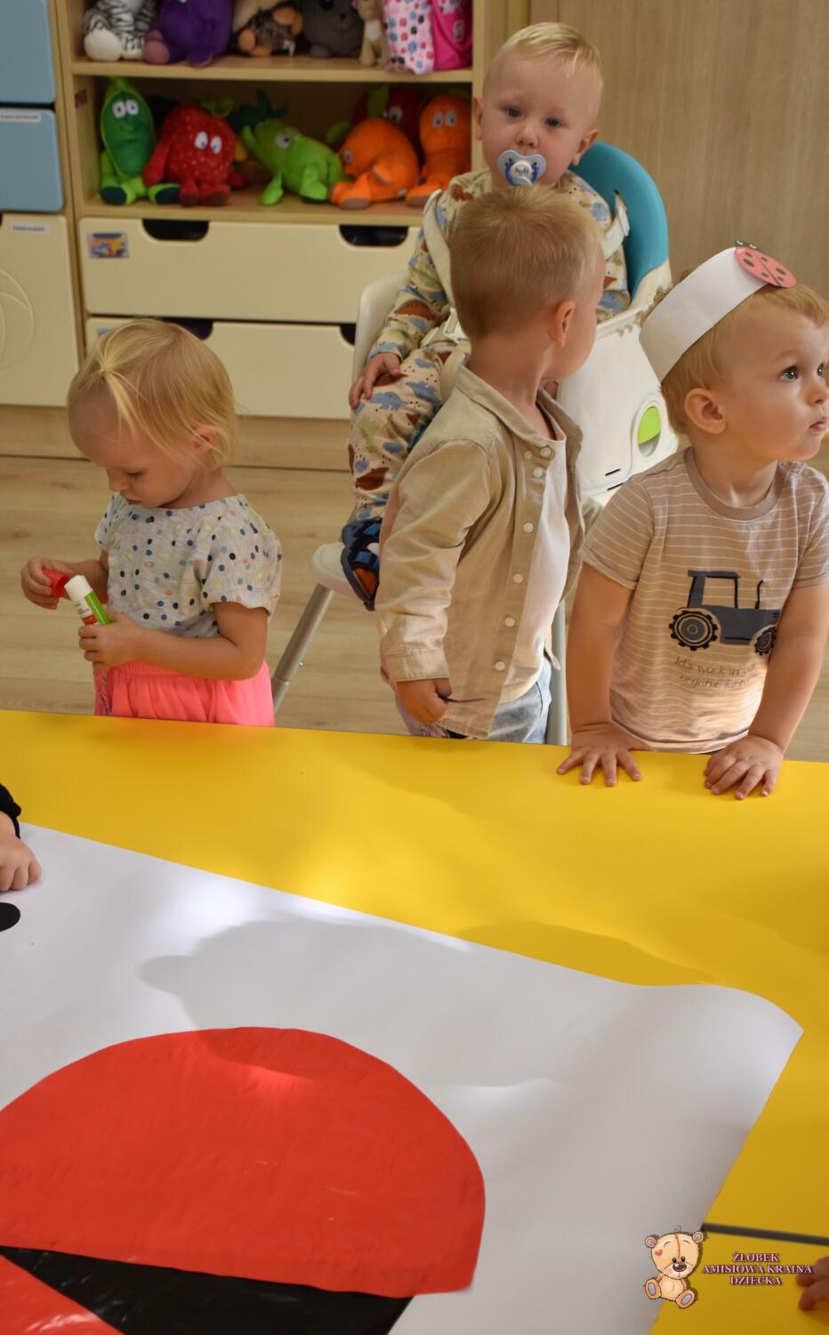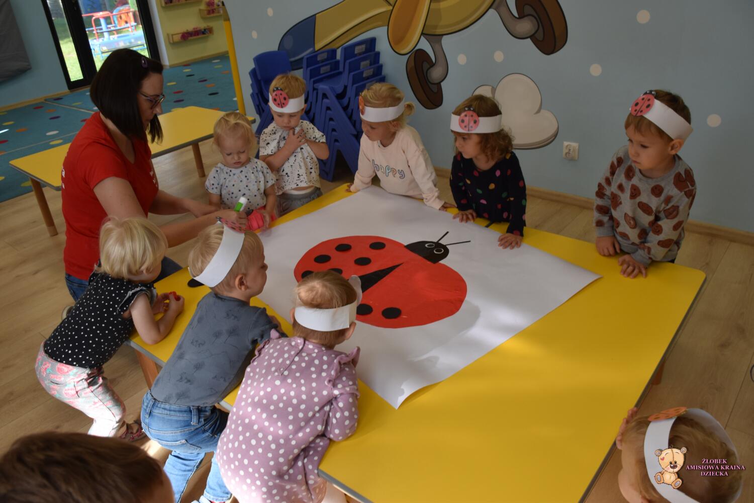 W naszym żłobku obchodzimy dziś Międzynarodowy Dzień Kropki 🟠🟣🔴🔵 Maluszki świętowały twórczo i aktywnie. Śpiewały piosenkę o pewnej Biedroneczce, poznały kolor czerwony i czarny. Bawiły się w zabawy organizacyjno – porządkowe 🙂Na koniec udekorowały wspólnie duża biedronkę czarnymi kropkami🐞