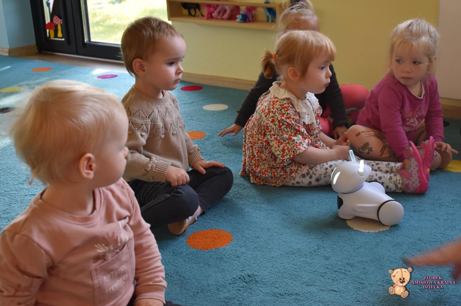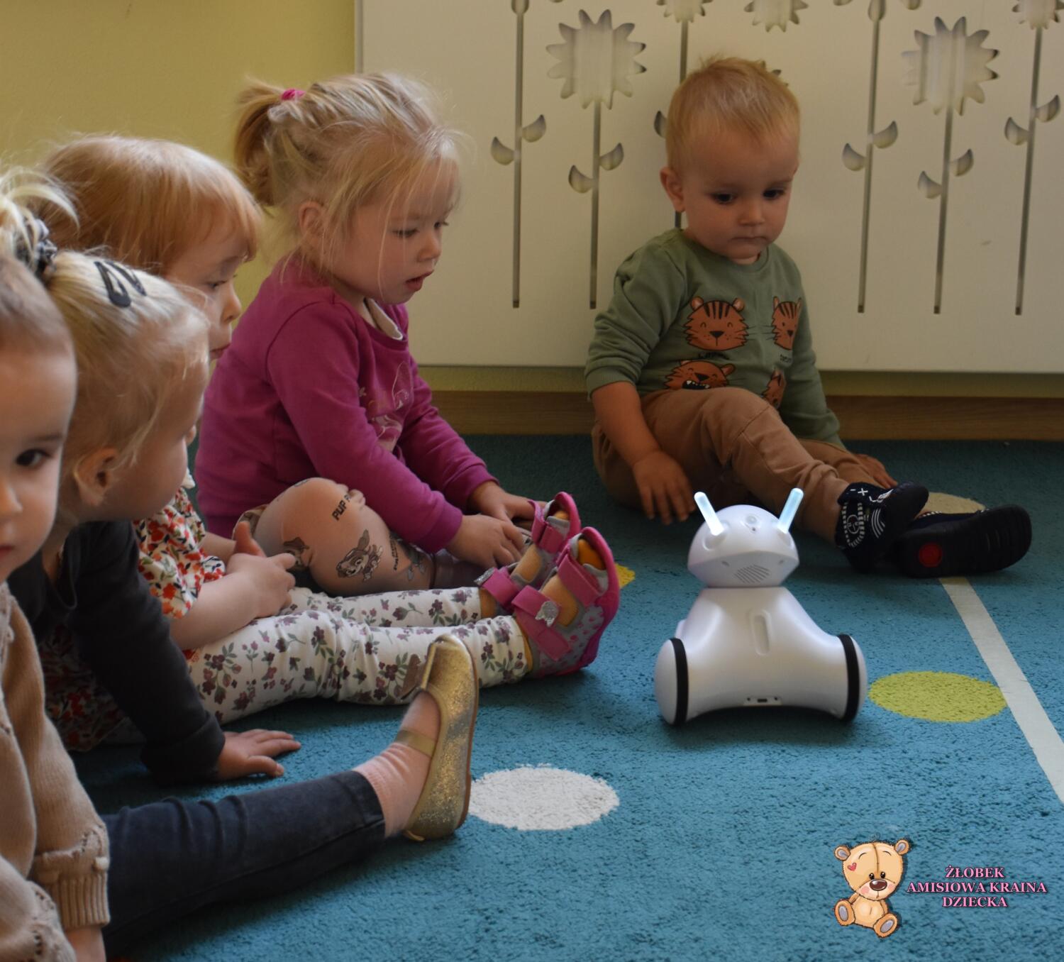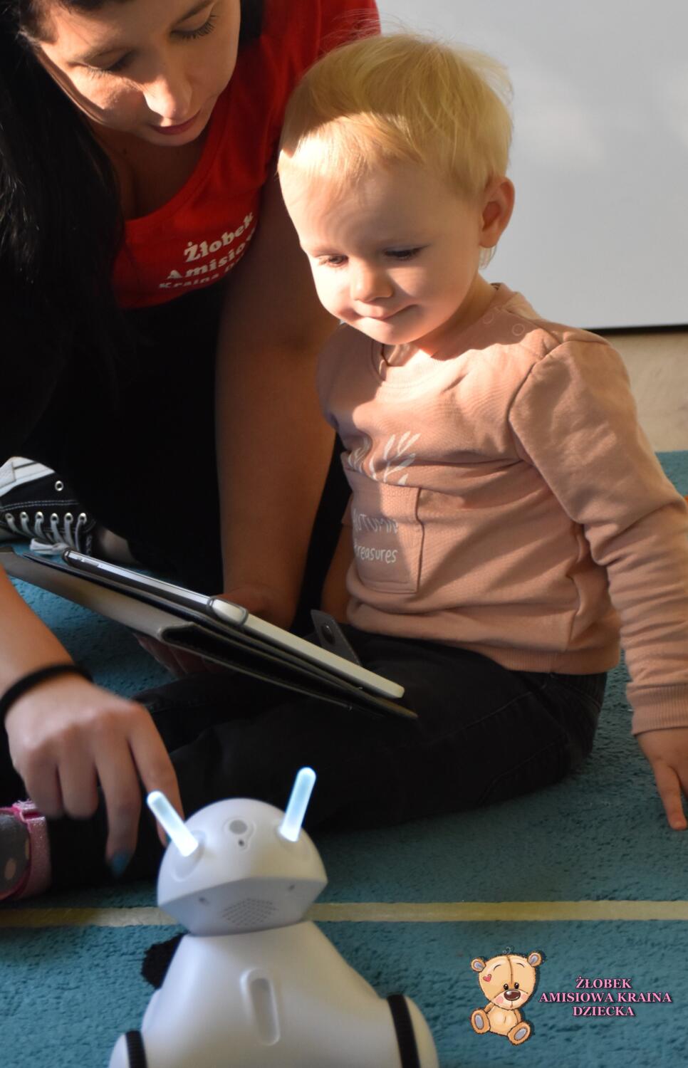Na naszych piątkowych zajęciach z robotyki dzieci poznały robota Edzia, którym kierowały za pomocą tableta. Amisiaki sterowały nim w każdą stronę bardzo im się podobało. Czekamy na następne zajęcia z Edziem