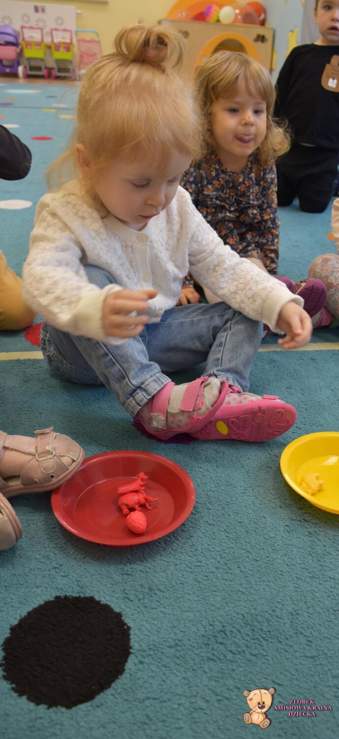 . Amisiaki wyciągały z boxu kolorowe figurki i musiały włożyć na odpowiedni talerzyk. Utrwalalismy również poznane wcześniej cyferki i nauczyliśmy się nowej piosenki. ![]()