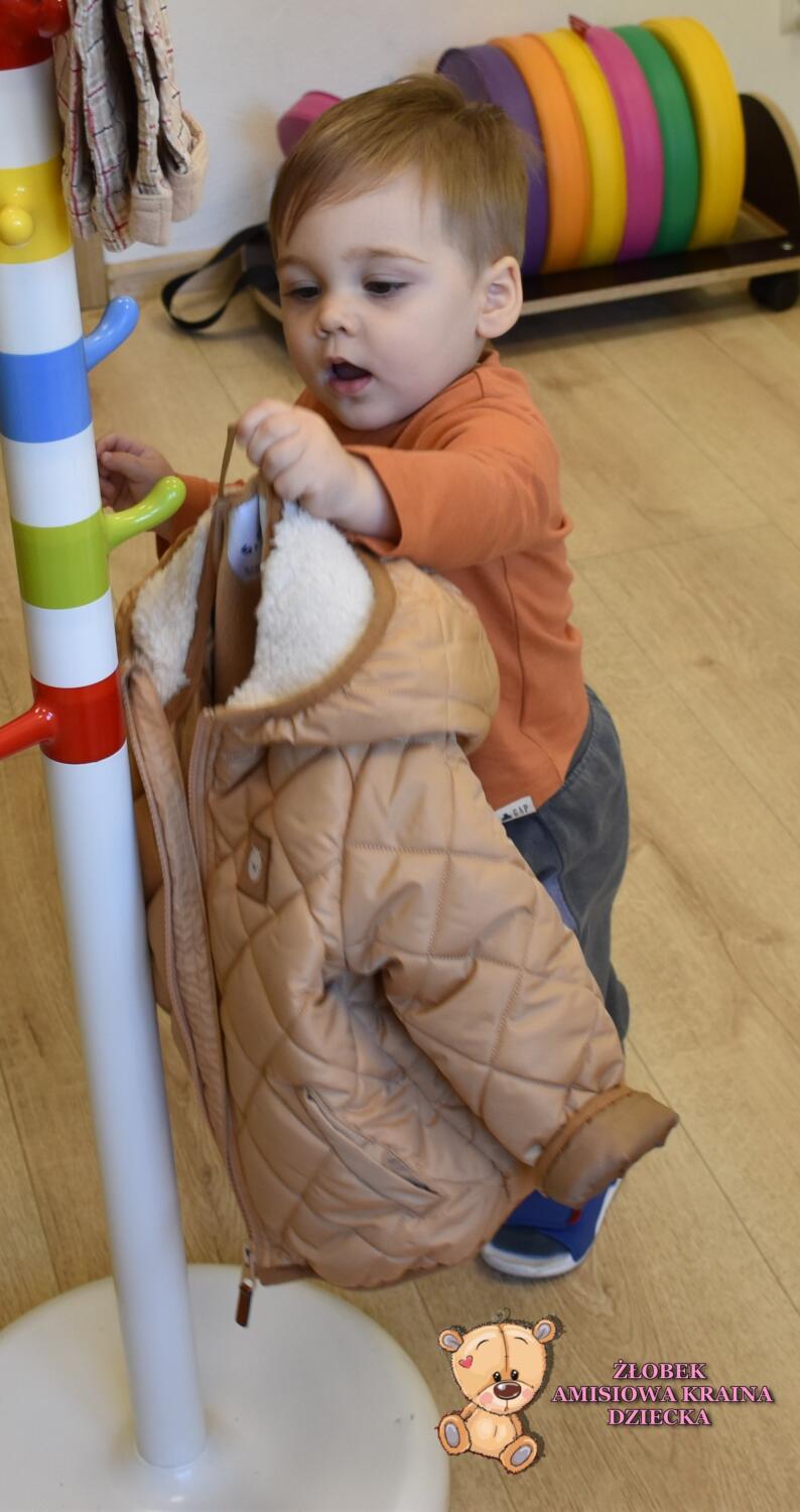 Dziś na zajęciach Montessori Amisie 👧👦 trenowały z ciocią Basią samodzielne ubieranie się🧦👟👕👒Trzeba sporo wysiłku by założyć buty lub kurteczkę‼️Dodatkowo Maluszki uczyły się dbać o porządek, odkładać ciuszki do szuflady i odwieszać swoje kurteczki 🙂☺️Amisie spisały się dziś na medal 🥇😍👏