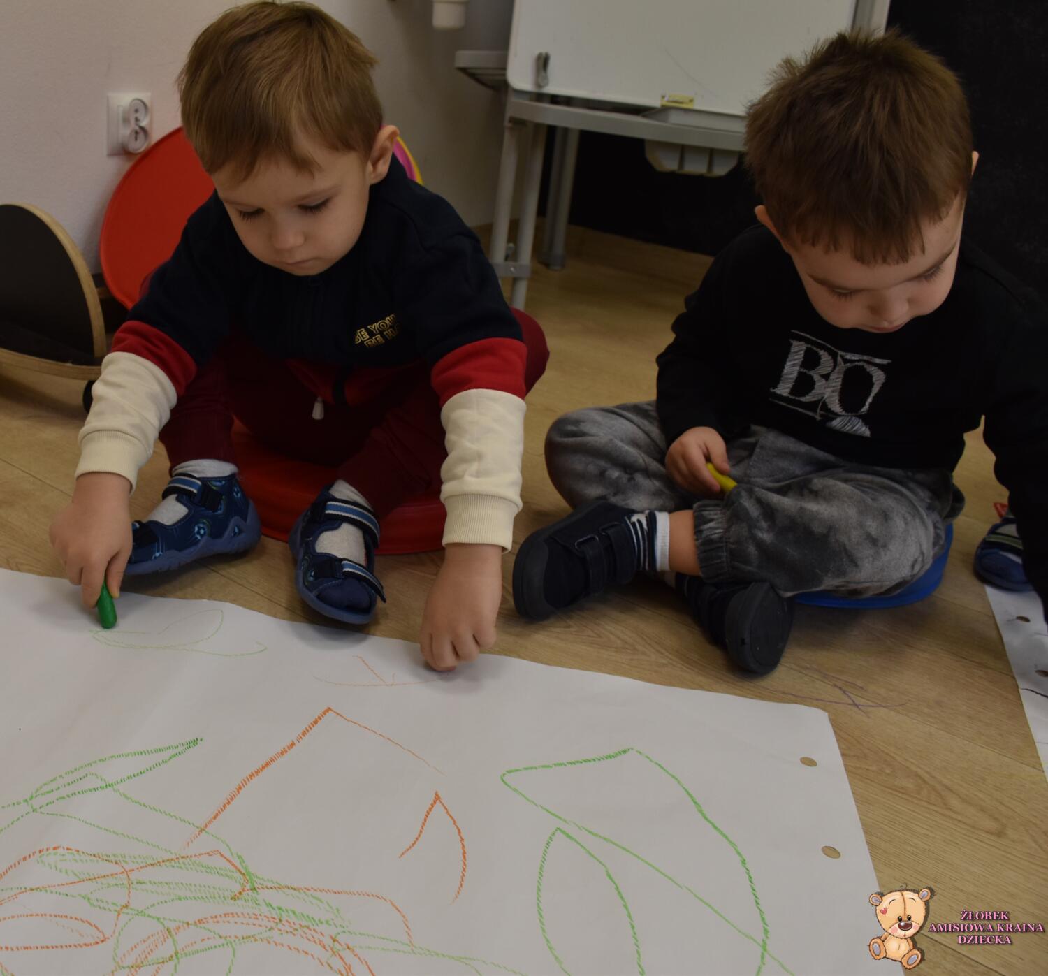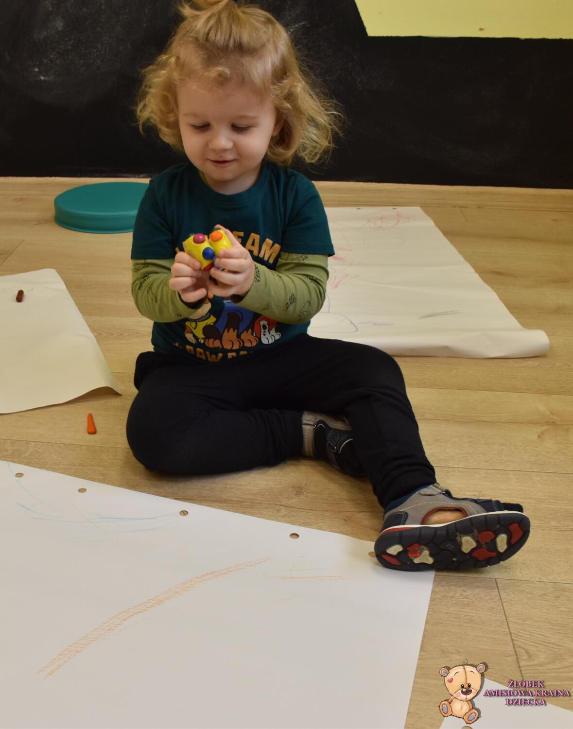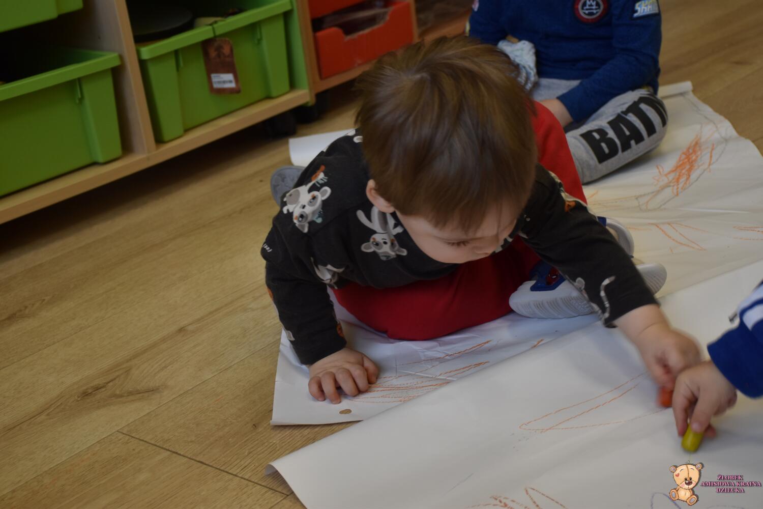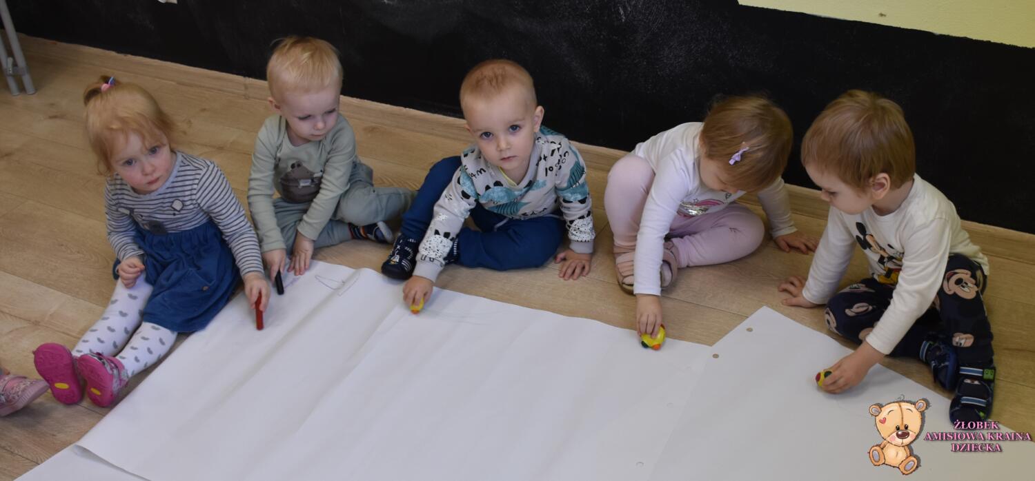 Dziś na zajęciach Montessori Amisie rysowały na dużym formacie. Ćwiczenie to usprawnia motorykę małą i grafomotorykę oraz koordynację ręką oko. Starszaczki próbowały rysować oburącz co jest nielada wyzwaniem ![]()