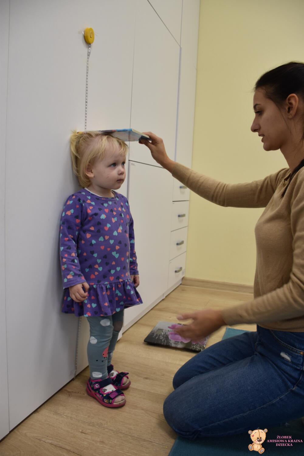 Ciocia pielęgniarka rozmawiała dziś z dziećmi na temat pomiaru ciała. Zaprezentowała wagę oraz miarę. Dzieci były zaciekawione wykonywaniem pomiarów masy ciała oraz wzrostu. Na podstawie zebranych informacji ciocia pielęgniarka wykona bilans ciała.