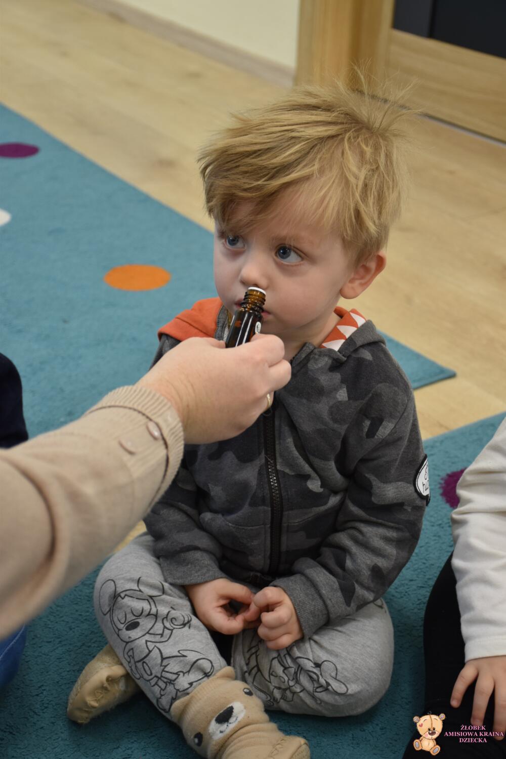 Dzisiaj na zajęciach Integracji Sensorycznej Amisiaki ćwiczyły swój słuch i węch. Ciocia przygotowała zagadki słuchowe z odgłosami zwierząt oraz natury. Amisiaki były bardzo zainteresowane i skupione. Następnie poznawaliśmy zapachy Świąt… był zapach wanilii, pomarańczy, sosny, cynamonu i czekolady. Zrobiło się bardzo przyjemnie. Amisiaki były jak zwykle zaangażowane i chętne do współpracy. Wspaniale!