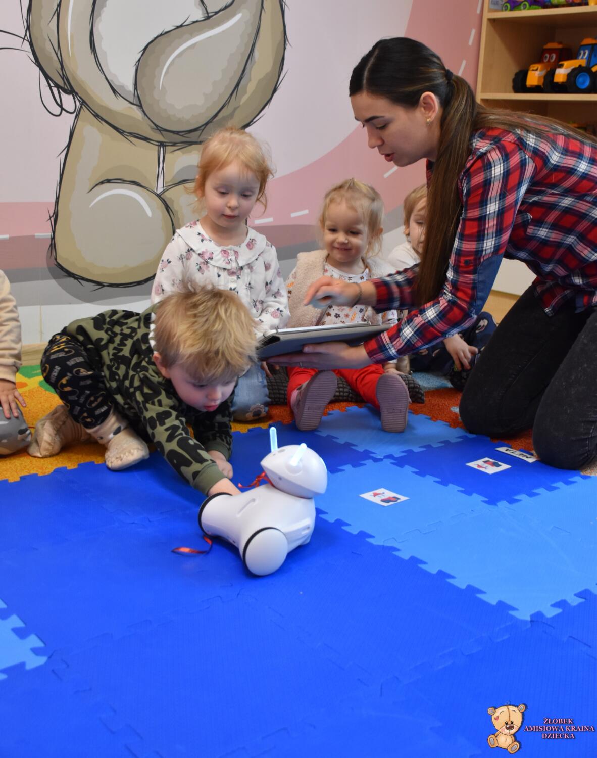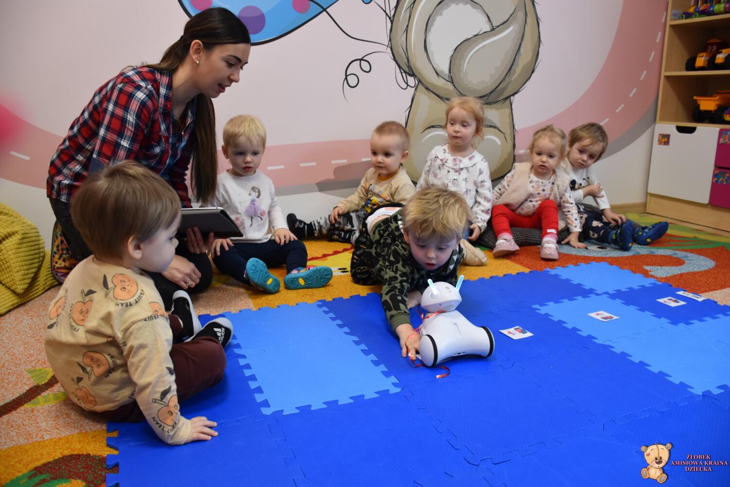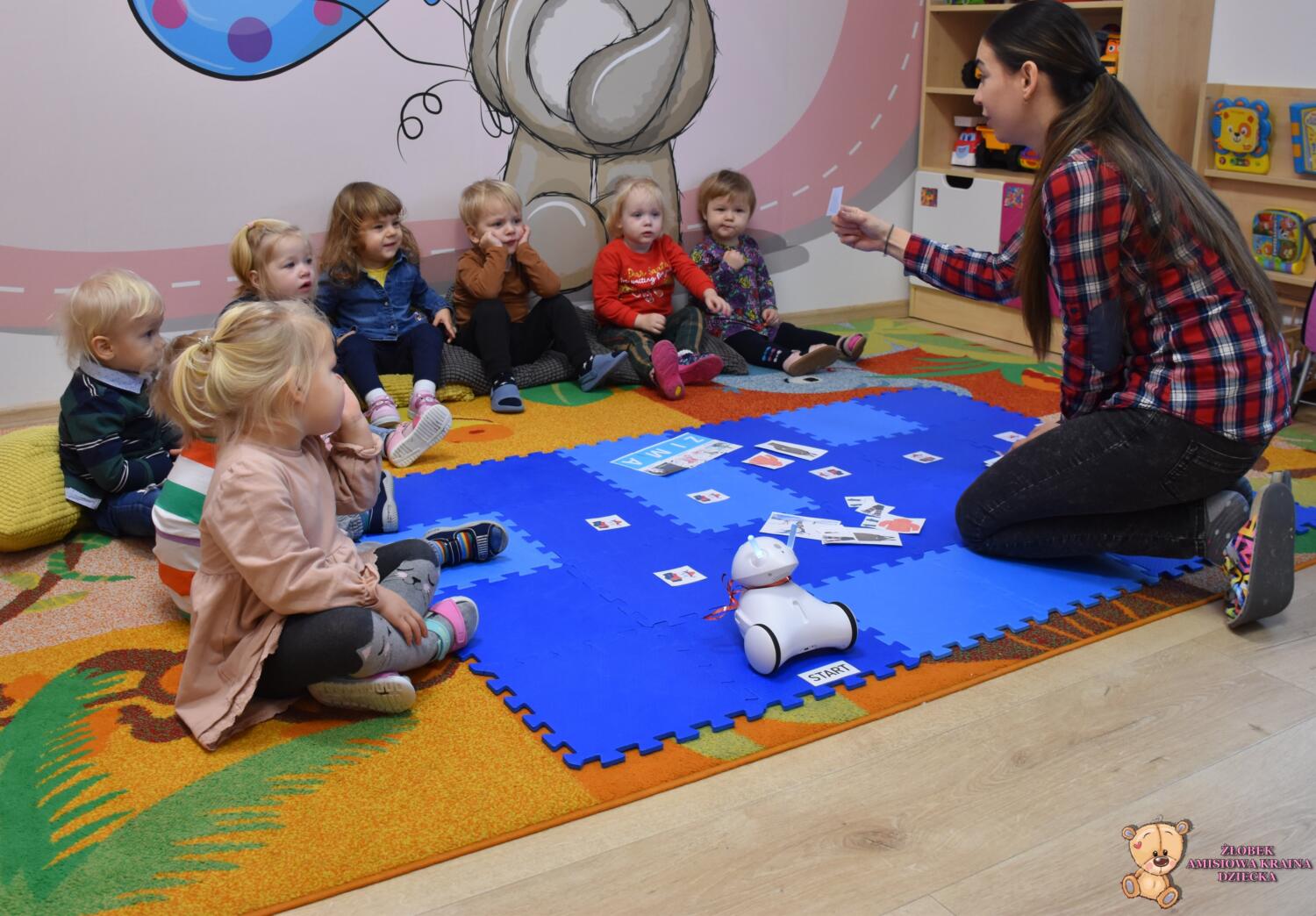 Dzieci wspólnie z robotem i panią Magdą odkrywały karty