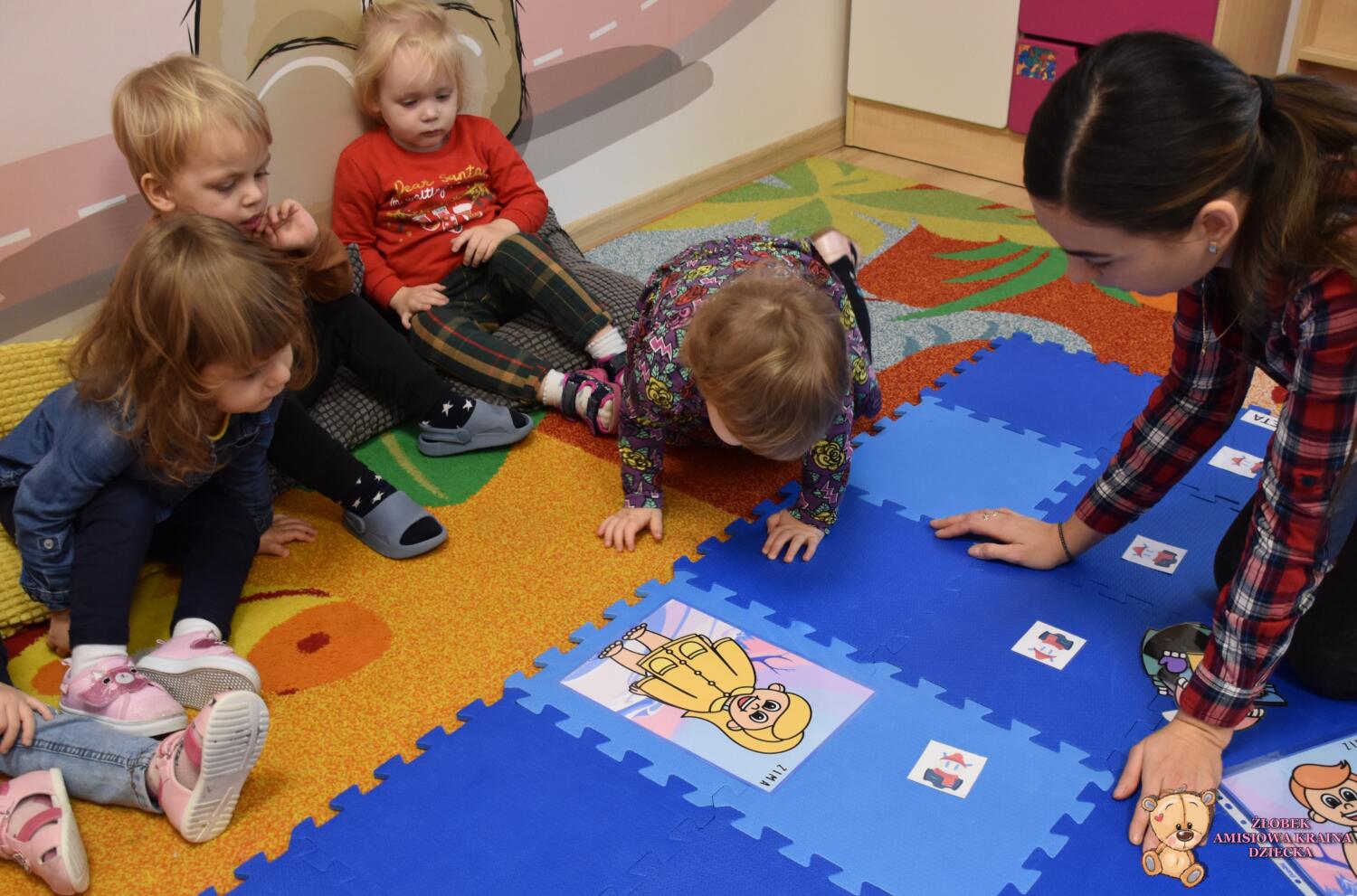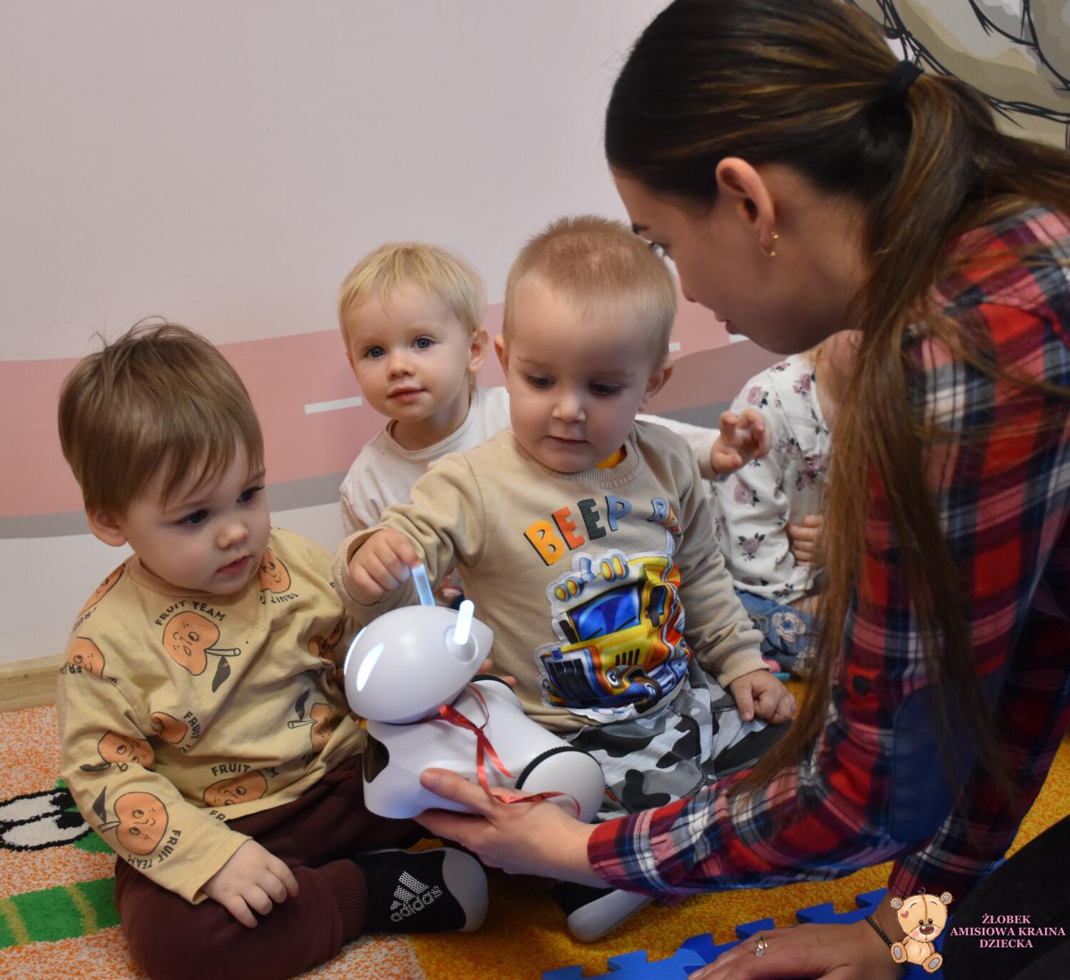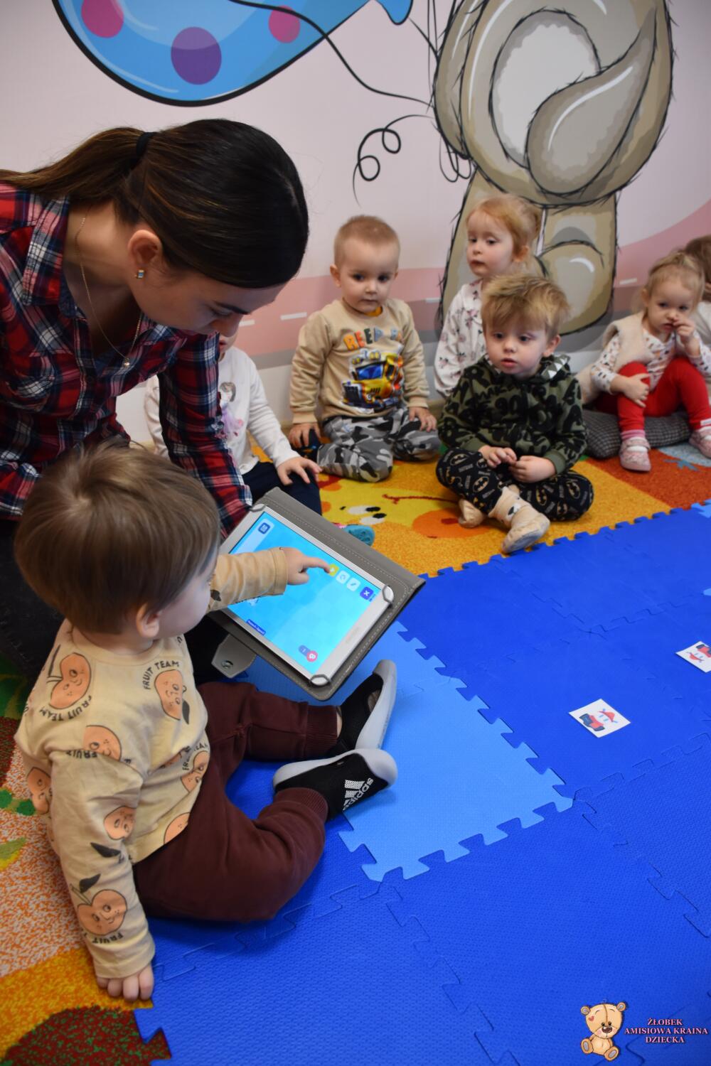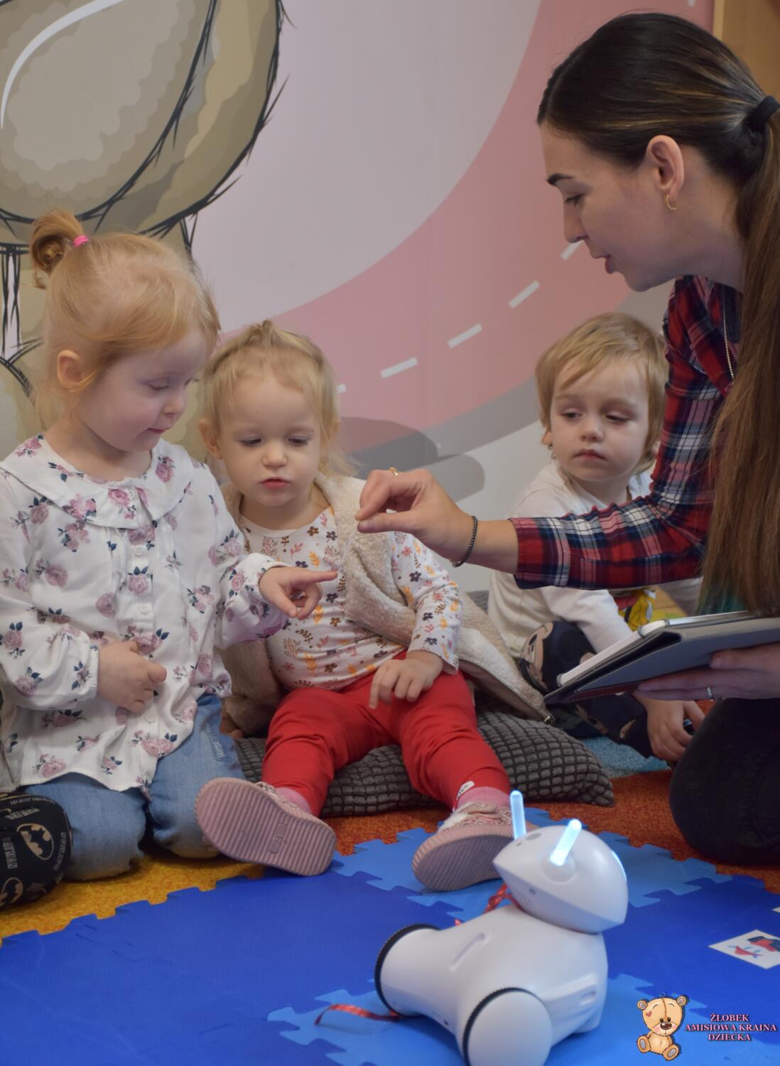 Dzieci wspólnie z robotem i panią Magdą odkrywały karty