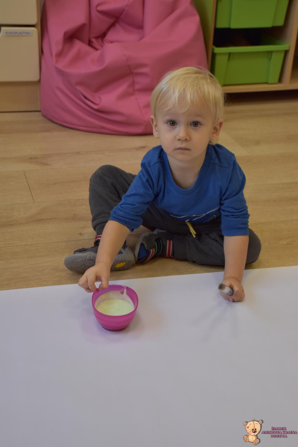 Dziś w AMIsiowej Krainie Dziecka odbyły się zajęcia sensoplastyki . Ciocia wyczarowała dla nas farby jadalne z jogurtu naturalnego i barwnika, które sami wymieszaliśmy i malowaliśmy pędzelkami. Niektórzy z nas malowali nawet rączkami. Dzieciom bardzo spodobała się ta technika malowania.