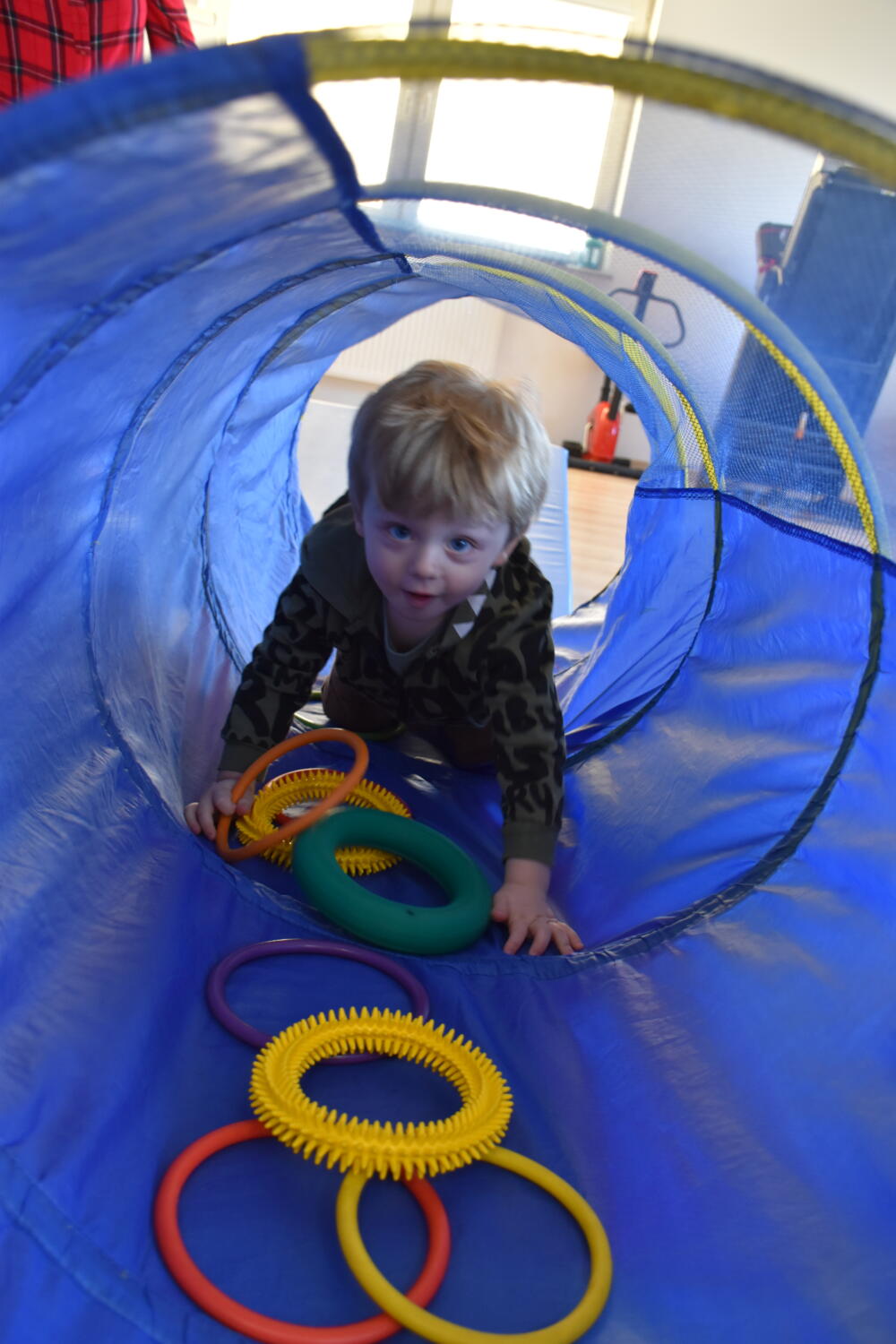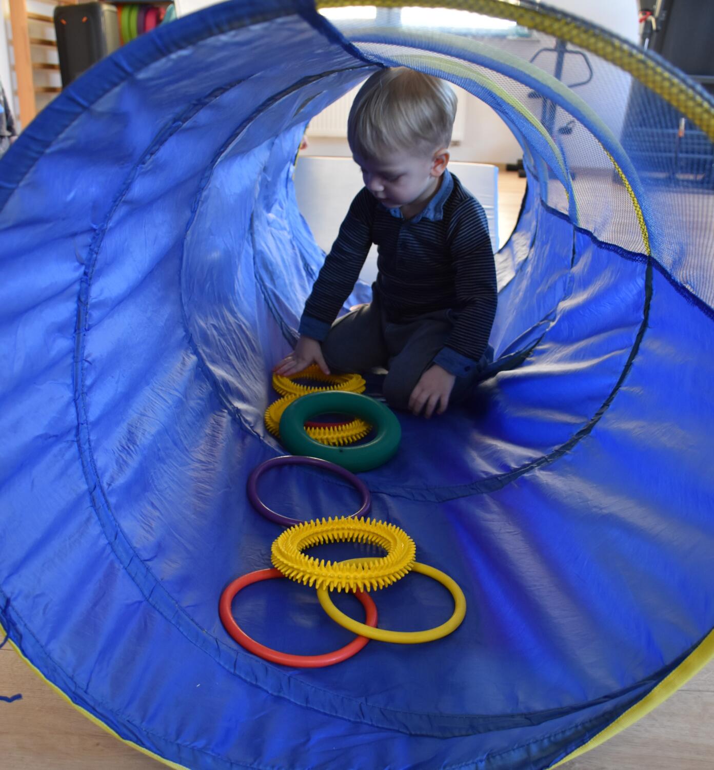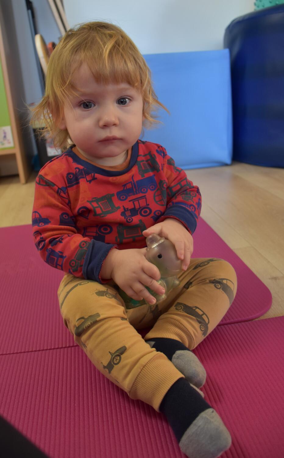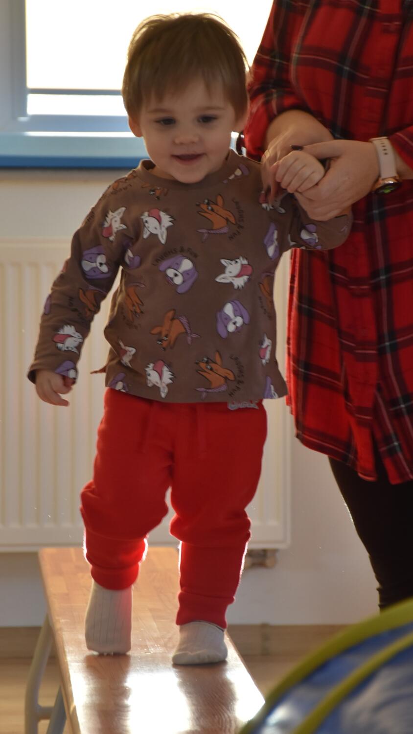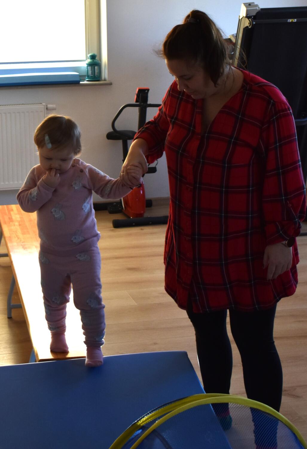 Podczas dzisiejszych zajęć SI duuużo się działo. Amisiaki chodziły po ławeczce i zrzucały stopą woreczki. To było trudne zadanie, było wysoko, musieliśmy utrzymać równowagę. Następnie zejście w dół po miękkim podłożu i przejście przez tunel pełen różnych obręczy. Amisiaki nakładały je na pachołki. Ciocia naszykowała również hamak i kołyskę oraz klamerki. Mogliśmy się huśtać, bujać i ćwiczyć rączki. Amisiaki rosną, rozwijają się, widać postępy. Brawo!