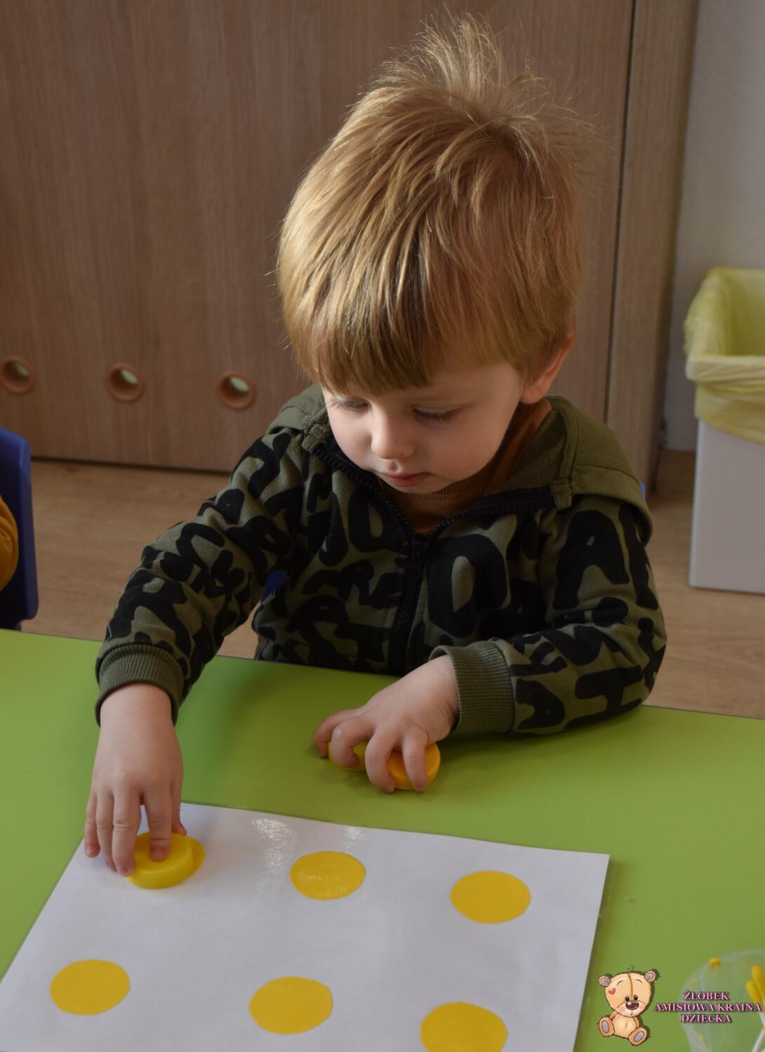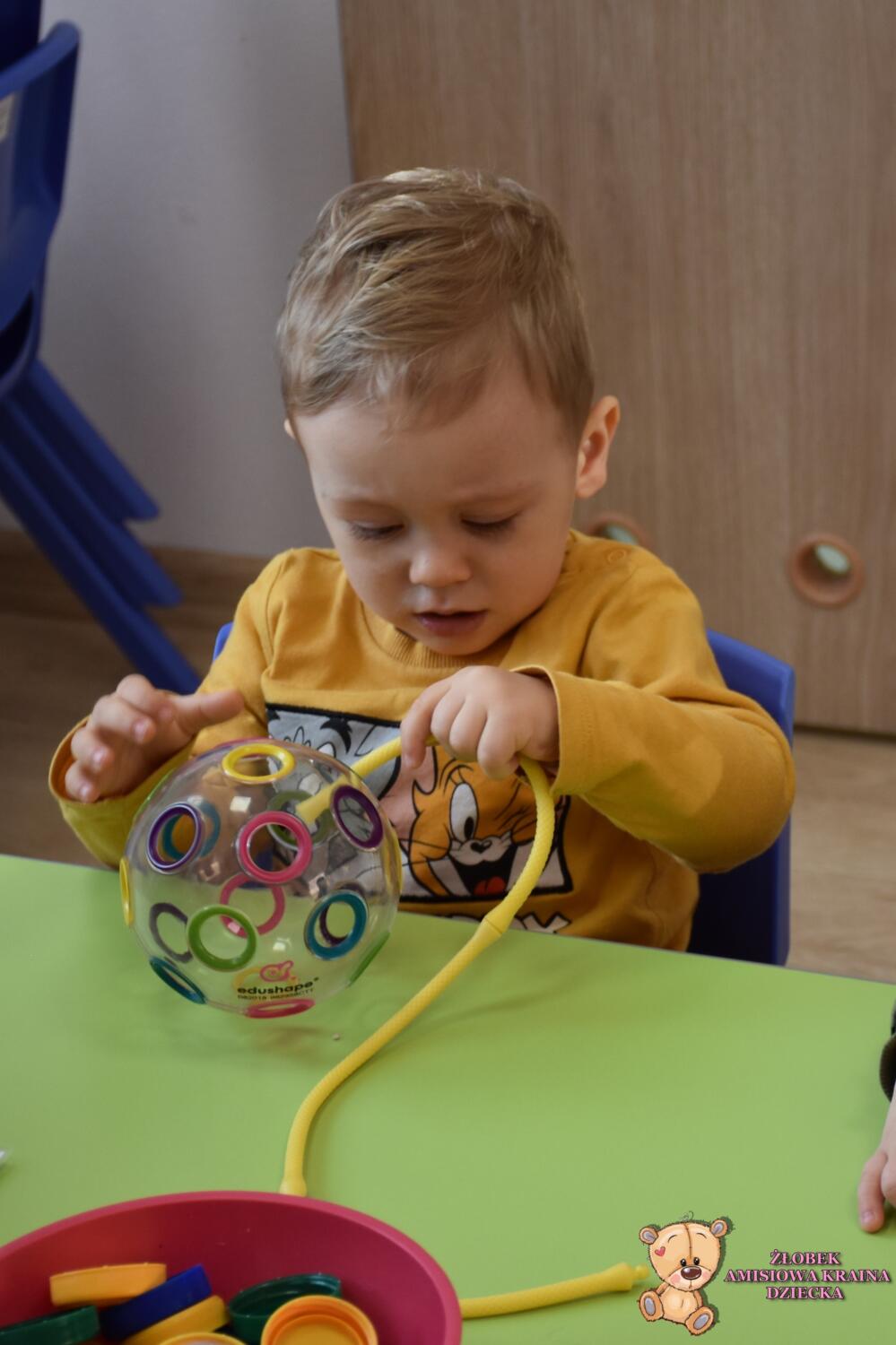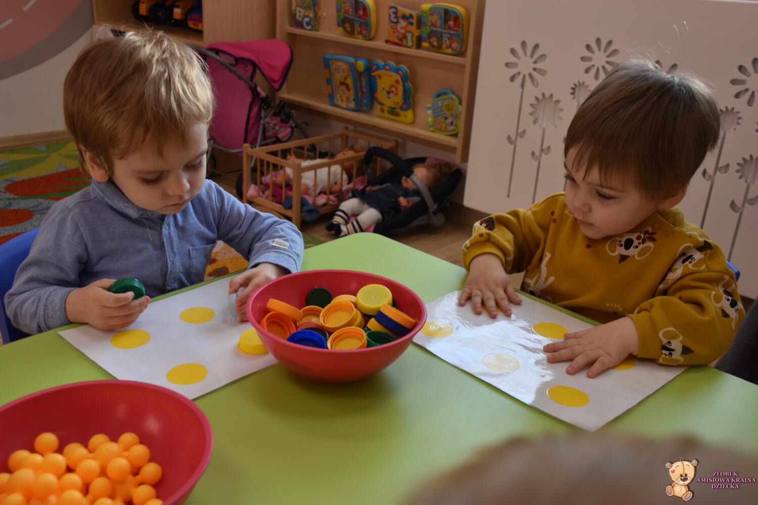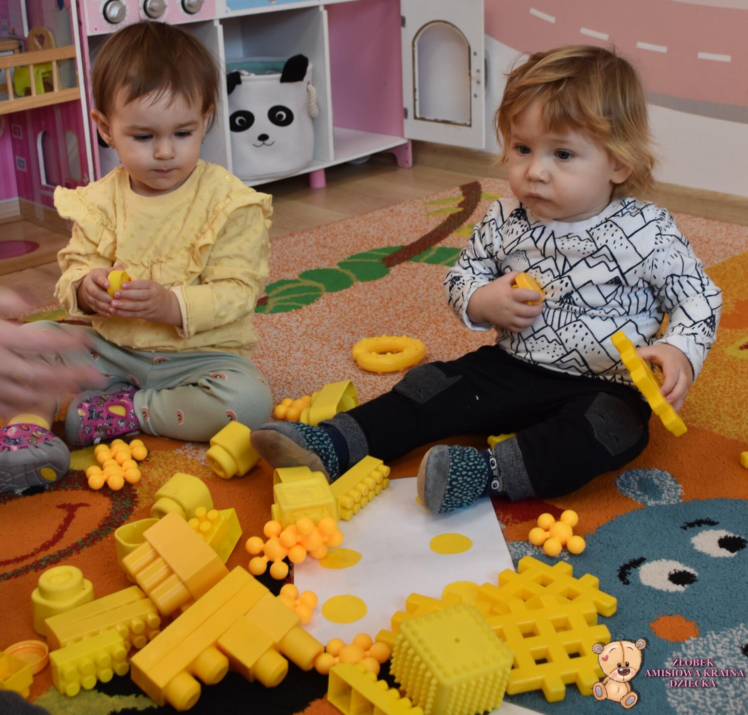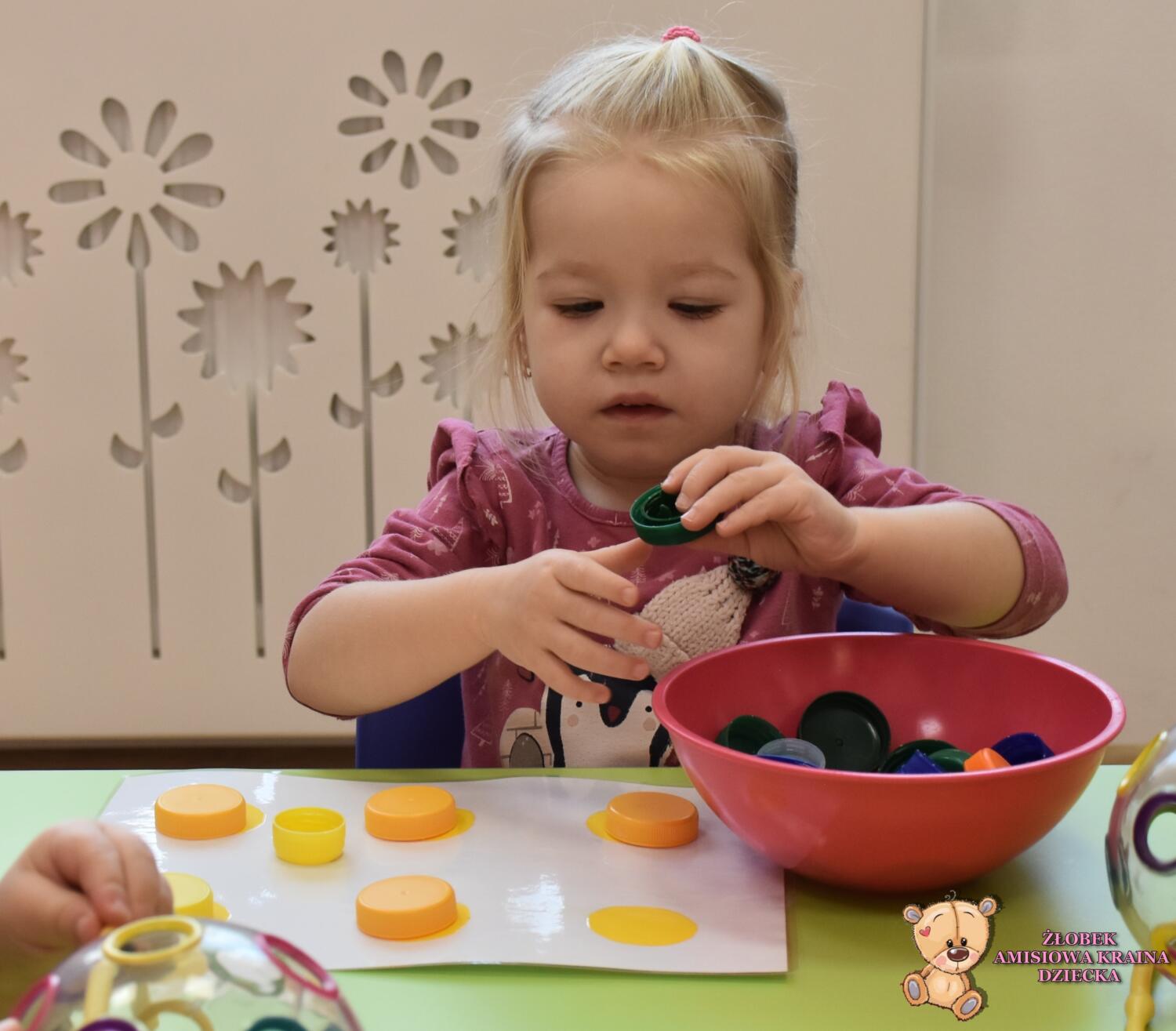 Z cyklu zabawy z kolorami na zajęciach Montessori Amisie dziś poznały kolor żółty