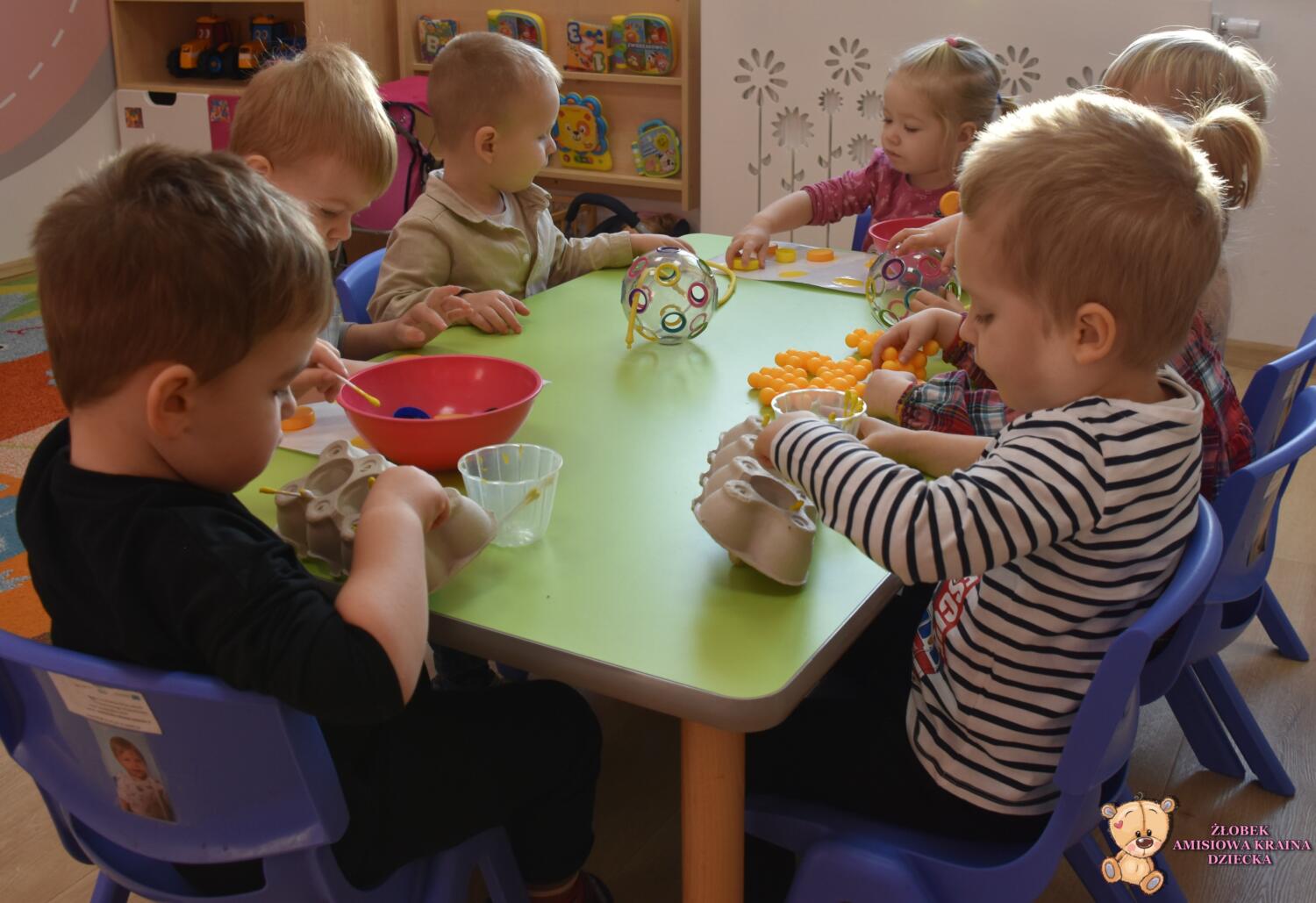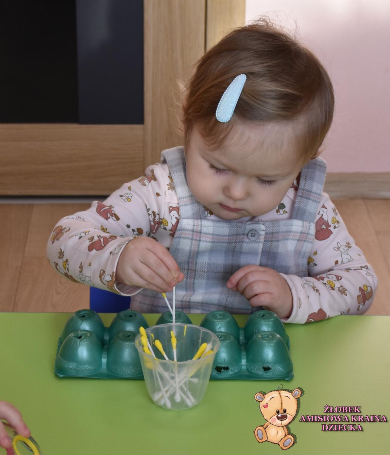Maluszki na zajęciach segregowały według szablonu i ćwiczyły koordynację reka oko. Wykazały się dużym zainteresowaniem i skupieniem