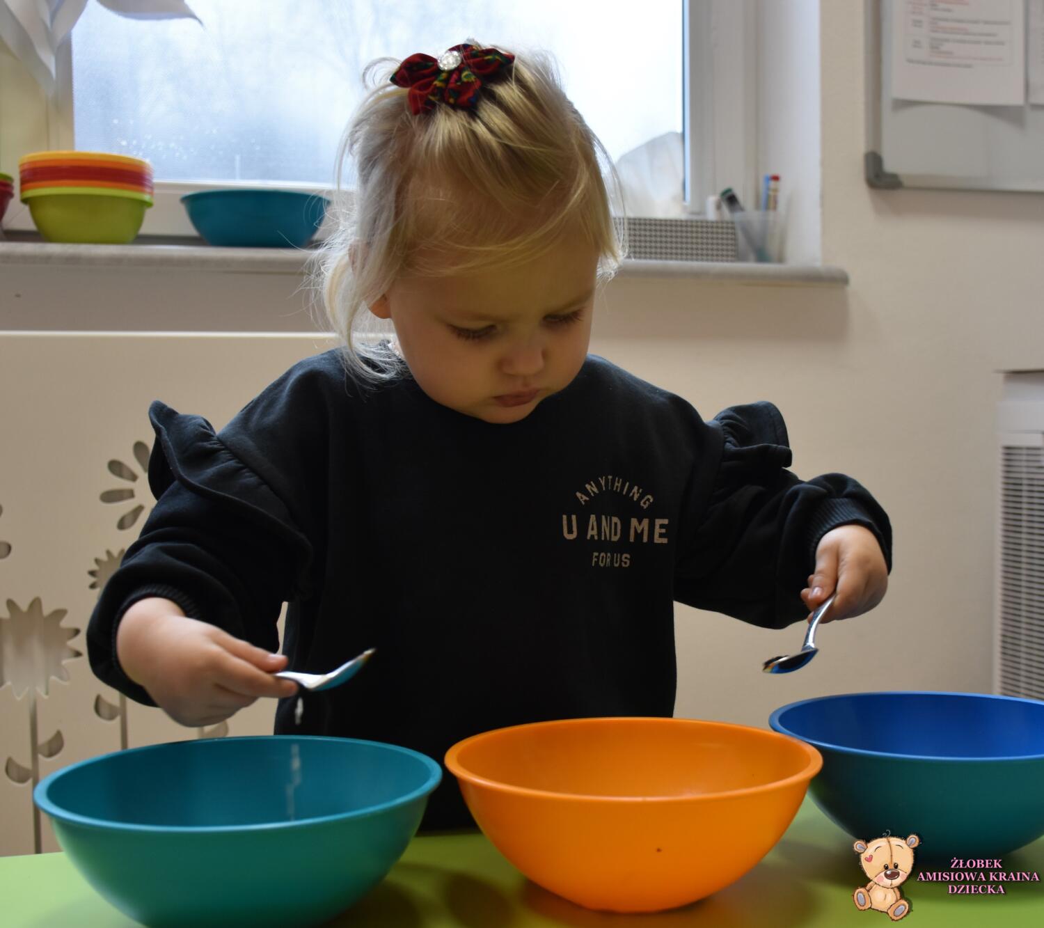 Amisie wykonały dziś bardzo trudne ćwiczenie polegające na mieszaniu składników oburącz. Zadanie to wymagało dużego skupienia