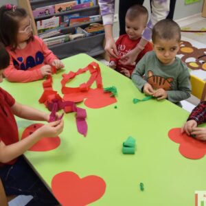 Dzisiaj w AMIsiowej Krainie Dziecka obchodziliśmy walentynki. Na początek dzieci bawiły się balonami przy muzyce. Następnie każde dziecko ozdobiło swoje serduszko. Później maluchy pozowały do zdjęć w pięknie ozdobionej serduszkami ramce. Każdy maluch otrzymał też piernikowe serduszko.