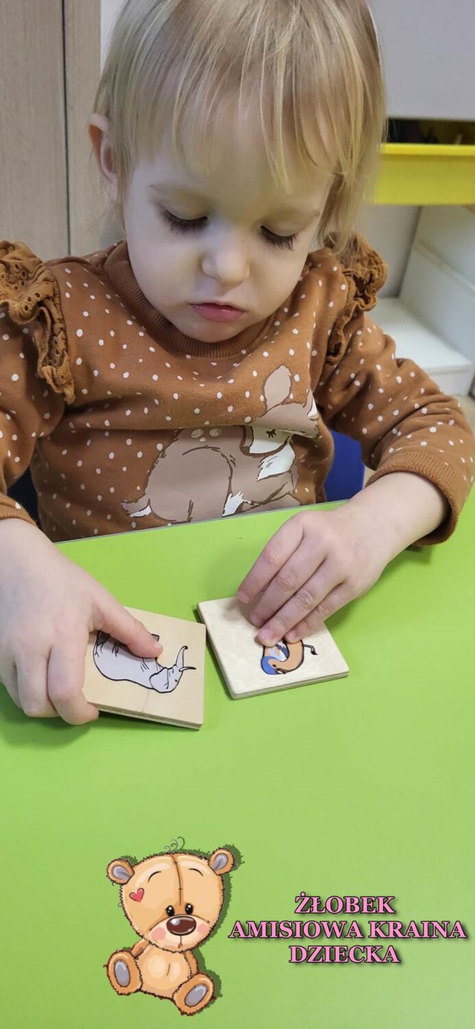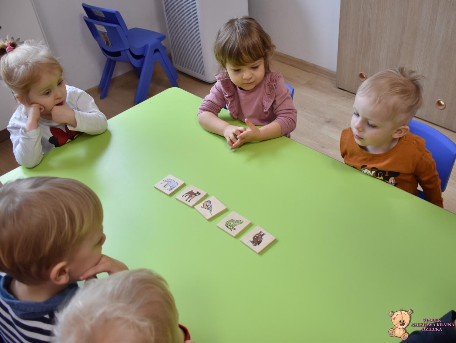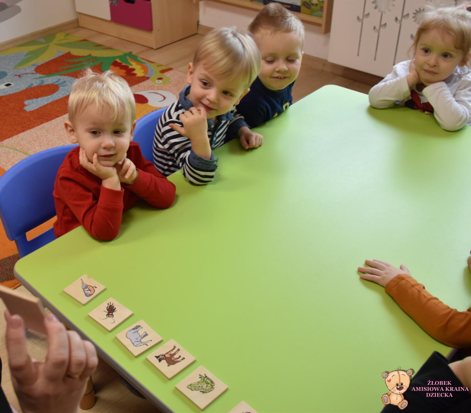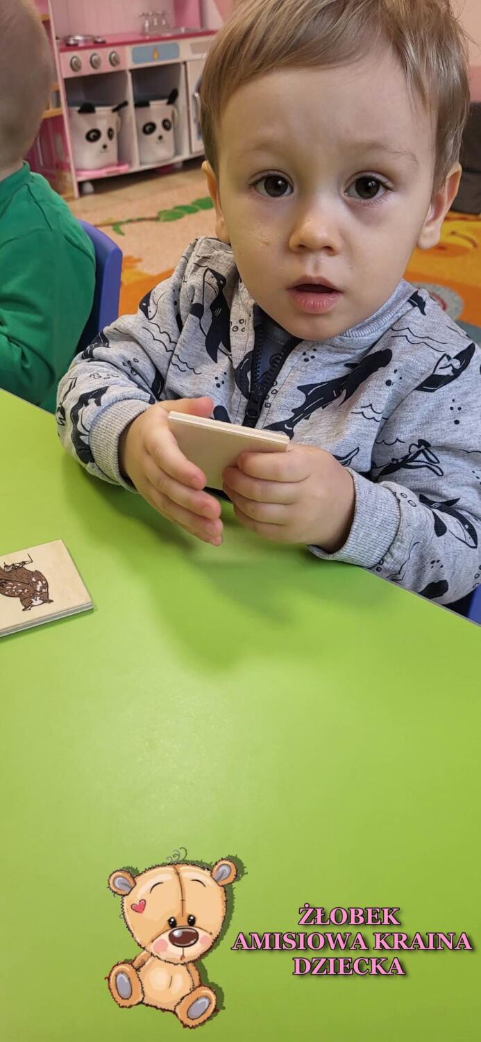 Na zajęciach z muzykoterapii pracowałyśmy z audimą. Jest to pomoc dydaktyczna , która spełnia funkcję analizatora słuchowo-wzrokowego, nazywana potocznie odgłosy. Dzieci przez zabawę rozpoznawały i określały wysłuchiwane dźwięki oraz przypisywały je do obrazków znajdujących się na drewnianych płytkach. Utrwalaliśmy nazwy zwierzątek, doskonaliliśmy uwagę słuchową , cierpliwość i prawidłowe nazewnictwo.