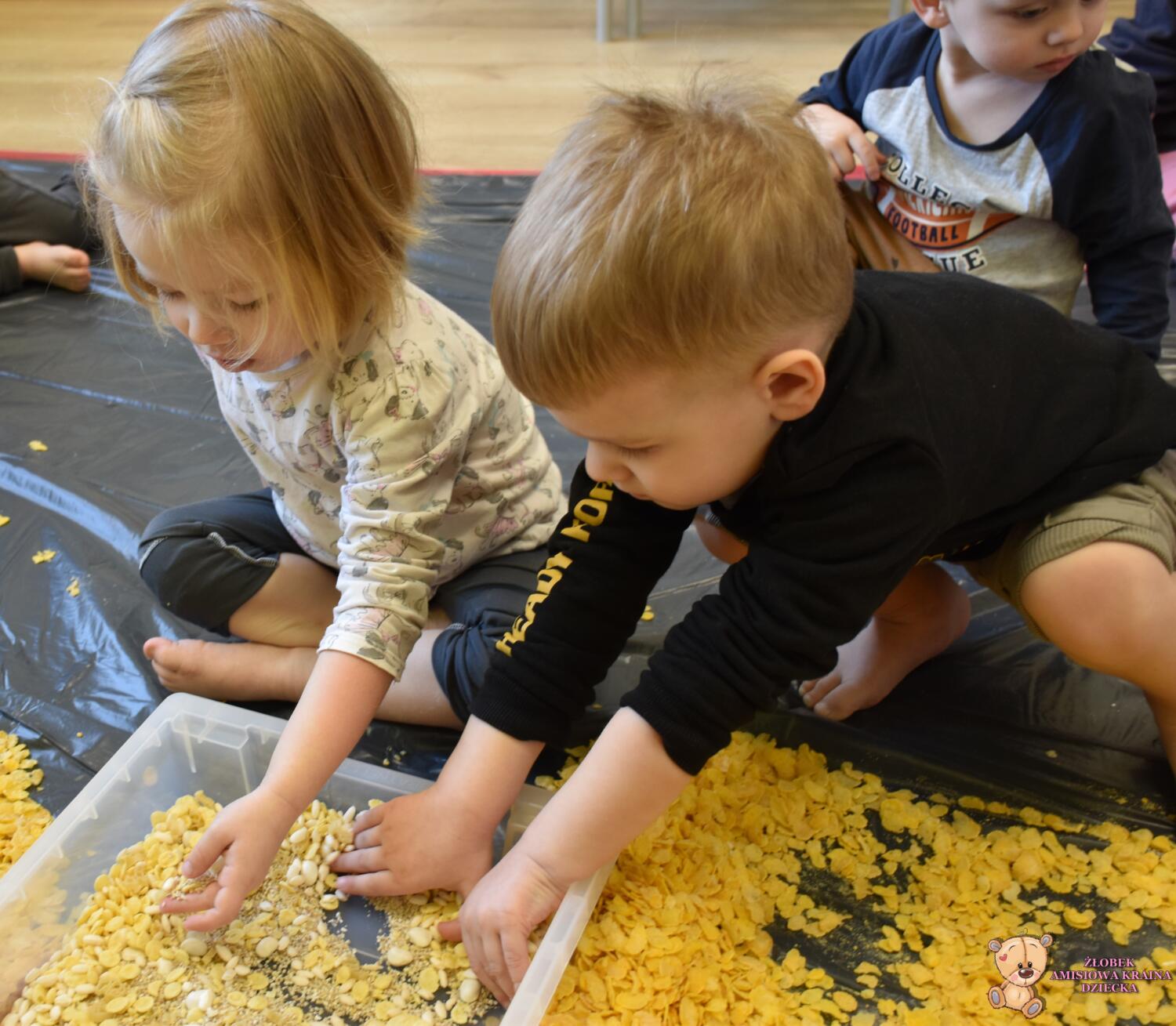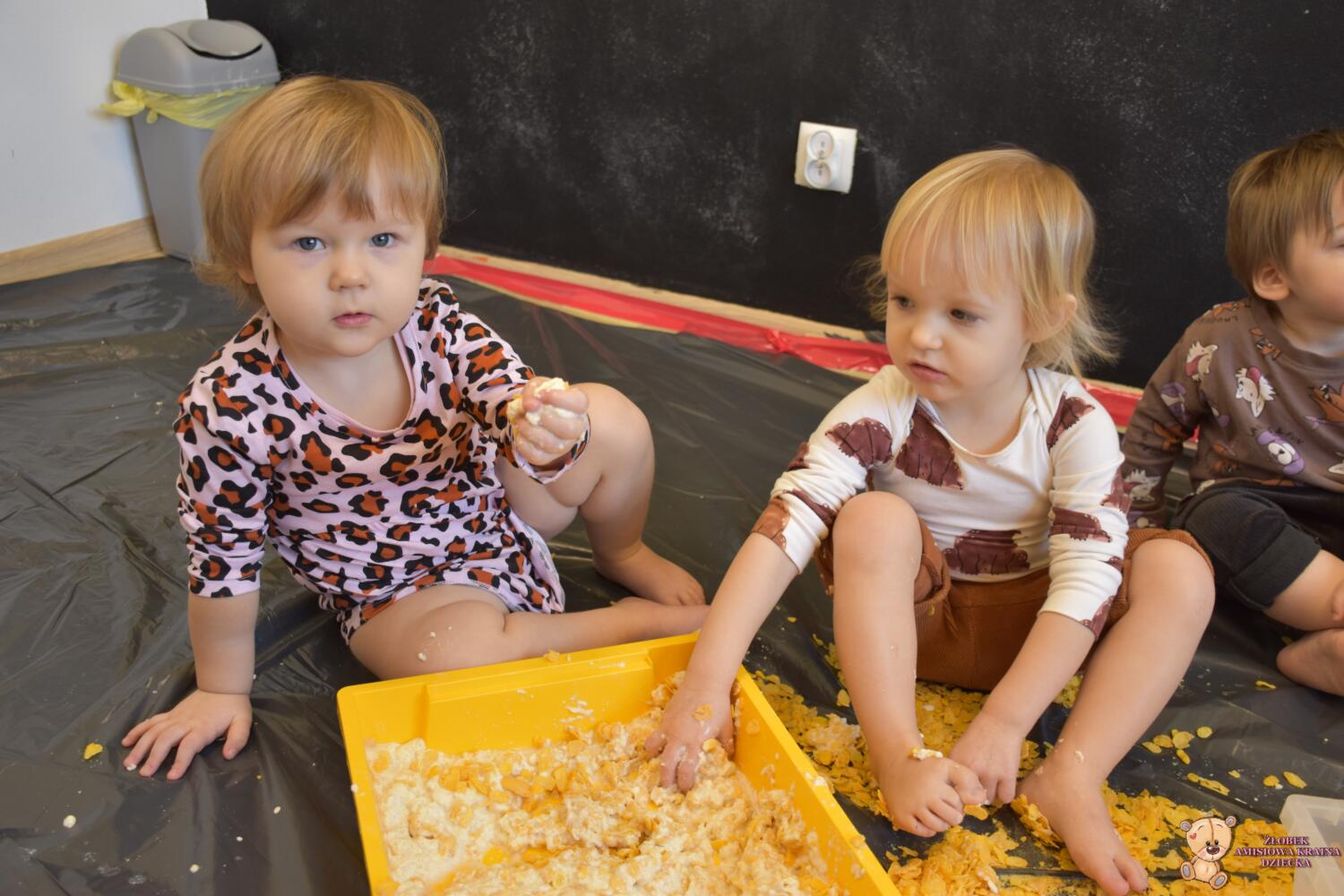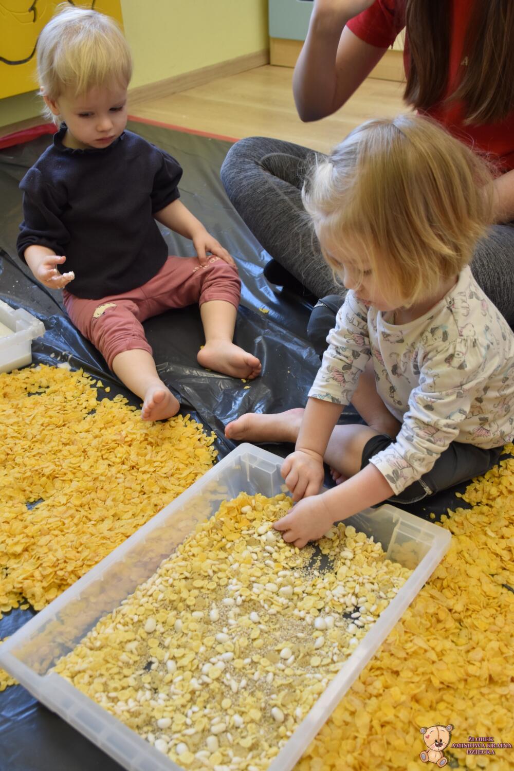 Dziś na zajęciach sensoplastyki tematem przewodnim były chrupki kukurydziane. Dzieci deptały ![]()