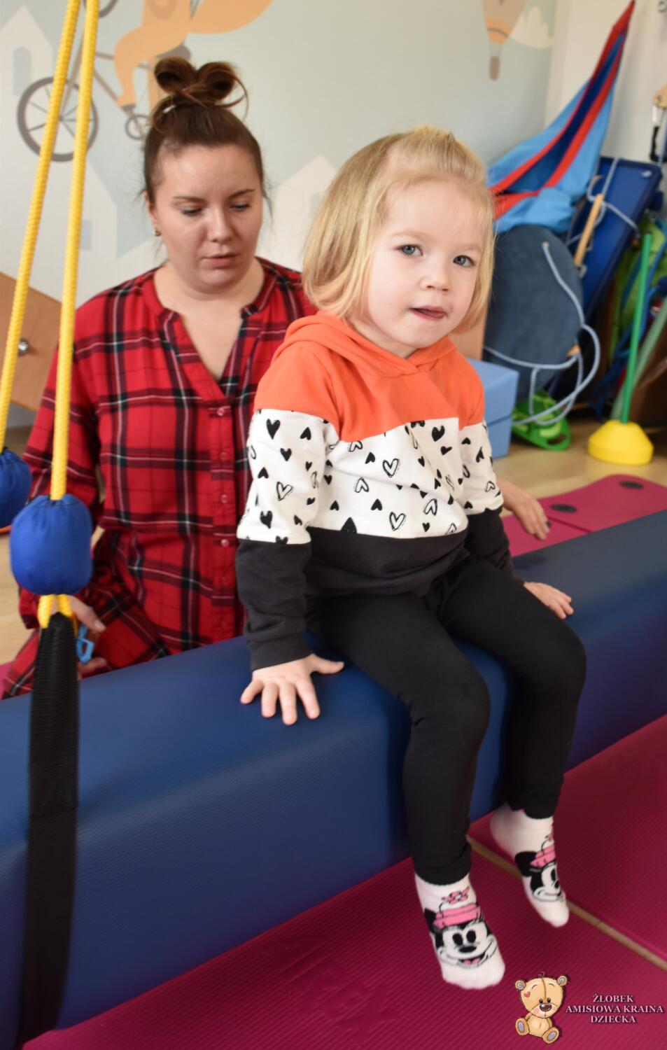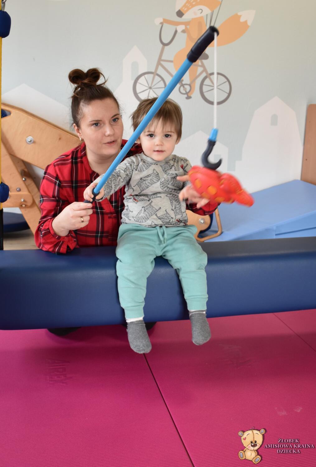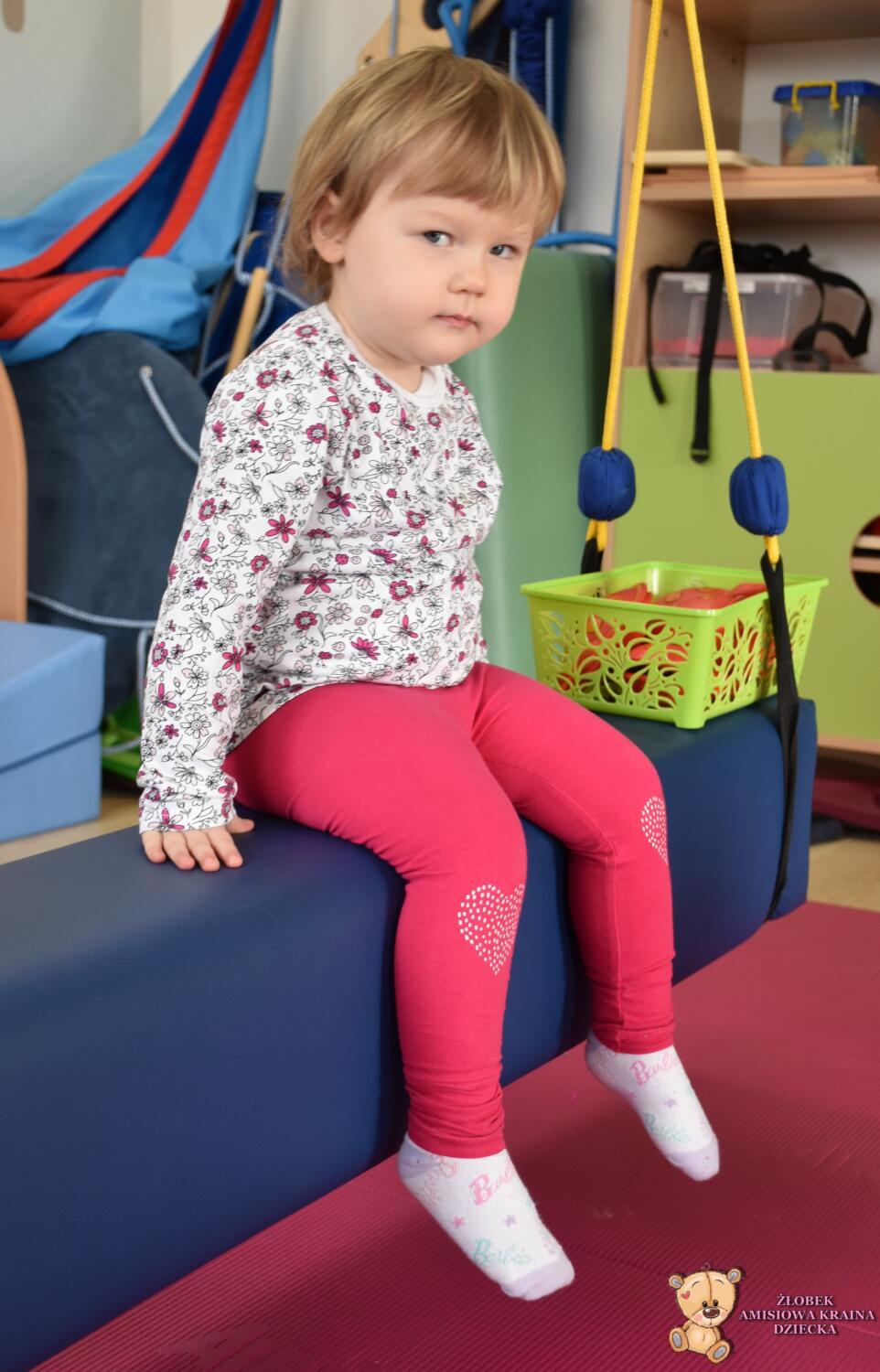 Dzisiaj na Integracji Sensorycznej Amisiaki stymulowały układ przedsionkowy na huśtawce typu konik.Ciocia łagodnie wprowadzała konik w ruch. Amisiaki huśtały się na brzuchu, w placach i w siadzie. Dzięki temu rozwijały świadomość własnego ciała oraz jego położenie w przestrzeni a także ćwiczyły równowagę. Niektóre odważne Amisiaki również podczas bujania rozwijały koordynację wzrokowo – ruchową, wskazywały różne przedmioty w sali. Ciocia jest z Was dumna. Wspaniale!