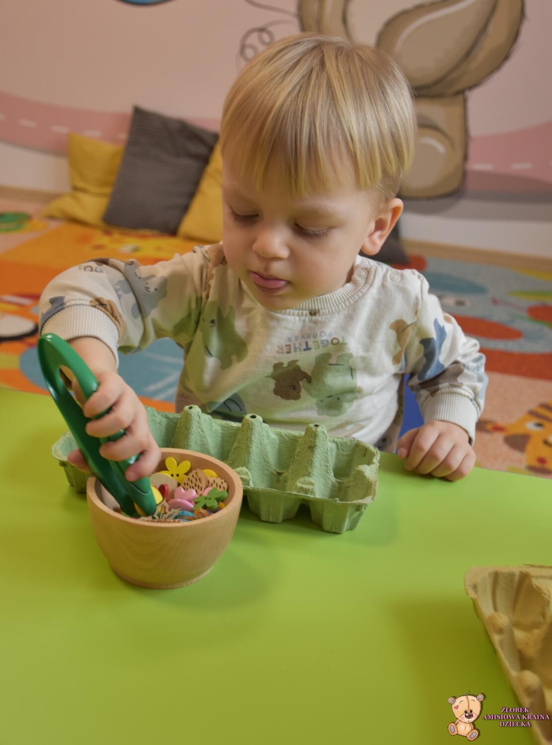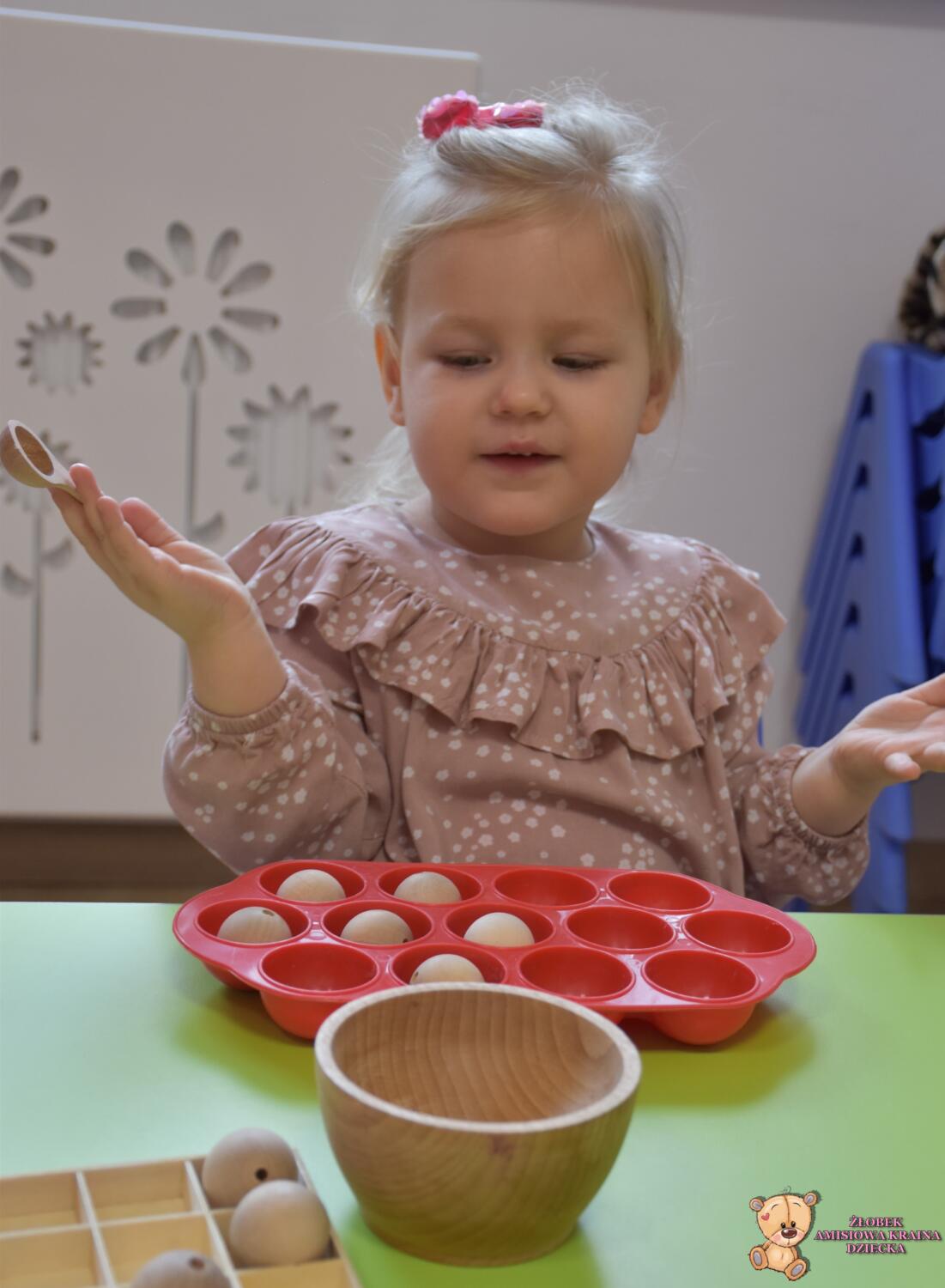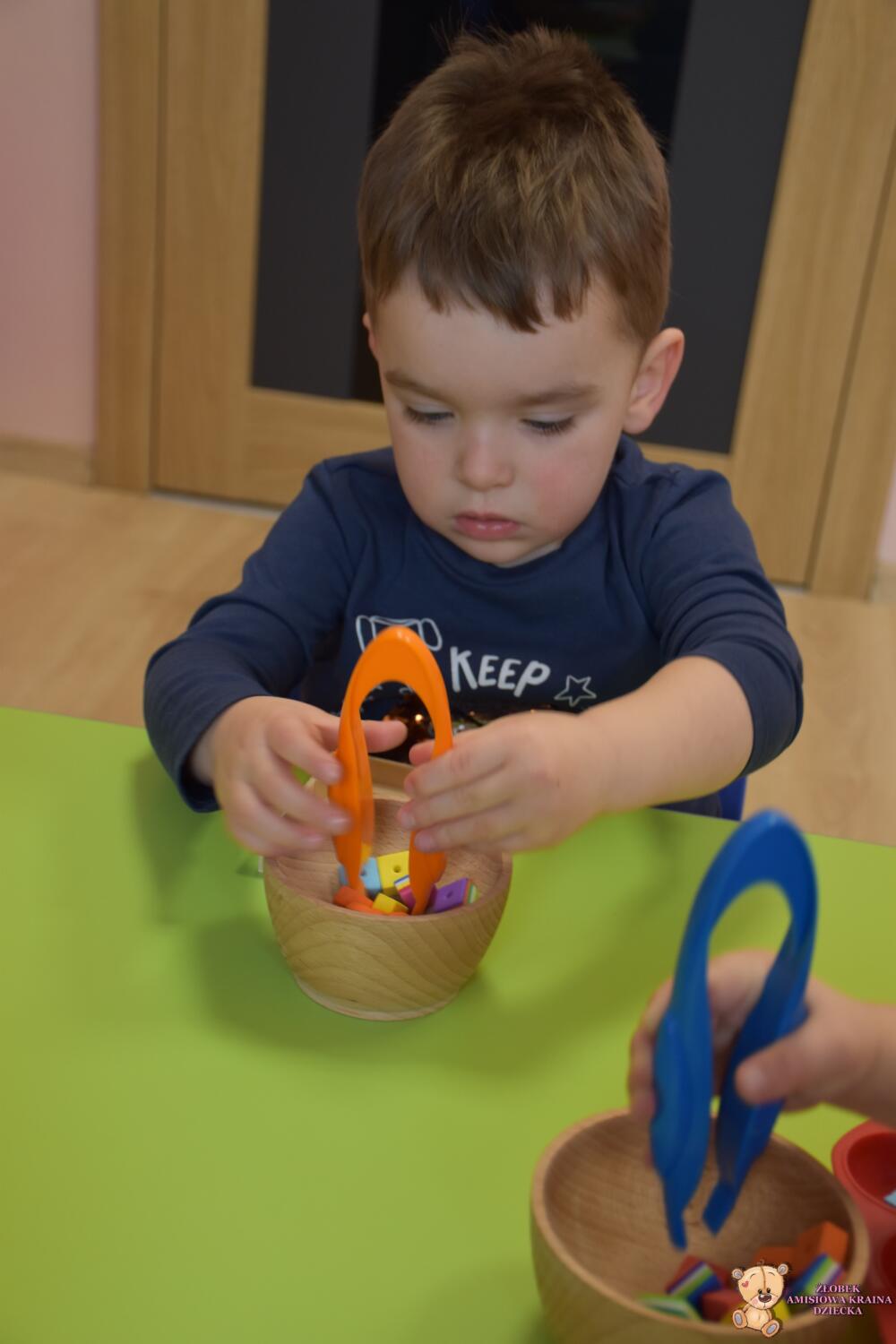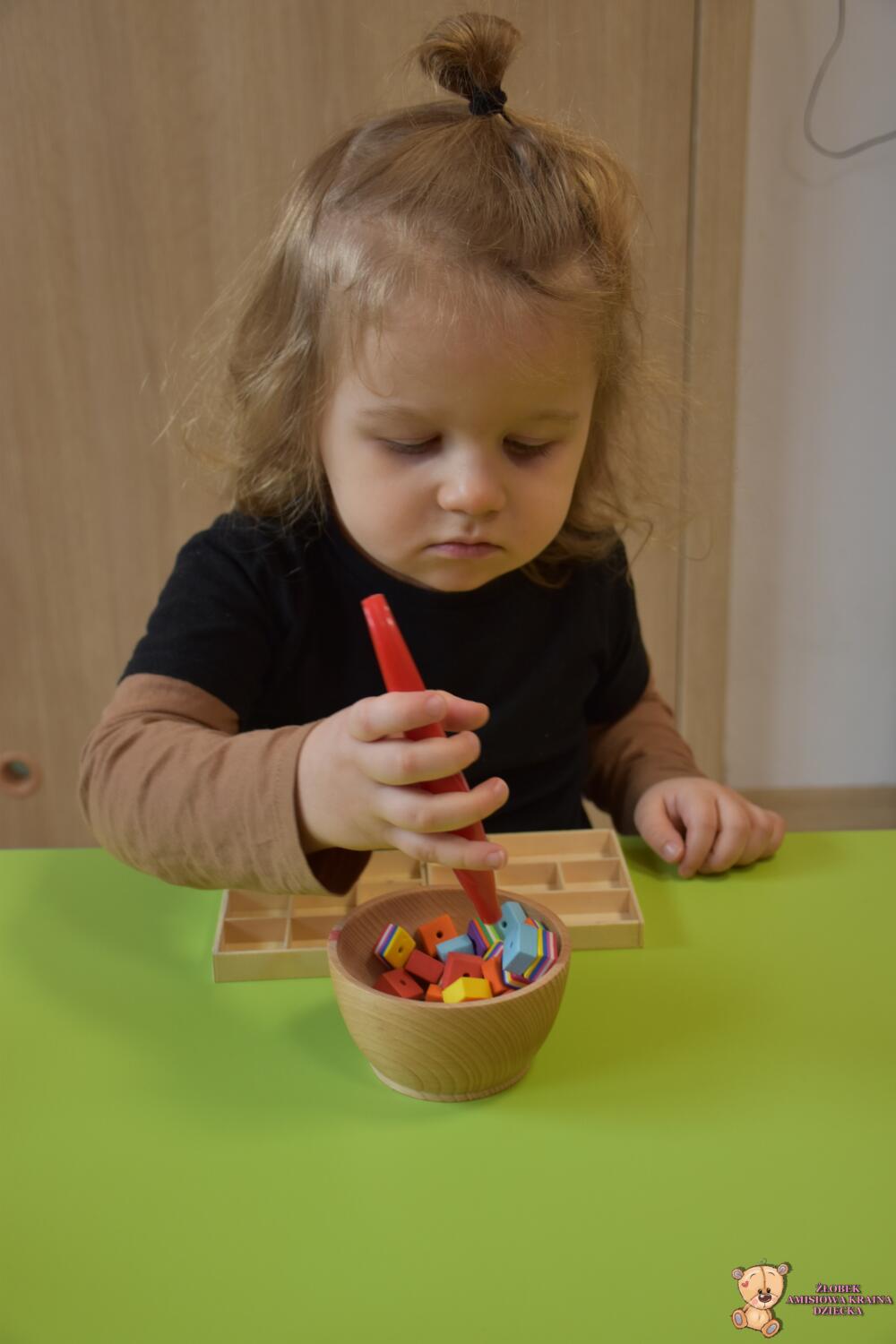 Dziś na zajęciach Montessori Amisie poznały chwyt pęsetowy ![]()
