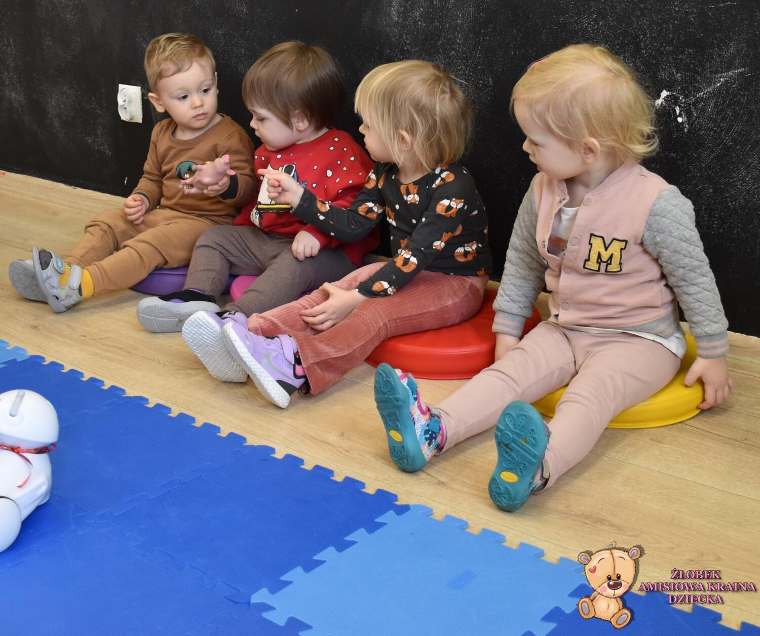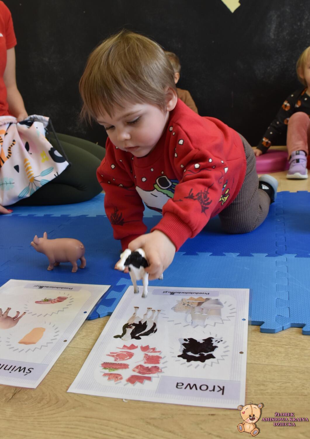 Dzisiaj w naszym żłobku 🏫odbyła się kontynuacja ostatnich zajęć z robotem Photon 🤖 Ich tematem były zwierzęta hodowlane 🐄🐔🐑🦆🐖 oraz produkty przez nie dostarczane 🪶🥛🥚🍗🥓🧀 Dzieci utrwaliły sobie wiadomości z tamtego tygodnia związane z hodowlą zwierząt, ich odgłosami oraz doskonaliły umiejętność dłuższego skupienia uwagi. ❤️