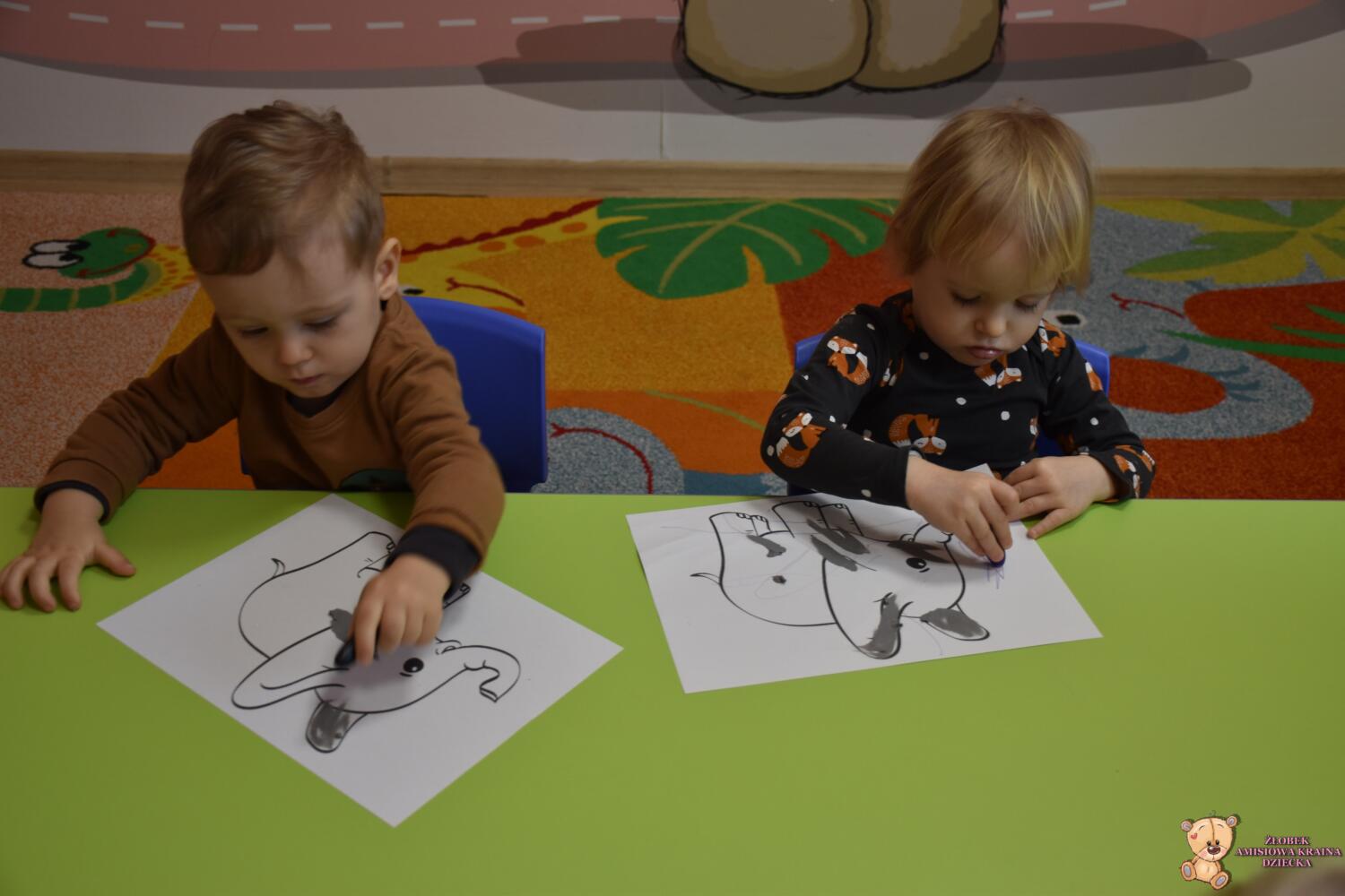 Zabawa z audimą jest coraz ciekawsza. Dzisiaj rozszerzyliśmy nasze ćwiczenia o instrumenty muzyczne i maszyny mechaniczne. Grupa średniaków i starszaków zagrała w grę< kto ma ten obrazek> , ale było wesoło. Pokazywaliśmy również jak gra się na poszczególnych instrumentach muzycznych, a najmłodsi pokolorowali słonika.