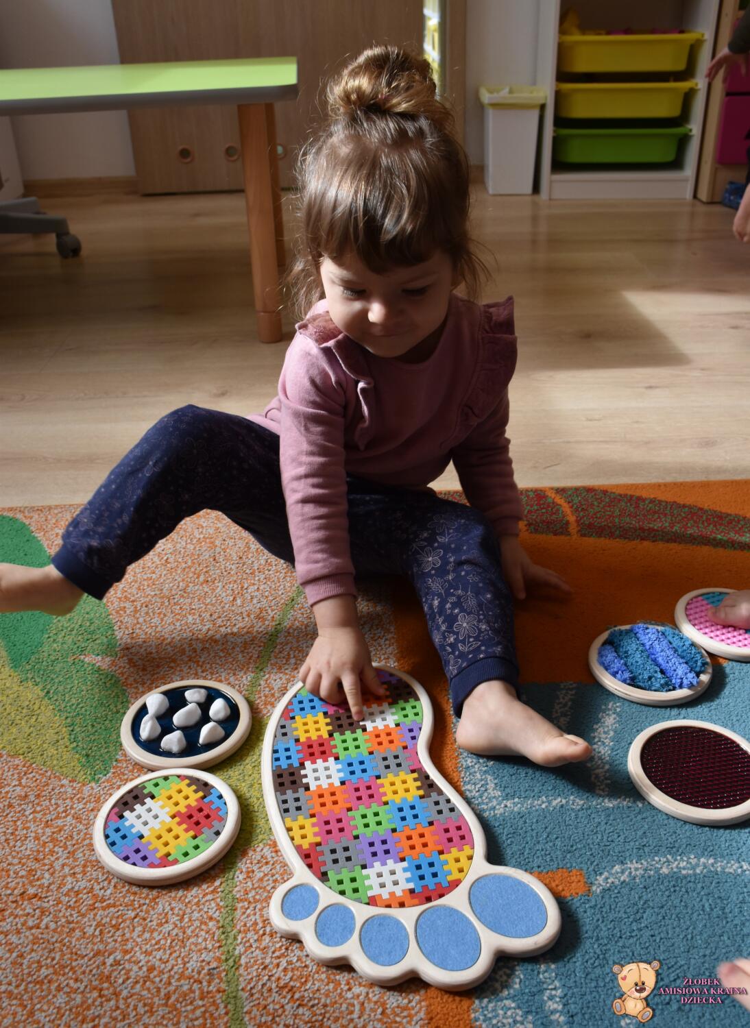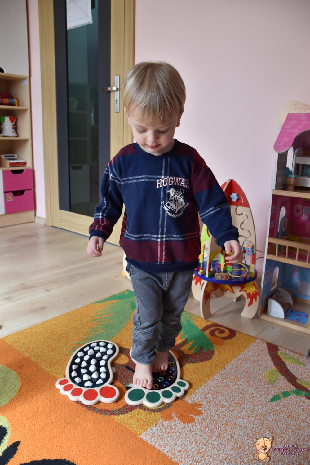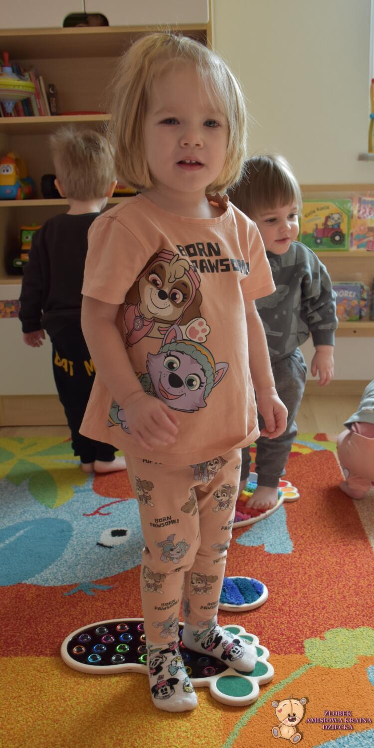 Dziś ciocie zaaranżowały dzieciom wyjątkowa zabawę- spacer po ścieżce sensorycznej Sensory Feet 🙂Dzieci miały okazję przejść bosa stópka po specjalnych podkładkach o różnych fakturach, które stymulowały receptory czuciowe w ich nóżkach. Dzięki temu dzieci rozwijają koordynację wzrokowo- ruchowa oraz równowagę. Dzieci były bardzo zainteresowane poszczególnymi elementami- czekamy na kolejne takie zajecia🙂