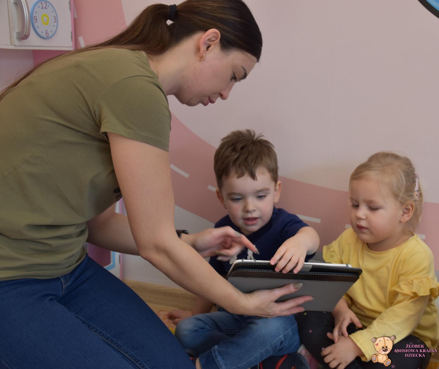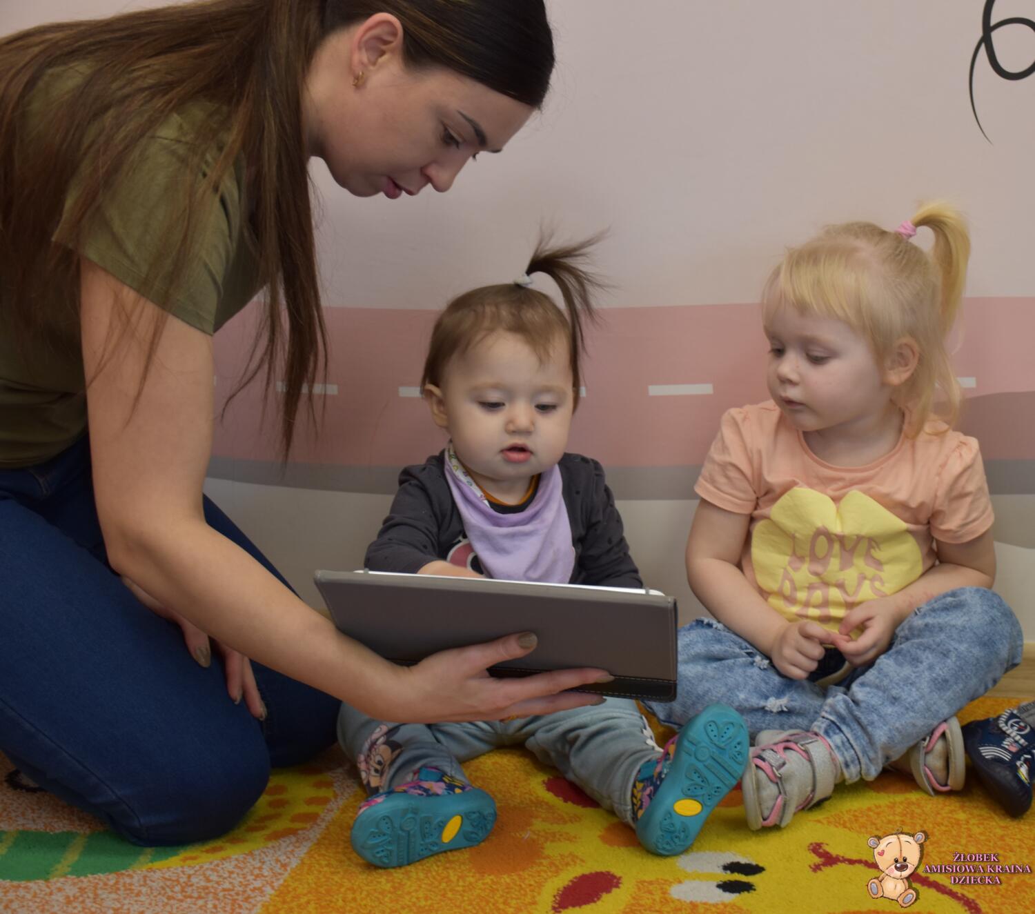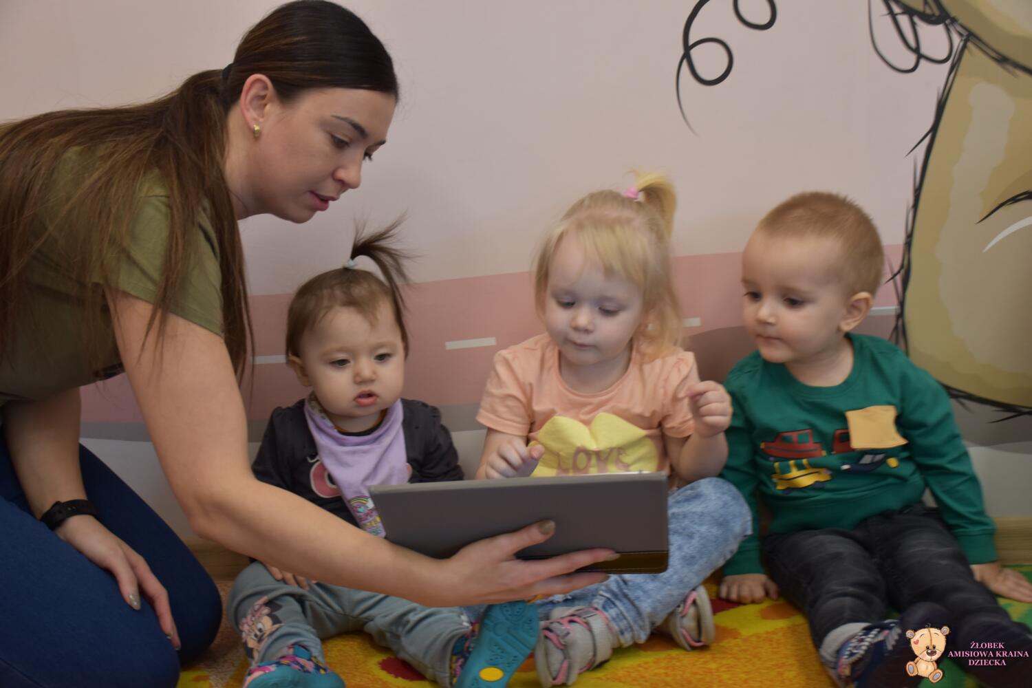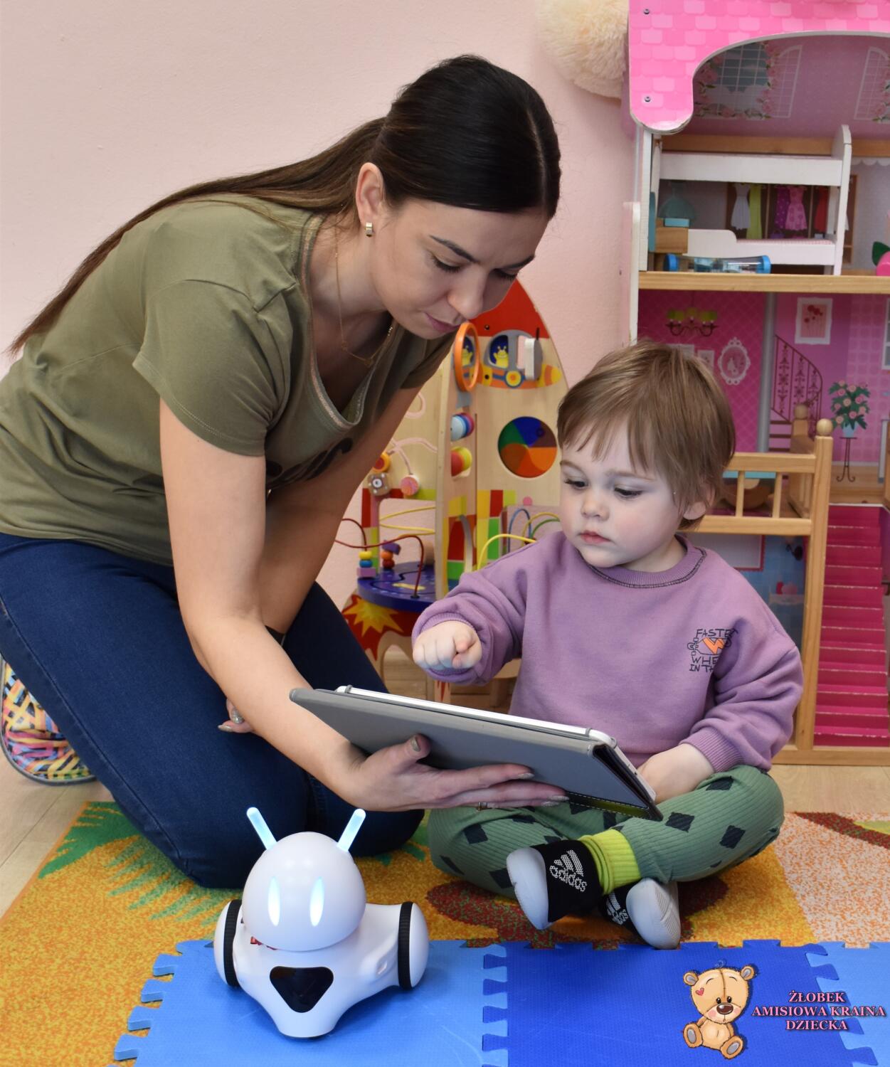 Dzieci wspólnie z robotem i panią Magdą oglądały 🖼️ plansze przedstawiające tematykę zajęć.