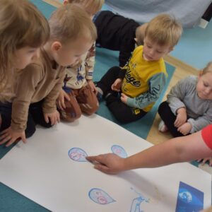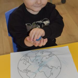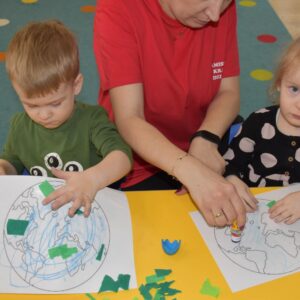 Dziś w naszym żłobku obchodziliśmy Światowy Dzień Wody .Nasze AMIsiaki rozmawiali z ciocia jak oszczędzać wodę .Grupa Niedźwiadków zasadziła z ciocia drzewko ,co było dla nich wielkim wydarzeniem .Za parę lat mogą odwiedzić Amisiową Krainę dziecka i zobaczyć jak pięknie rośnie .Na koniec wykonaliśmy pracę plastyczną ,przy której rozmawialiśmy jak oszczędzać wodę.