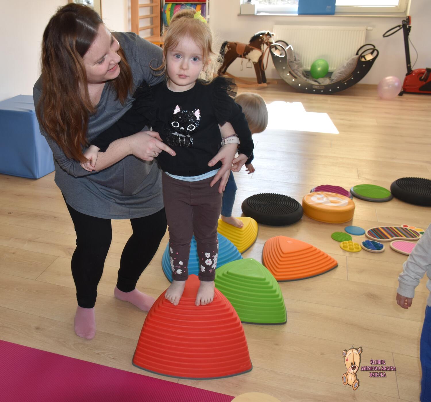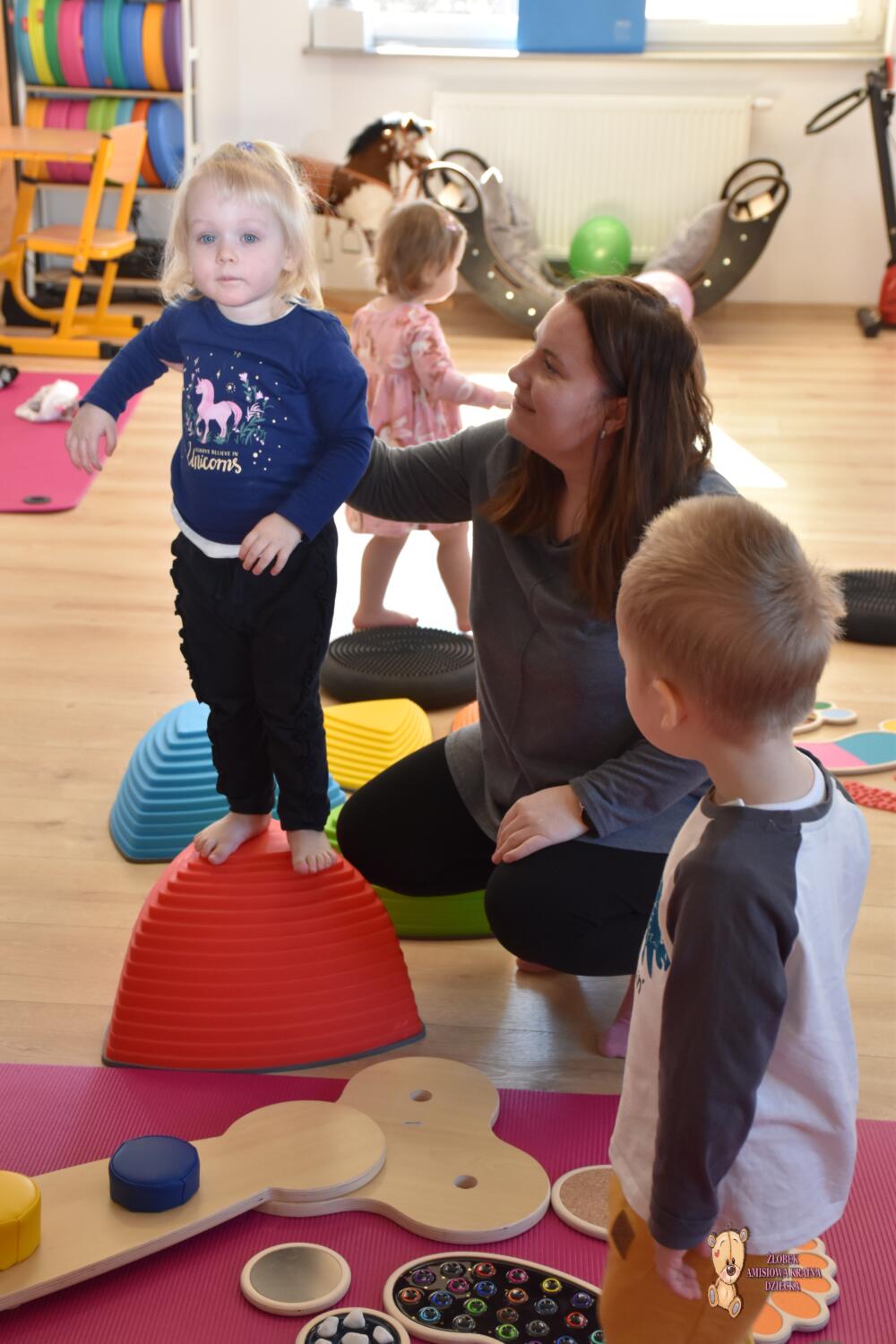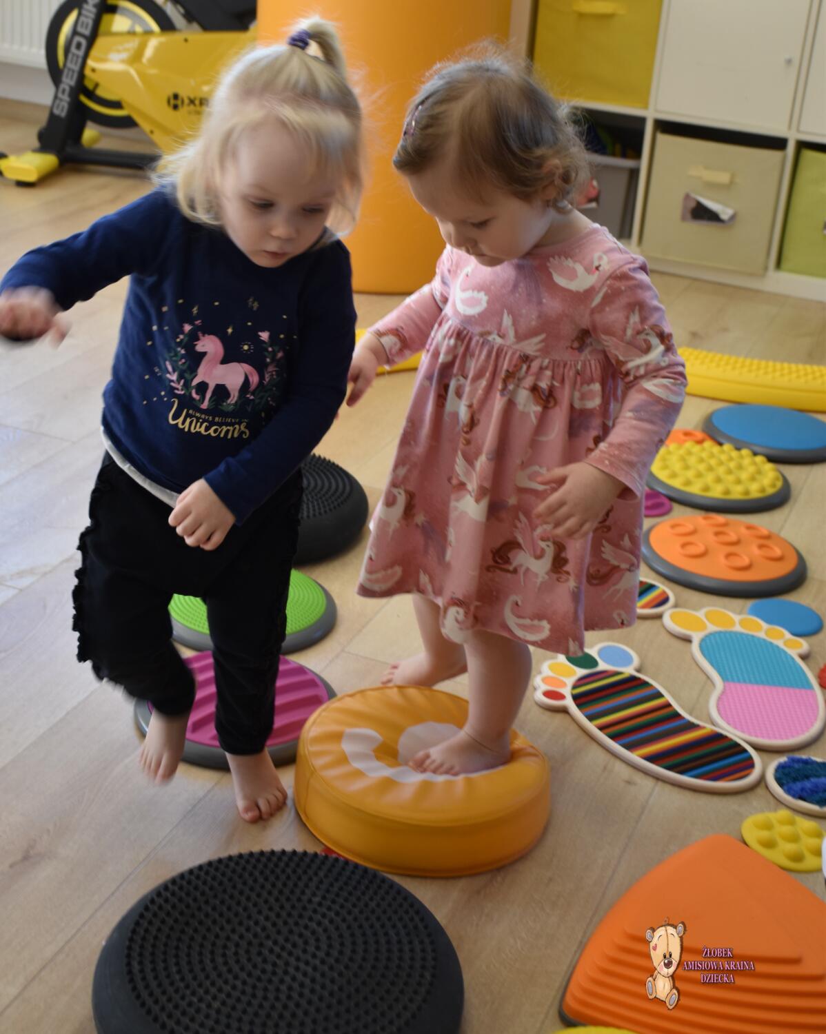 Dziś na zajęcia Integracji Sensorycznej Ciocia przygotowała dla Amisiaków małych i dużych ścieżkę sensoryczną. Dzieciom bardzo podobała się taka aktywność. Wszyscy byli zaciekawieni, zaangażowani i skupieni podczas zajęć. Starszaki okazały się bardzo odważne i zdjęły skarpety, żeby ich stopki jeszcze lepiej odczuwały różnorodne podłoże. Amisiaki starały się trzymać równowagę, śmiało kroczyły noga za nogą. Ciocia jest z Was dumna, spisaliście się na medal. Brawo!