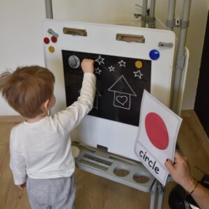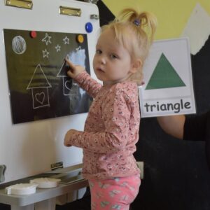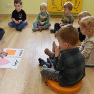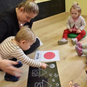 Dzisiaj na zabawach z językiem angielskim dzieci poznawały różne ksztalty❤⭐️🟫🔺️🟡. Jak należy wymawiać ich nazwy w języku angielskim, próbowaliśmy również za pomocą paluszków pokazać niektóre z nich a tym samym ćwiczyliśmy motorykę mala. Na koniec każdy miał zażądanie odszukać poznany kształt na obrazku. Wszystkim udało się wykonać zadanie a to świadczy że nasze Amisiaki są spostrzegawcze.
