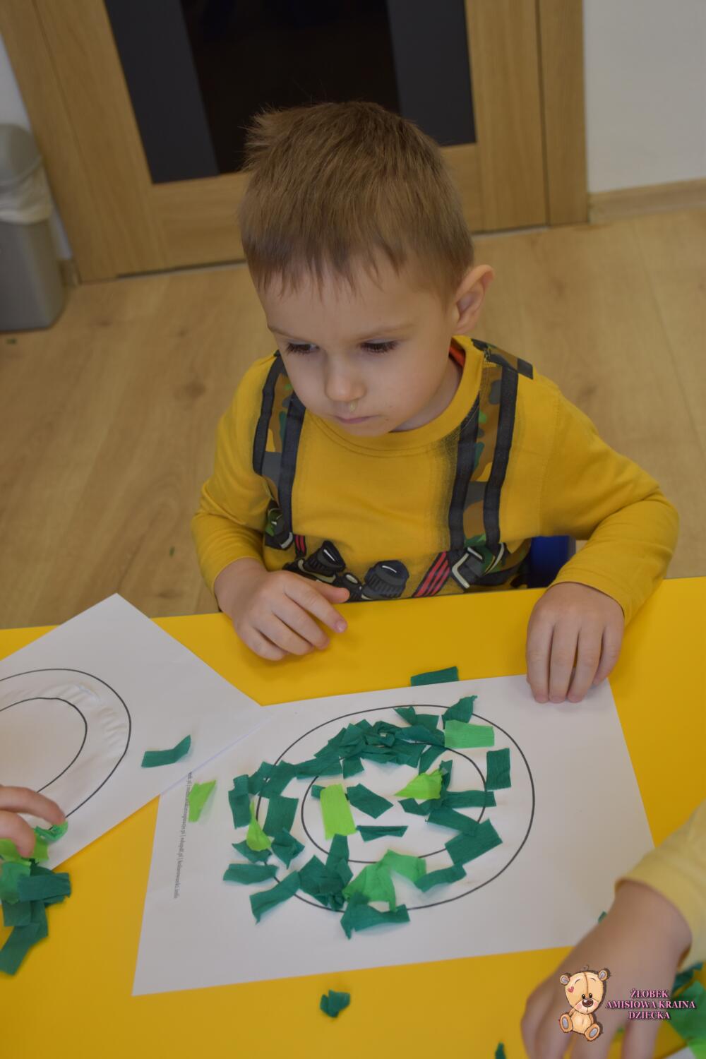 Dziś na zajęciach z Literkowa nasze dzieciaczki poznały literkę O. Rozpoczęliśmy nasze zajęcia od zapoznania dzieci z wierszem J. Tuwima „Okulary”. Dzieci po zapoznaniu z kształtem literki podejmowały próby pisania literki na tablicy, na koniec ćwiczyliśmy nasze paluszki wykonując pracę plastyczną