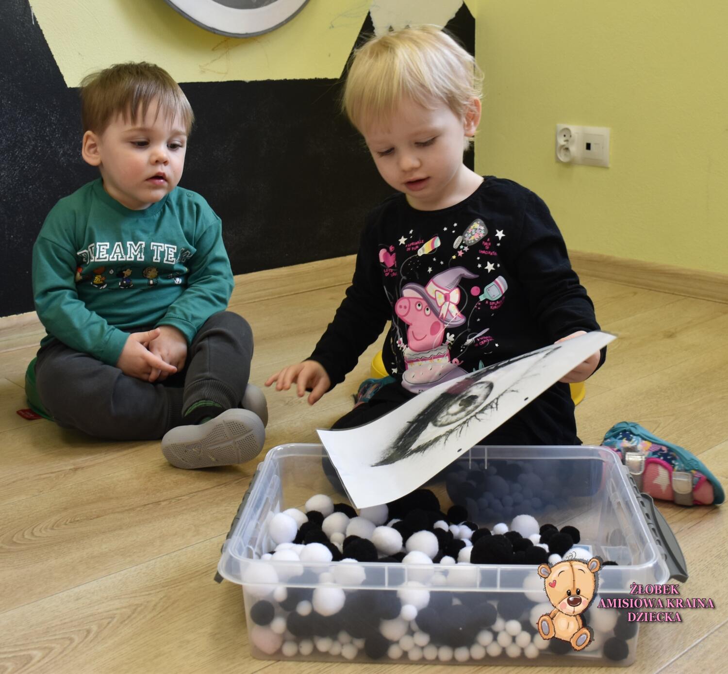 Dziś na zajęciach z Literkowa nasze dzieciaczki poznały literkę O. Rozpoczęliśmy nasze zajęcia od zapoznania dzieci z wierszem J. Tuwima „Okulary”. Dzieci po zapoznaniu z kształtem literki podejmowały próby pisania literki na tablicy, na koniec ćwiczyliśmy nasze paluszki wykonując pracę plastyczną