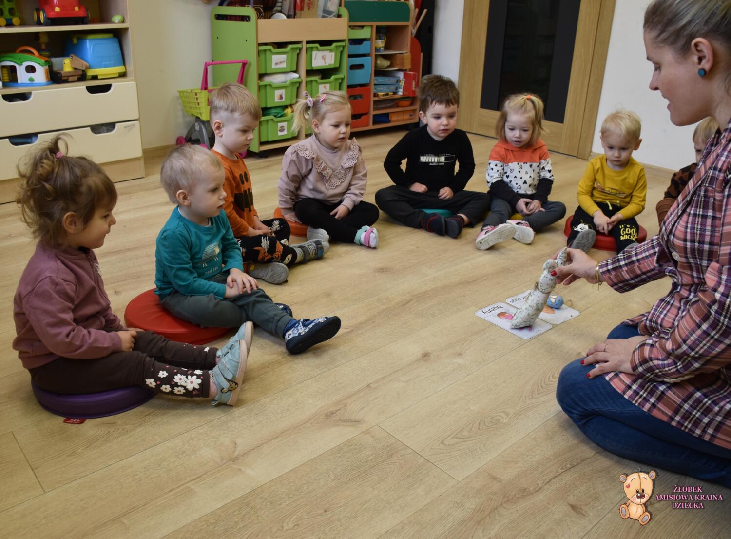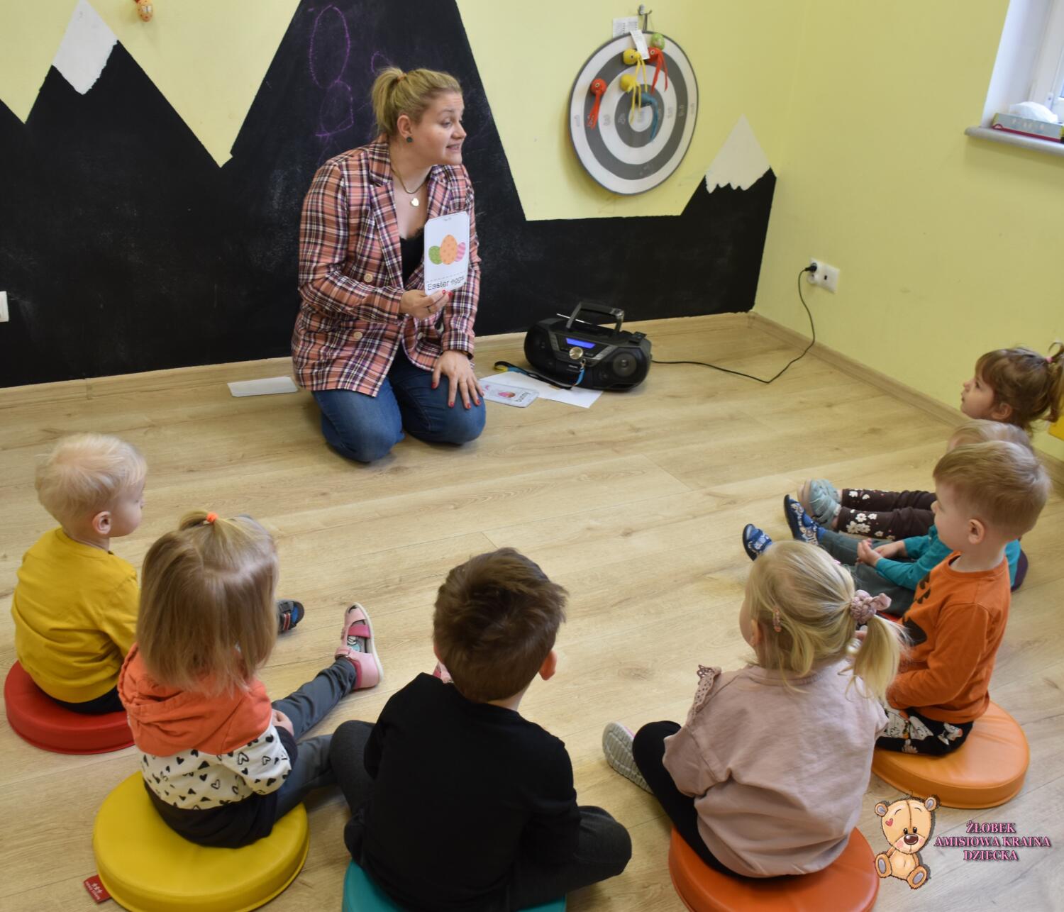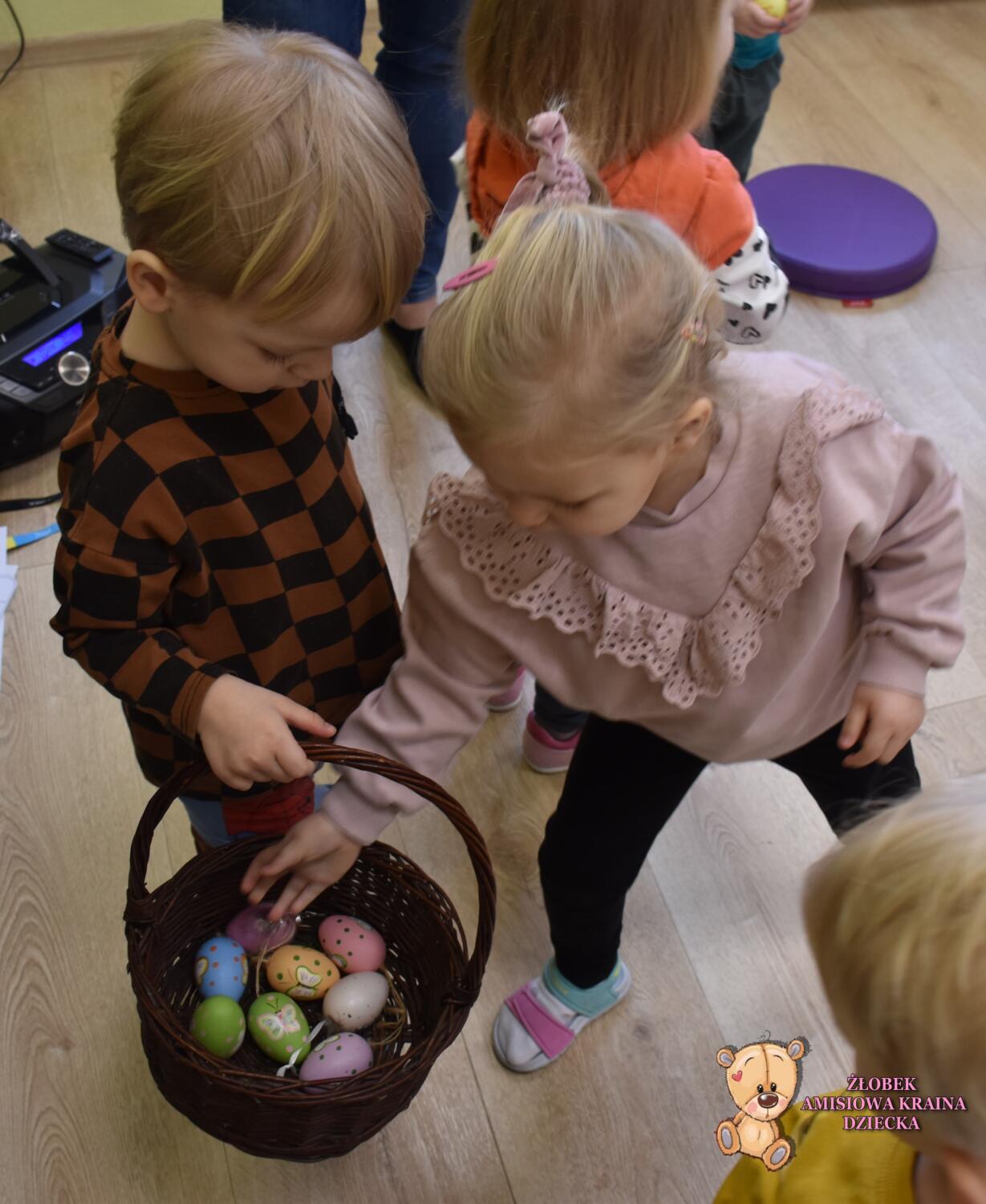 Święta Wielkanocne tuż tuż…na zabawach z językiem angielskim również mieliśmy świąteczny klimat. Amisiaki poznały symbole wielkanocne🥚🐰🐣. Następnie musiały odgadnąć, który z nich ukrył się w okienku. A na sam koniec duża frajdę zrobiło szukanie ukrytych w sali kolorowych jajek. Wesołego Alleluja🐣 wszystkim dzieciom i rodzicom życzy ciocia Renia.