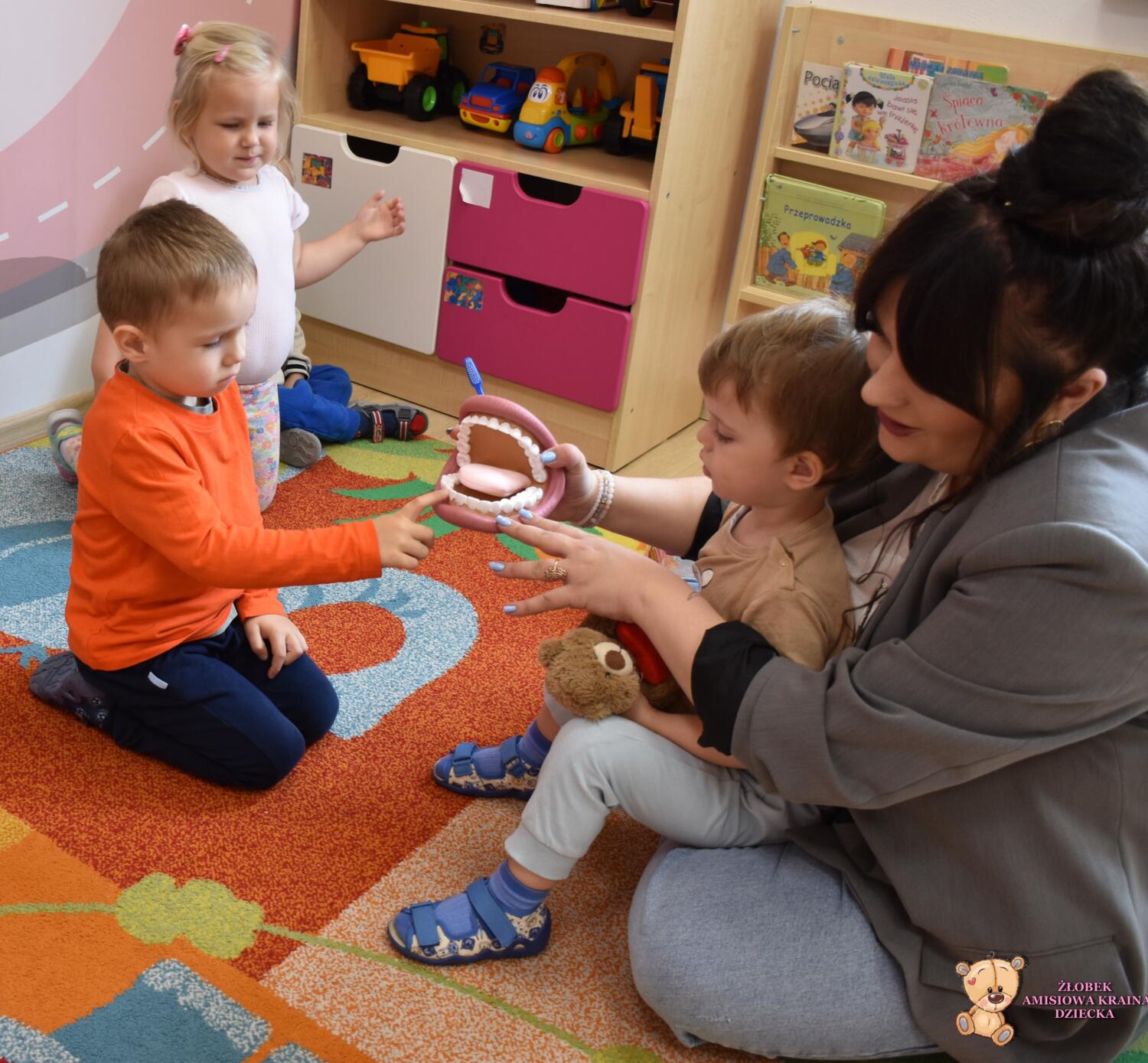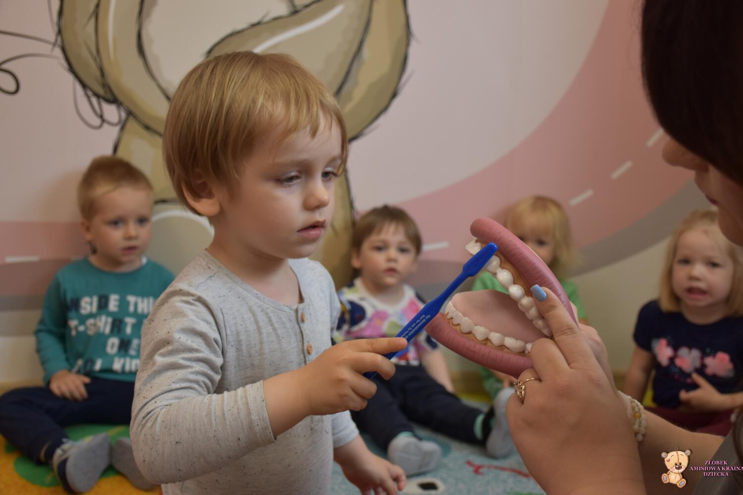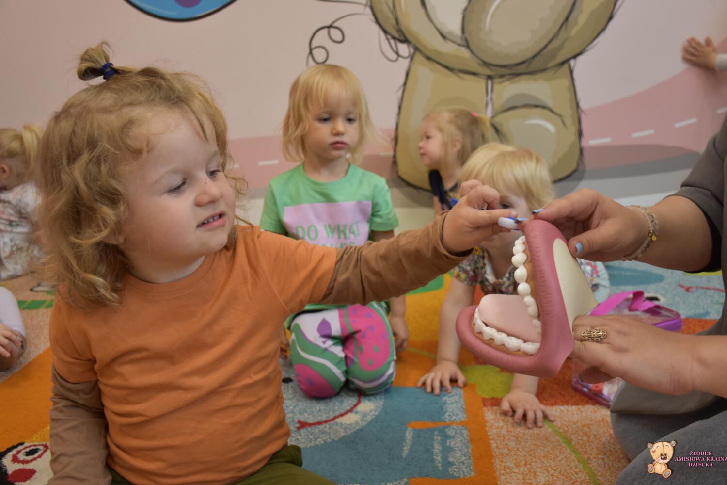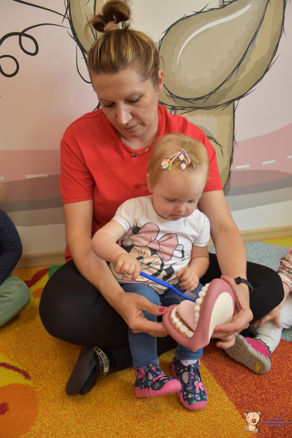 Dziś na zajęciach poznawaliśmy anatomię naszego układu artykulacyjnego . Dzieci dowiedziały się co odpowiada za gryzienie, do czego potrzebny nam język i wargi . Każde dziecko umyło również zabki na specjalnym modelu ![]()