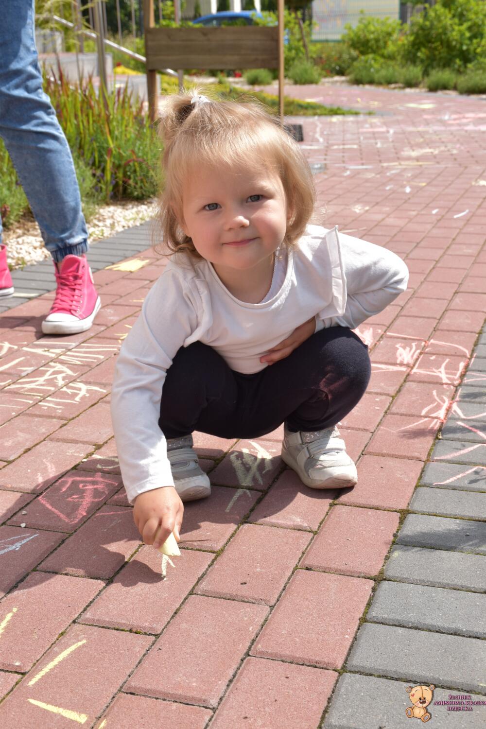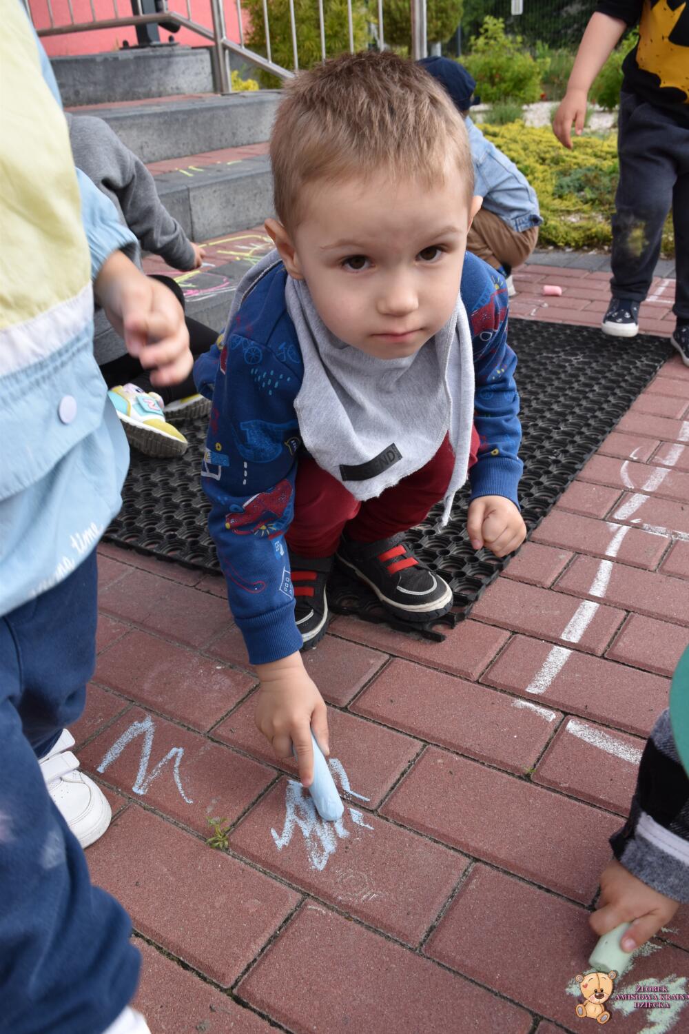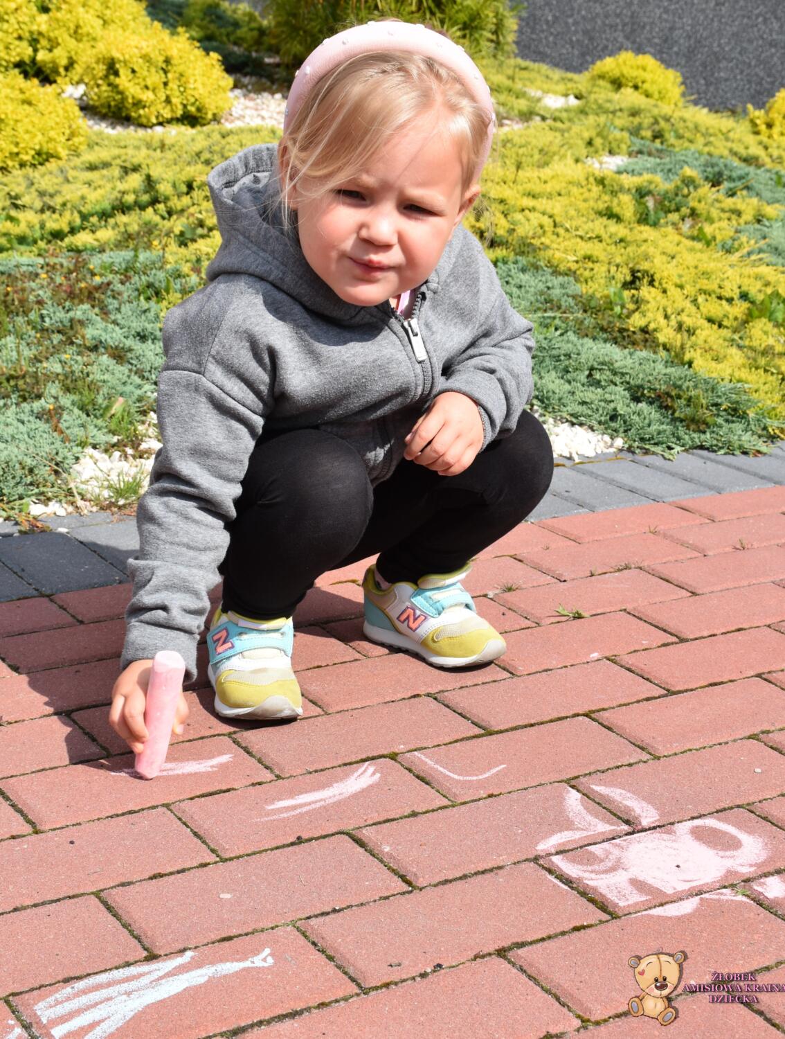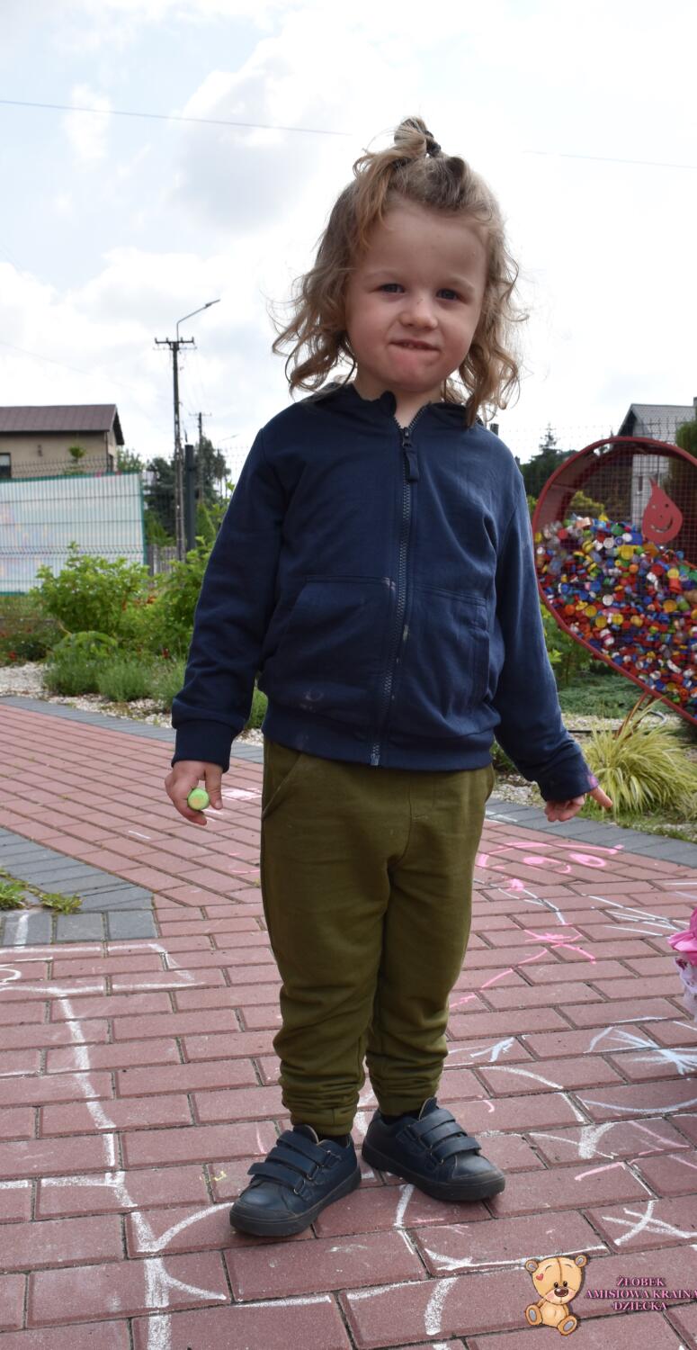 Dziś na zajęciach korzystaliśmy z ładnej pogody 🌻🙂 Amisie stworzyły piękny dywan przed naszym żłobkiem!! 💙❤️💚 Piękne barwy, rozmaite kształty i świetne ćwiczenie rozmachowe. Kochani rodzice podziwiajcie dzieło naszych małych artystów ✍️💖