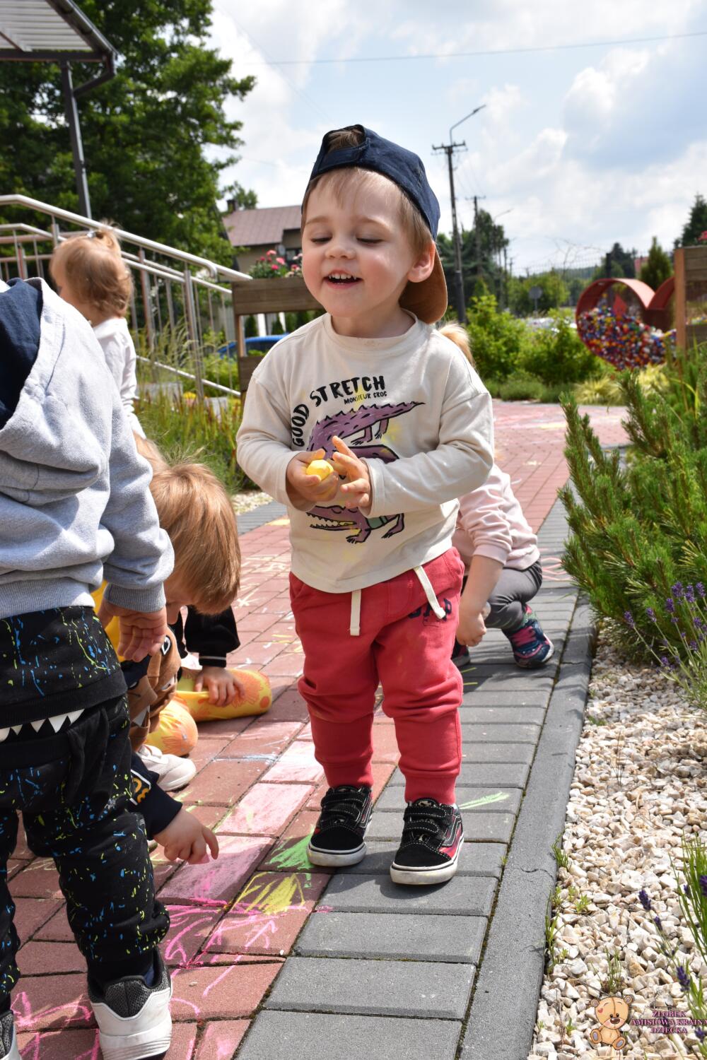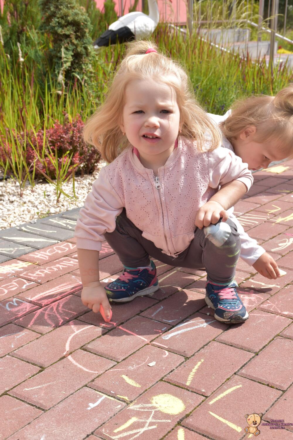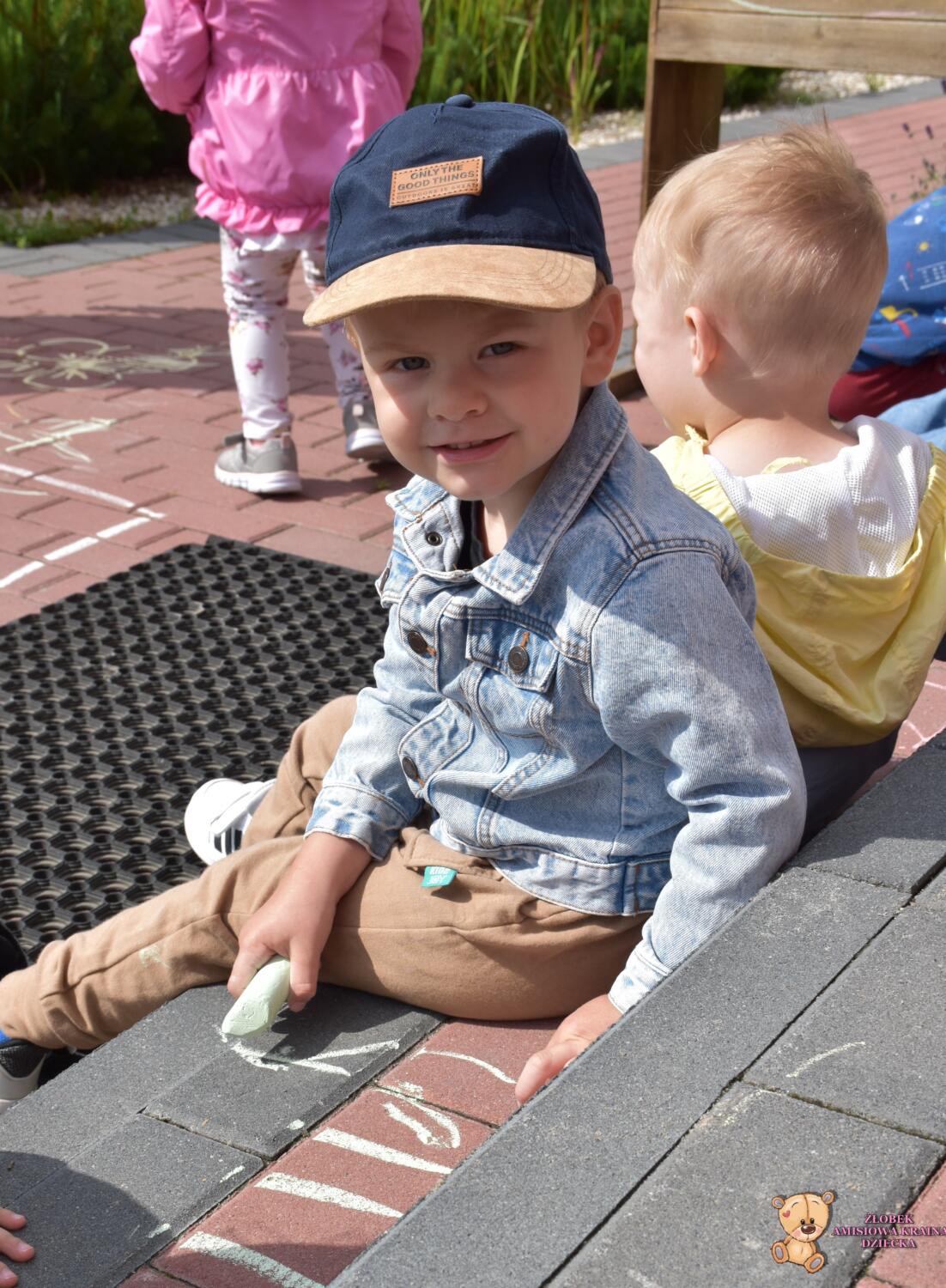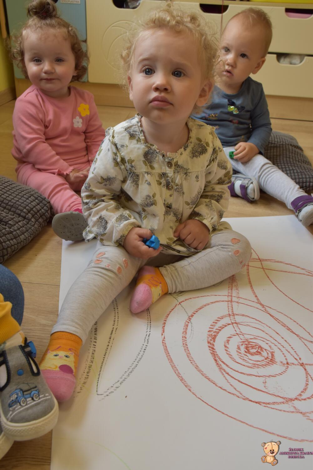 Dziś na zajęciach korzystaliśmy z ładnej pogody 🌻🙂 Amisie stworzyły piękny dywan przed naszym żłobkiem!! 💙❤️💚 Piękne barwy, rozmaite kształty i świetne ćwiczenie rozmachowe. Kochani rodzice podziwiajcie dzieło naszych małych artystów ✍️💖