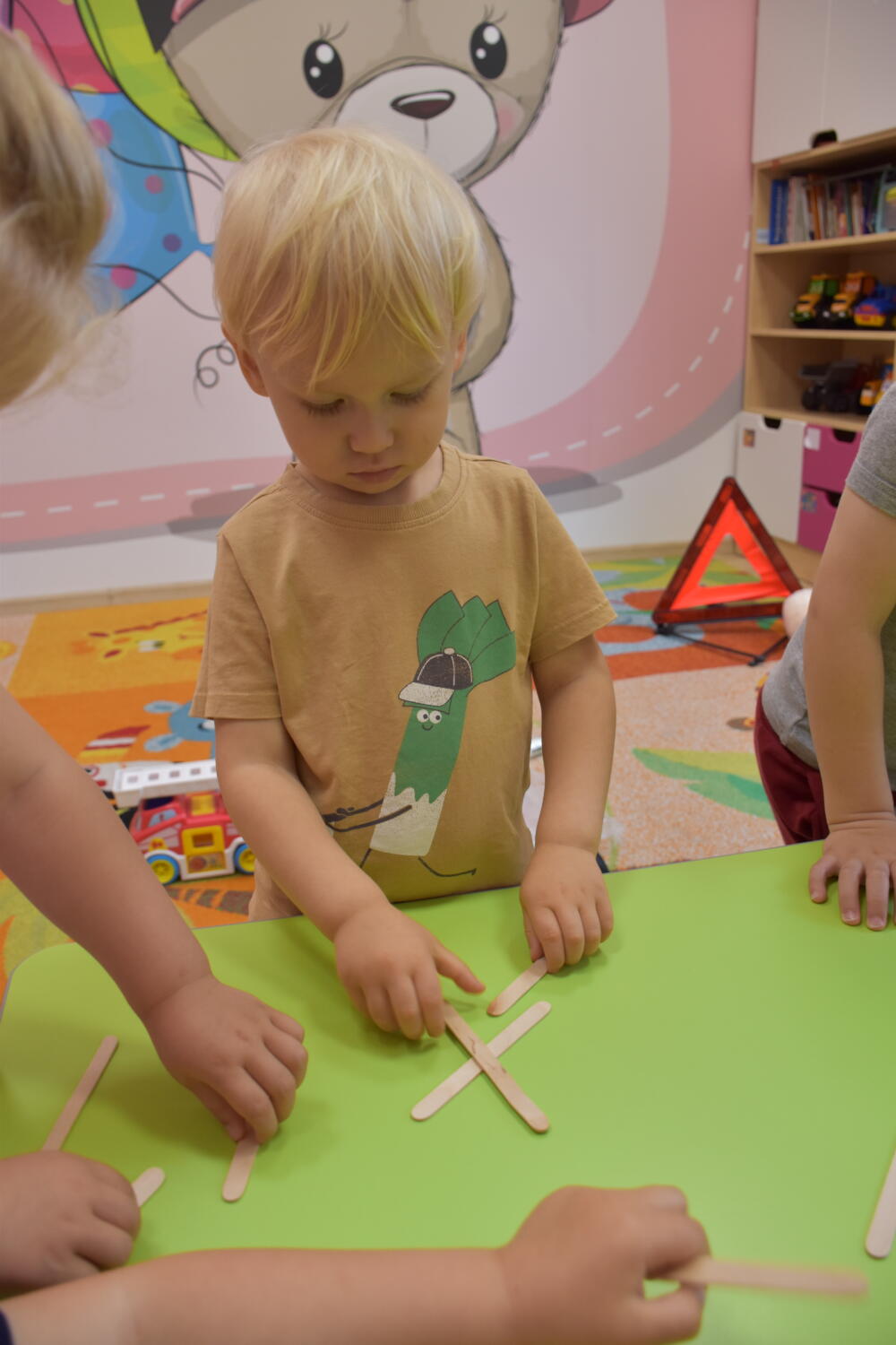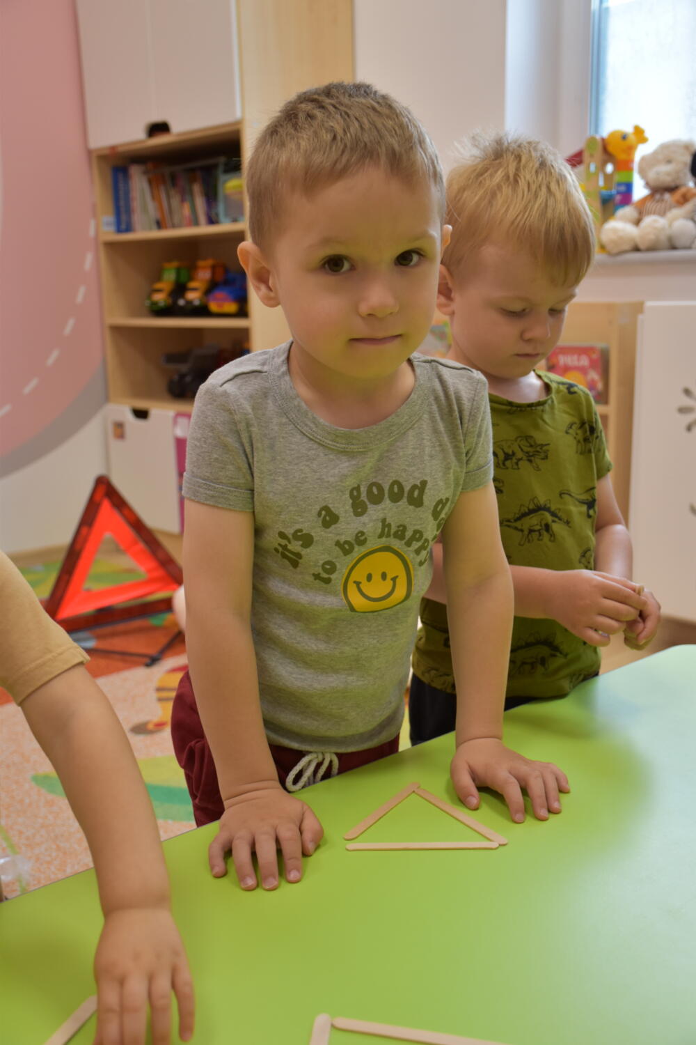 Ich zadaniem było ułożyć trójkąt z patyczków logopedycznych ![]()