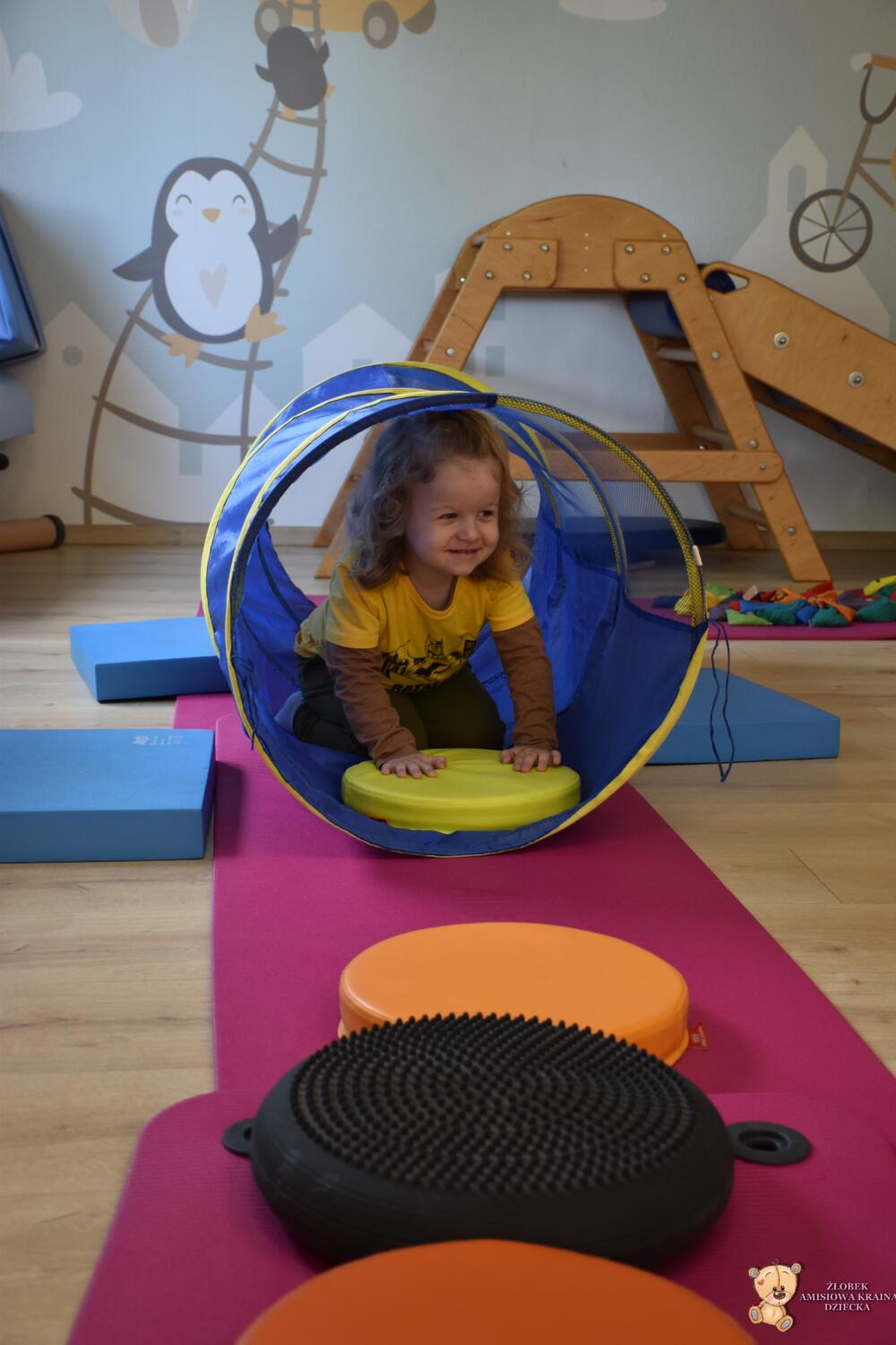 Dziś na zajęciach Integracji Sensorycznej Ciocia naszykowała dla Amisiaków duuużyyy sensoryczny tor przeszkód. Była wspinaczka, zjazdy, chodzenie po różnorodnym podłożu, tunel. Amisiaki planowały, rozwijały, utrwalały czynności ruchowe, starały się utrzymać równowagę, działać precyzyjnie. Zauważyć można dużą samodzielność, śmiałość, zaangażowanie i chęć do aktywności sensorycznych. Amisiaki spisały się na medal. Brawo!