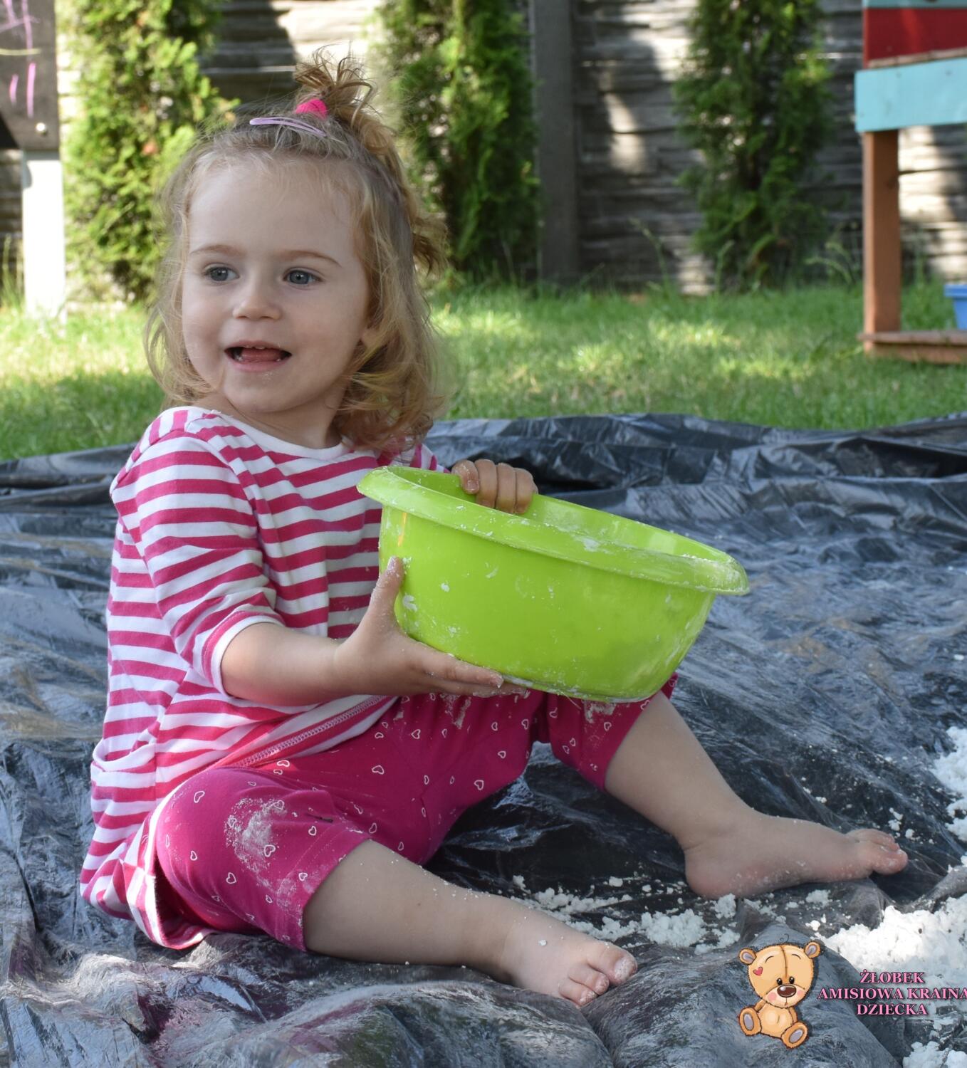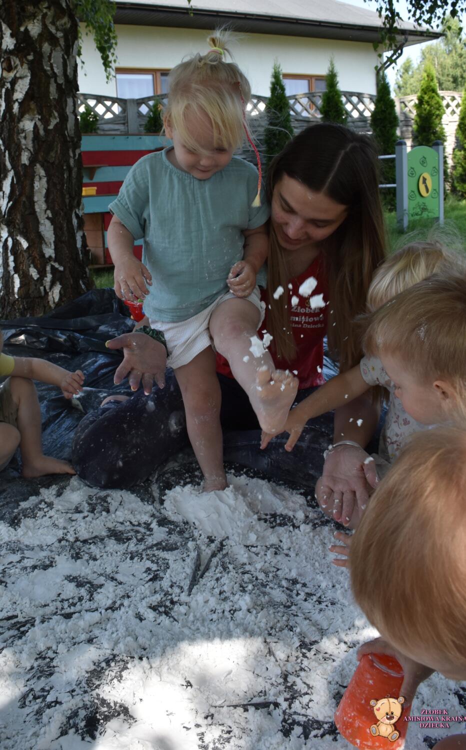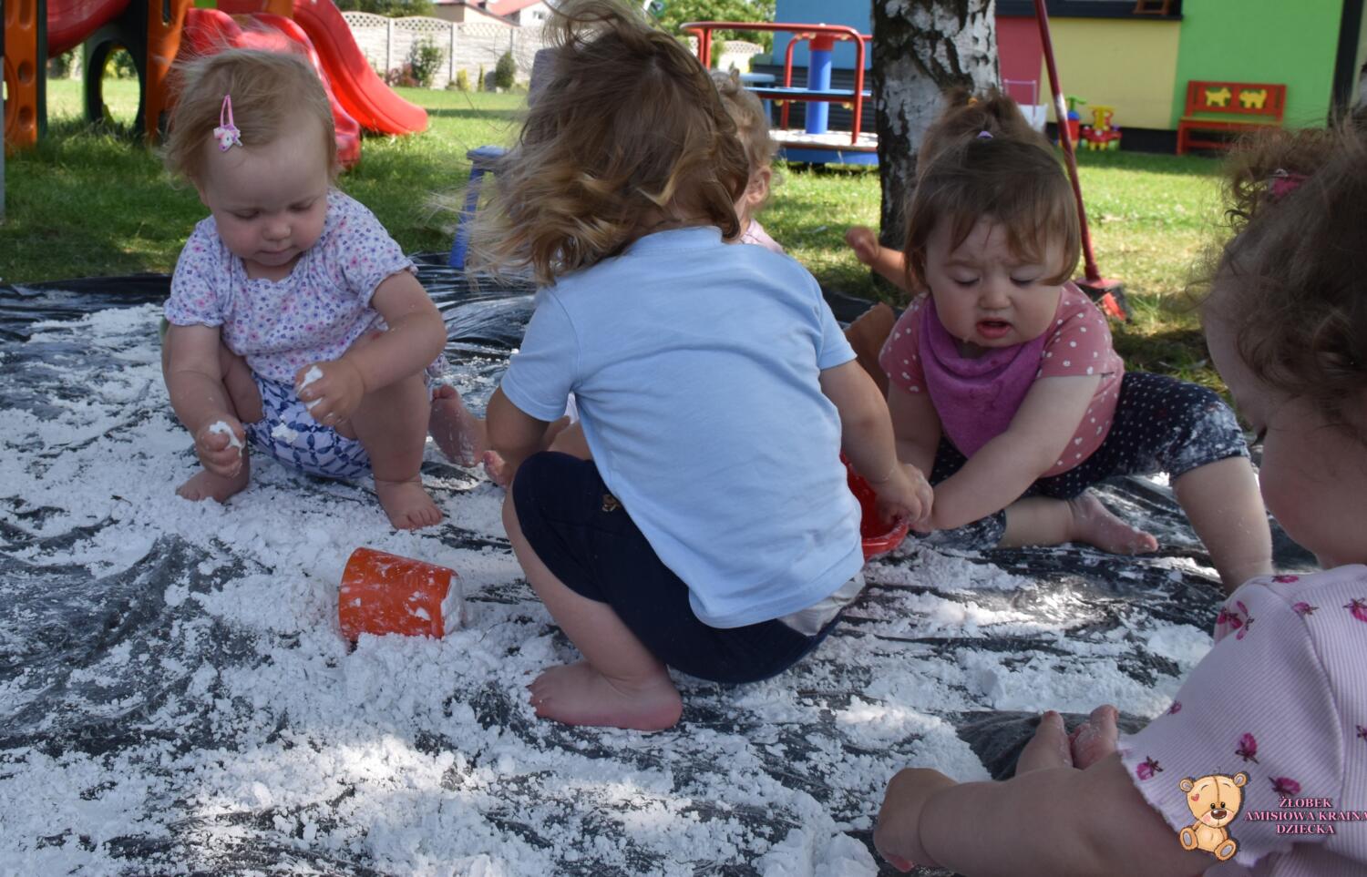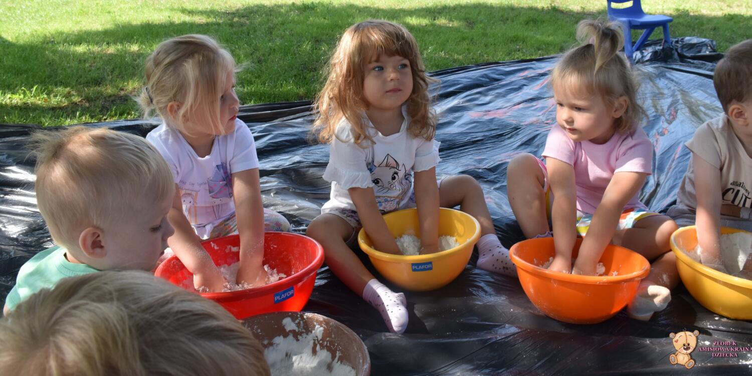 Dziś zajęcia sensoplastyki na świeżym powietrzu !🌲🌳 Dzieci stworzyły masę do której wykorzystały skrobie ziemniaczaną i oliwkę. To wspaniały przepis na super zabawę, co widać po radości Amisiaków. Budowaliśmy babki, lepiliśmy kule i przesypywaliśmy.🍭