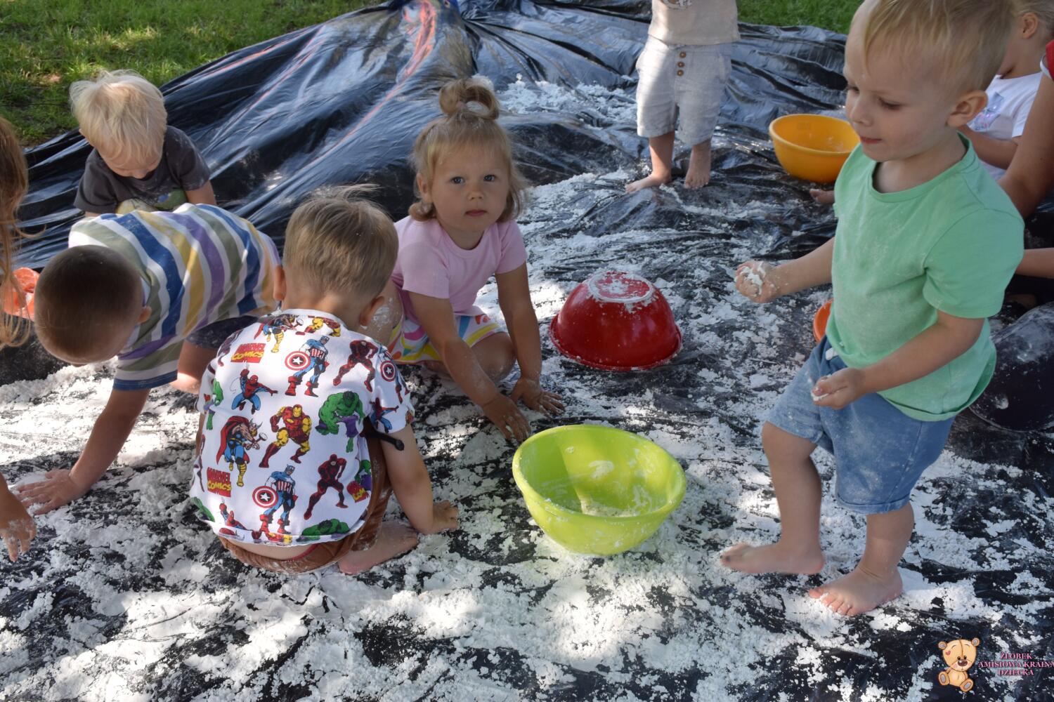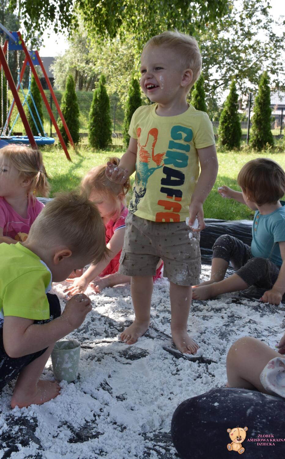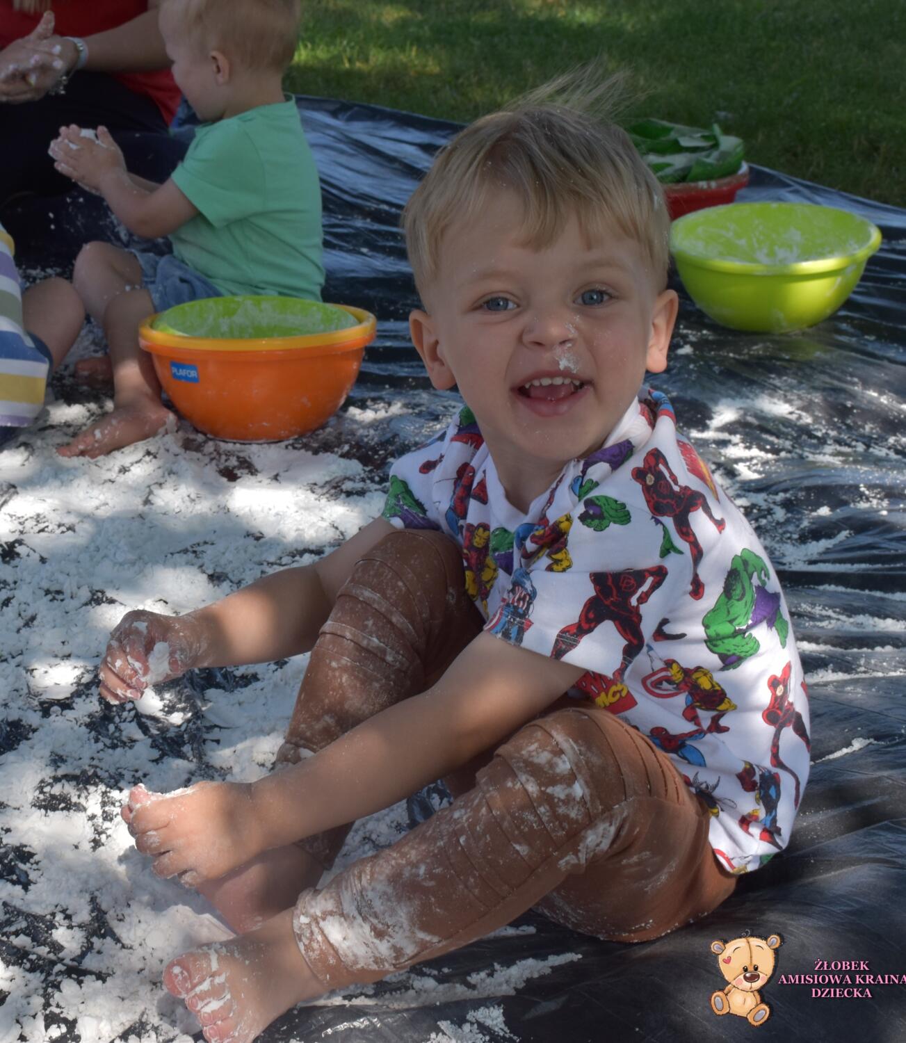 Dziś zajęcia sensoplastyki na świeżym powietrzu !🌲🌳 Dzieci stworzyły masę do której wykorzystały skrobie ziemniaczaną i oliwkę. To wspaniały przepis na super zabawę, co widać po radości Amisiaków. Budowaliśmy babki, lepiliśmy kule i przesypywaliśmy.🍭
