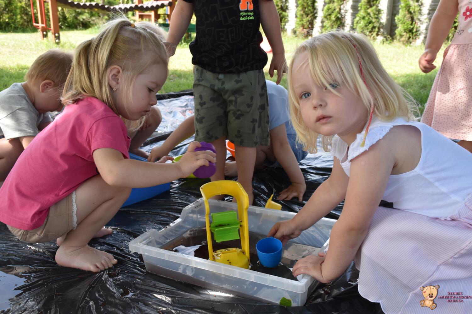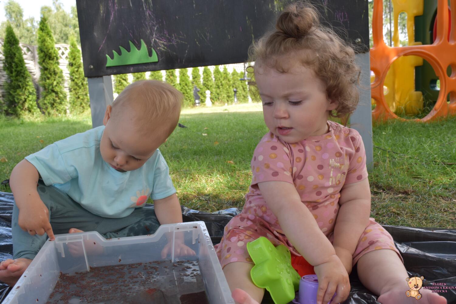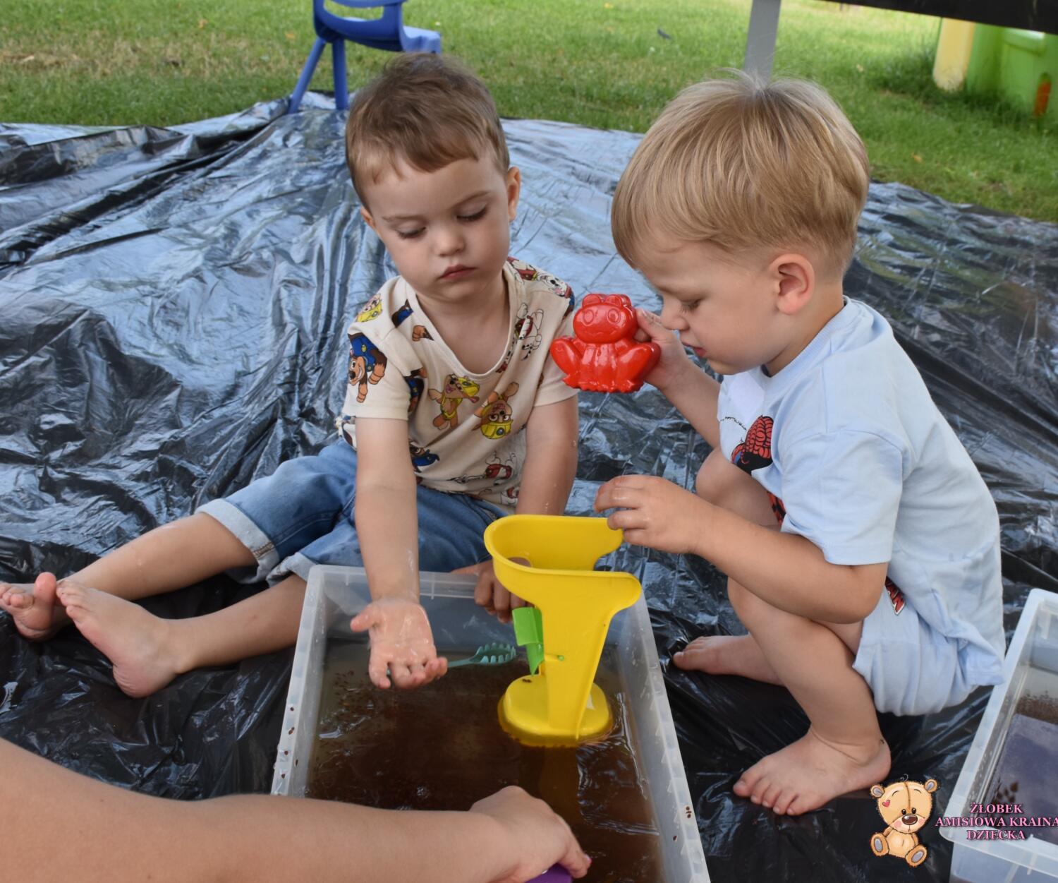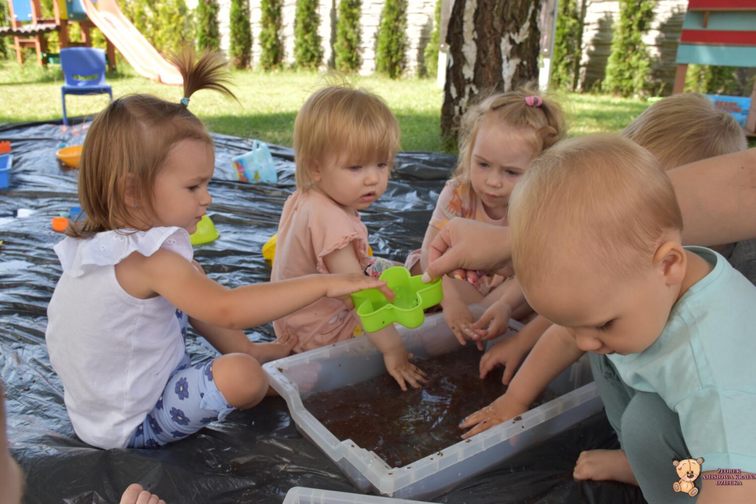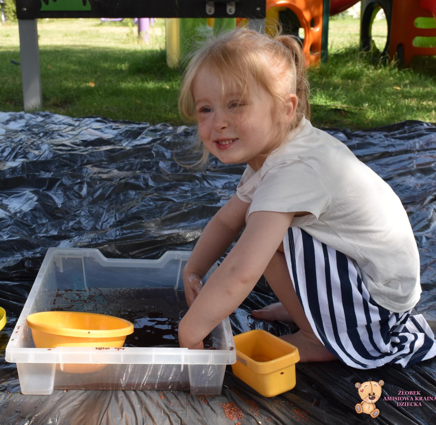 Dziś kolejny słoneczny dzień 🌞 dlatego nasze Amisiaki na zajęciach sensoplatyki ponownie wybrały się na żłobkowy plac zabaw🌈 Dziś czekała na nich niespodzianka w postaci WODNEGO PLACU ZABAW z siemienia lnianego. Dzieci miały do dyspozycji zabawki takie jak łopatki, miseczki, foremki i wiele innych. To była super zabawa !🌈