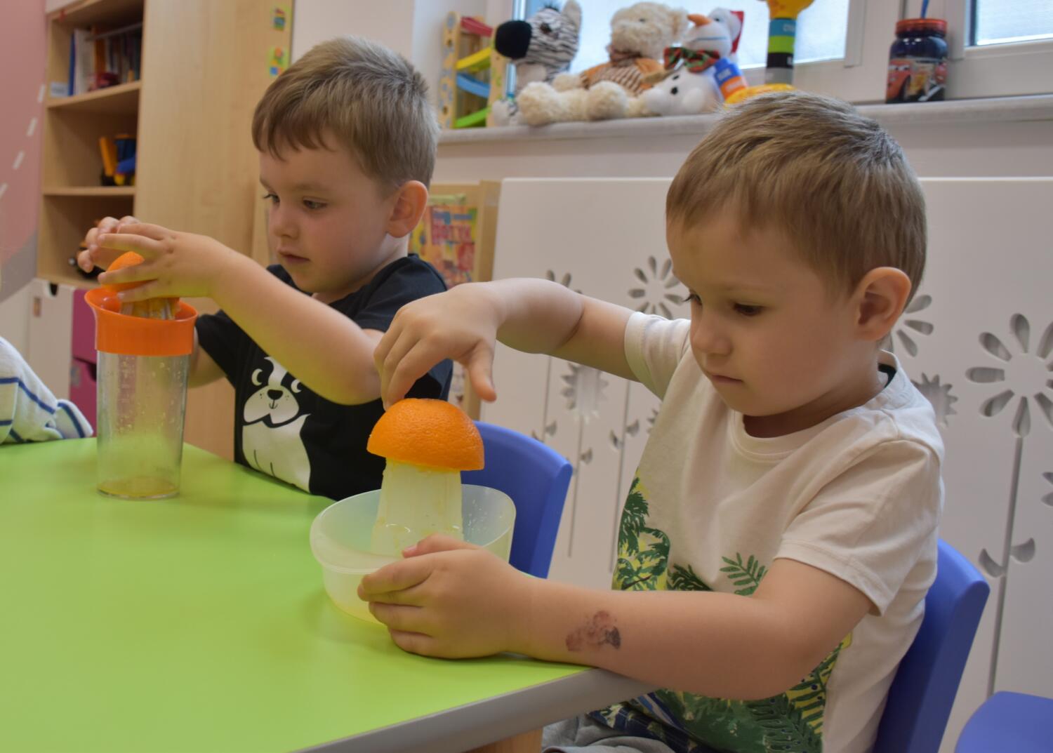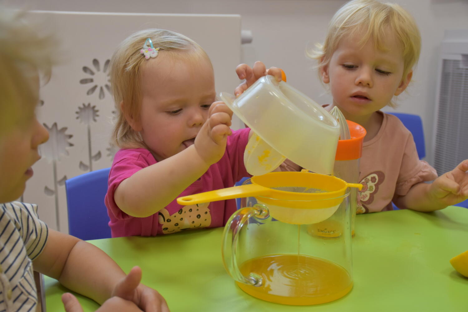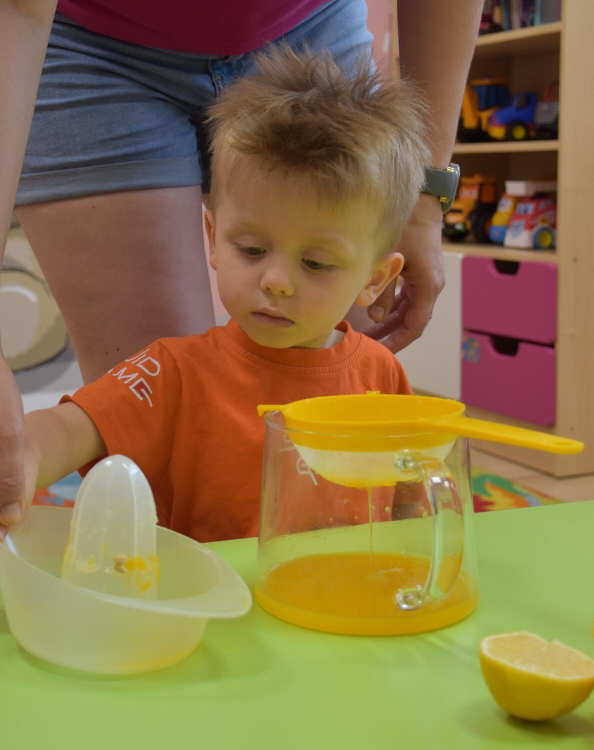 W dniu dzisiejszym na zajęciach Montessori Amisie robiły pyszną lemoniadę. Zaskoczył nas deszcz, bo w planach mieliśmy działać w naszym ogrodzie ![]()