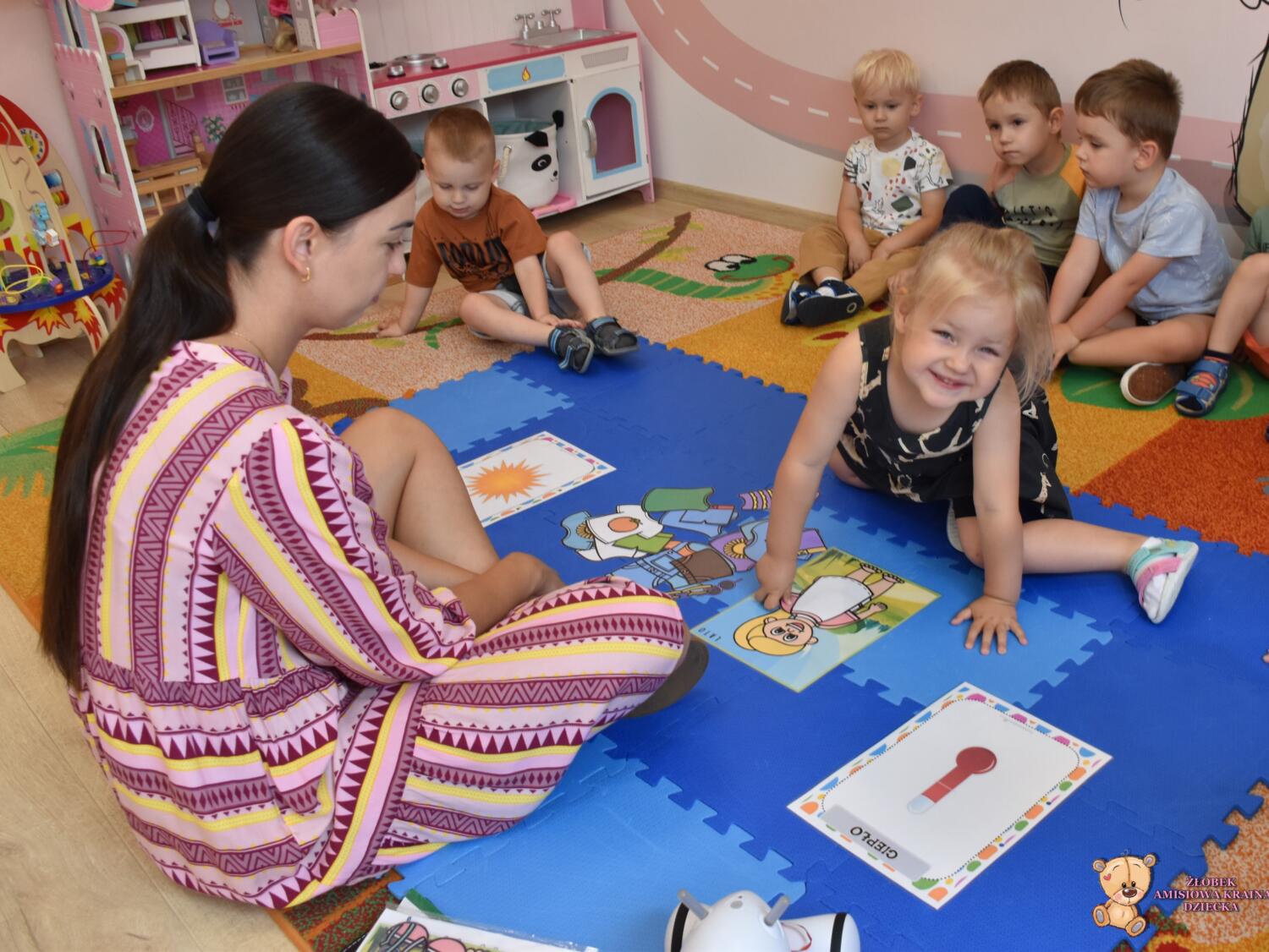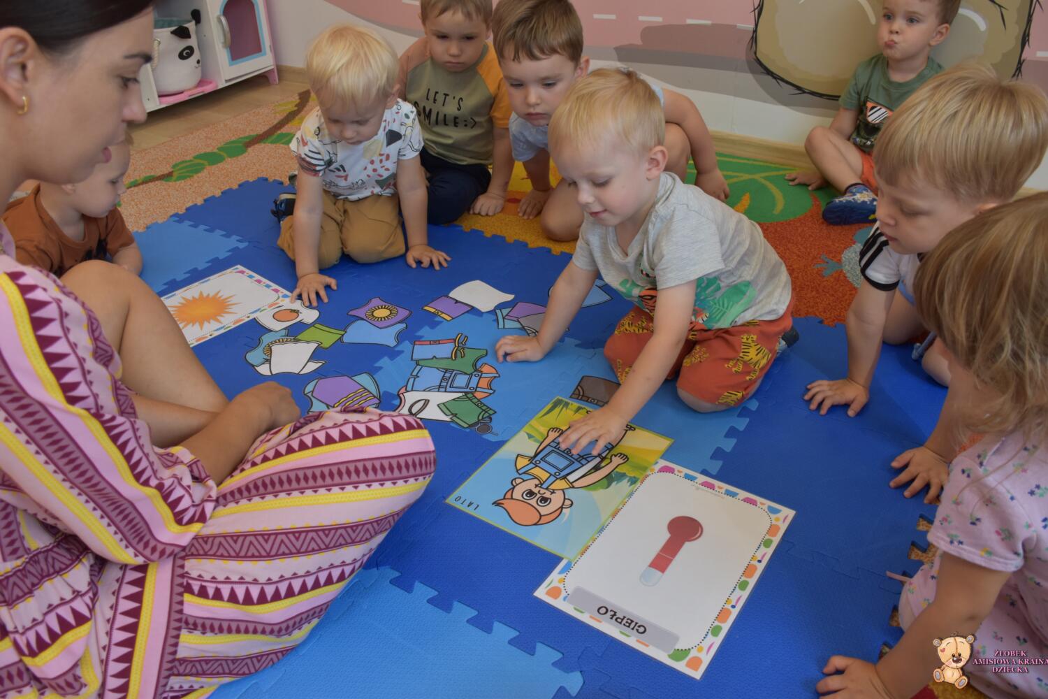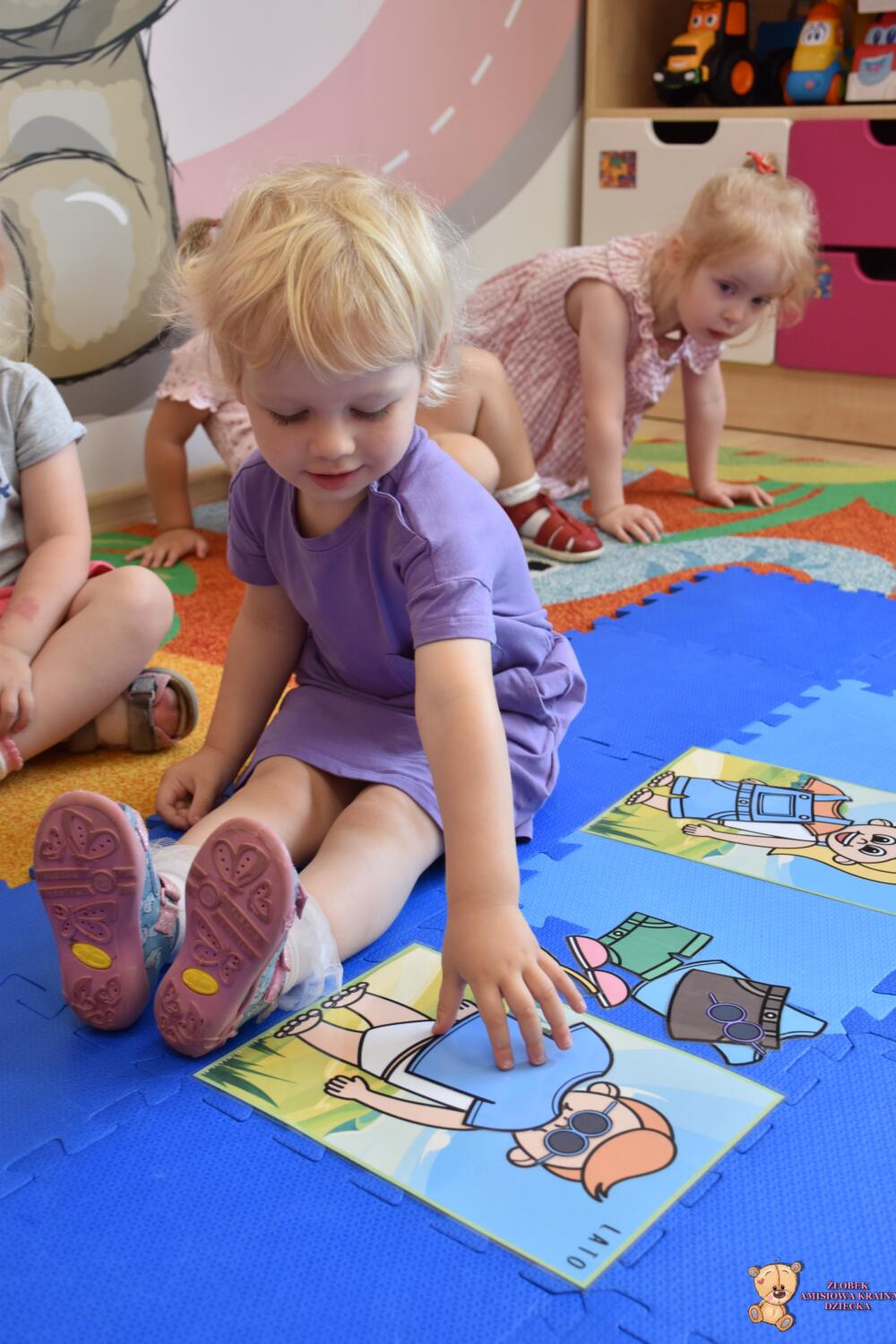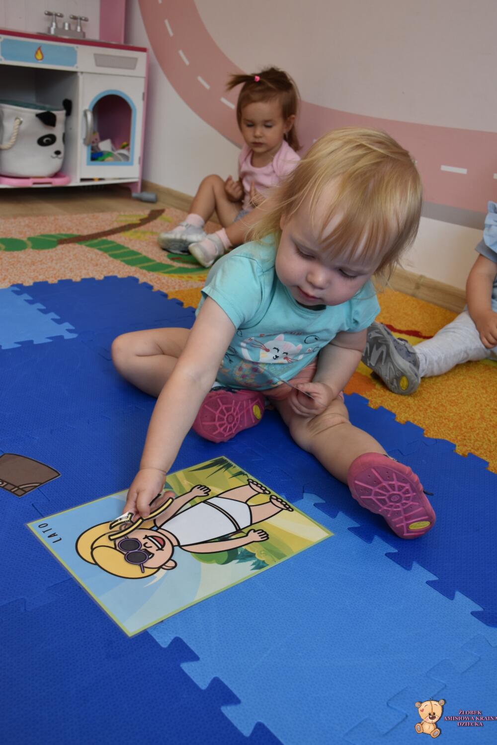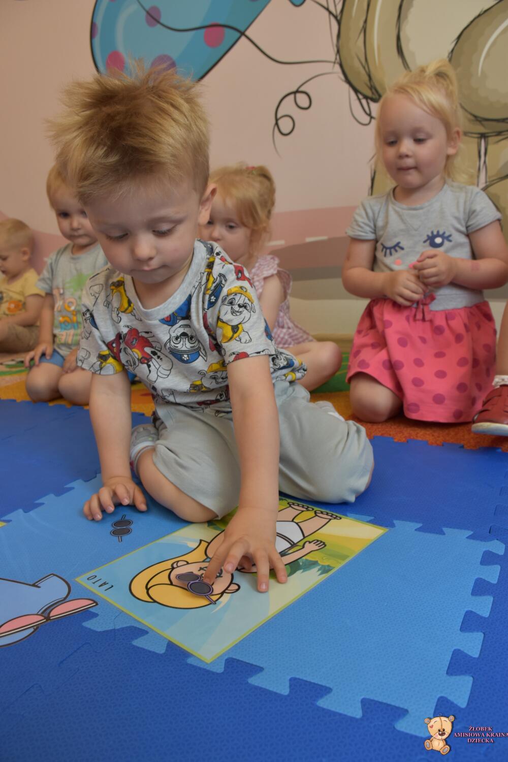 samodzielnie dobierało części garderoby i umieszczało je na szablonie. Dzięki zabawie dzieci utrwaliły sobie wiadomości związane z latem, ćwiczyły samodzielne ubieranie na szablonie oraz doskonaliły umiejętność czekania na swoją kolej. Na zakończenie każdy z naszych milusińskich sterował robotem