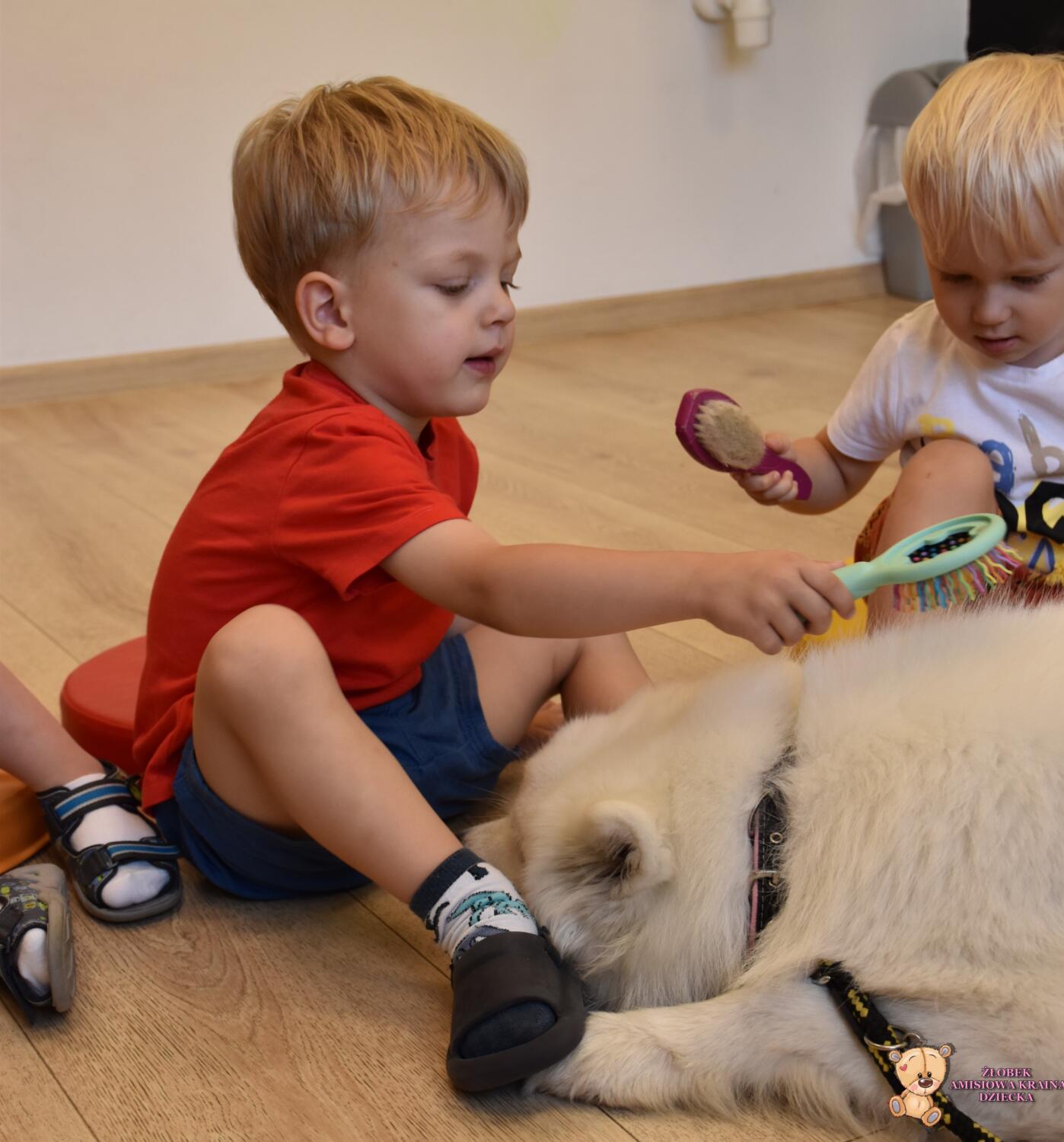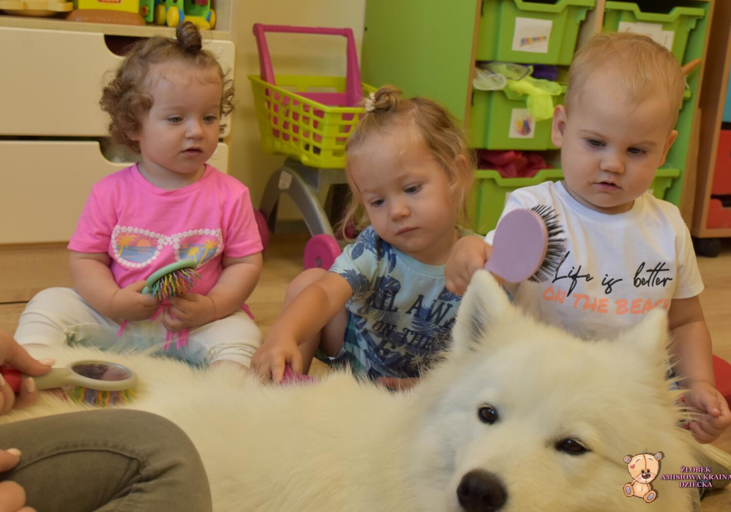 Dzisiejszego poranka do Amisiowej Krainy Dziecka przyjechała Juka – psia przyjaciółka. Ta wizyta także rozpoczęła się przypomnieniem sobie wiadomości o psie oraz przywitaniem. Zadanie jakie czekało na Amisiaków, wymagało od nich umiejętności rozpoznawania kolorów. Ciocia Agata przywiozła kolorowe budy oraz obrazki z różnymi pieskami, zadaniem dzieci było odnalezienie budy, która będzie pasowała do ich pieska. Zadanie było trudne ale wszystkie grupy świetnie sobie z nim poradziły. Na koniec tak jak zawsze dawaliśmy Juce jej ulubione smaczki.
