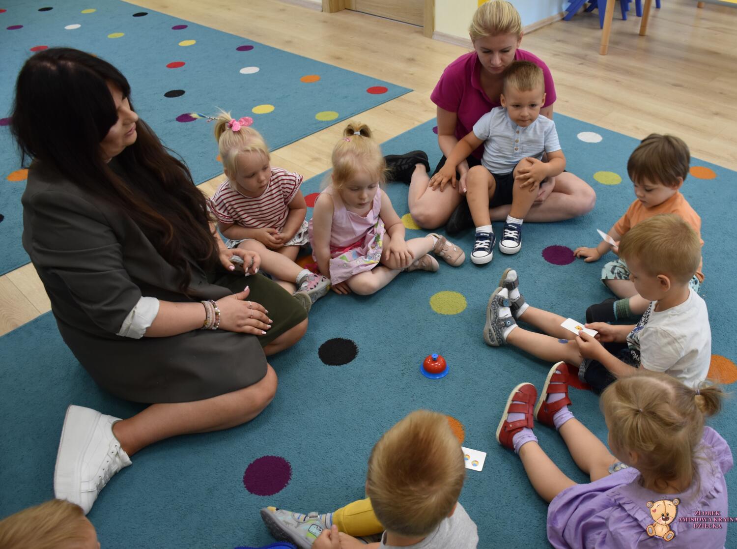 Dziś magiczny dzwoneczek . Dzieci rozpoznawały obrazki i jeśli znaku odpowiedz dzwoniły na magicznym dzwoneczku . Uczyliśmy się również pojęć dużo i mało . To był super czas ![]()