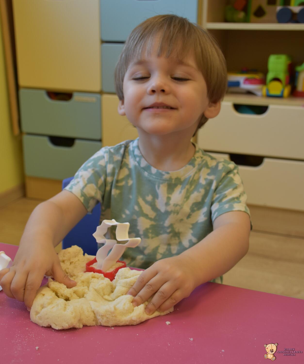 Na dzisiejszych zajęciach z ciocią Klaudią, dzieci stworzyły masę solną. Do miski trafiła sól, mąka i woda. Amisiaki ugniatały, wyrabiały, wałkowały masę, a następnie wycinały z niej piękne kształty![]()