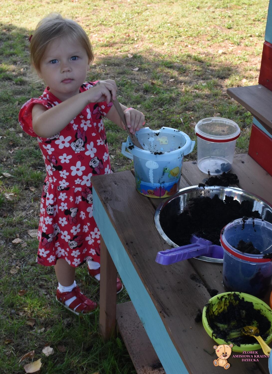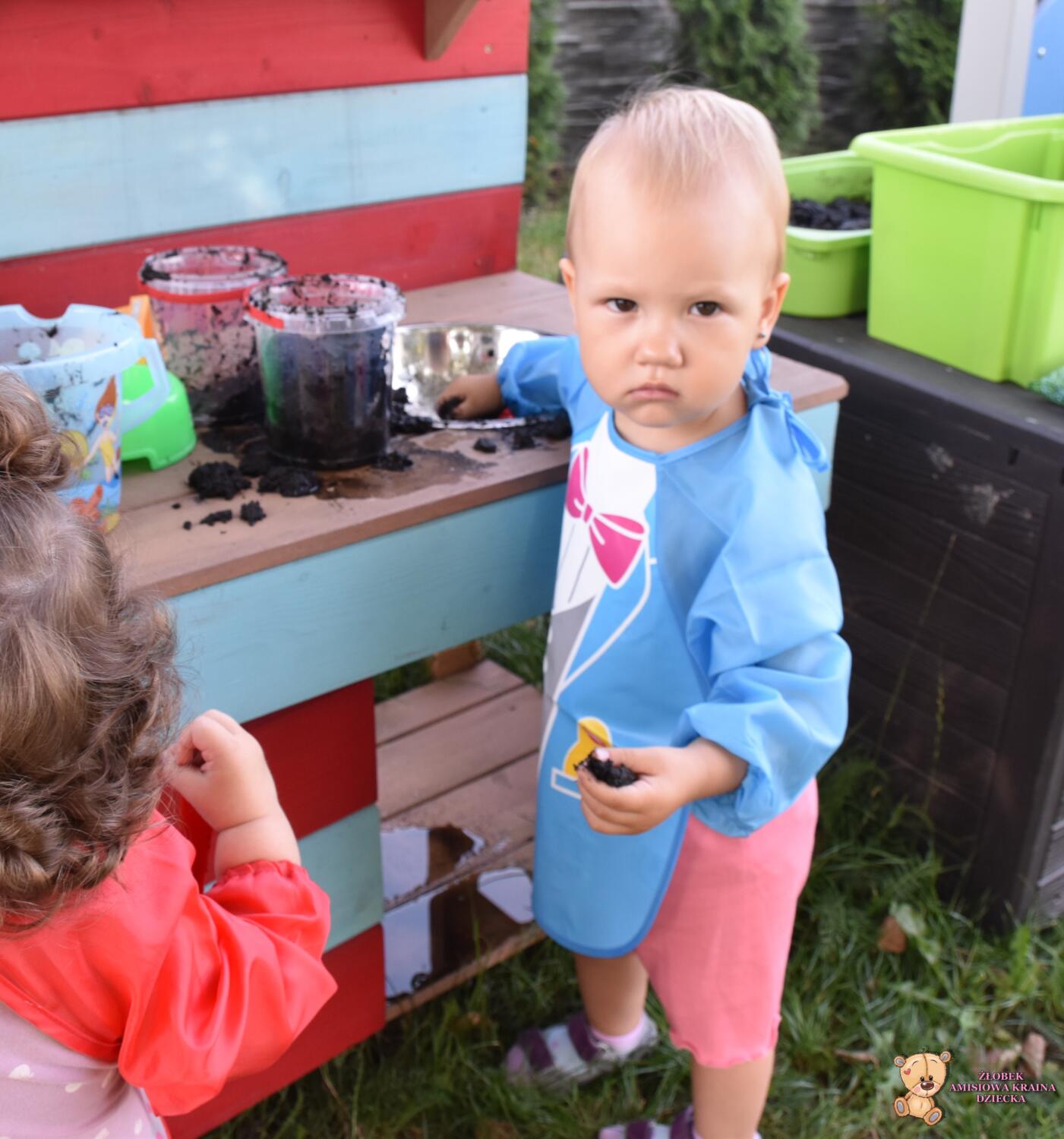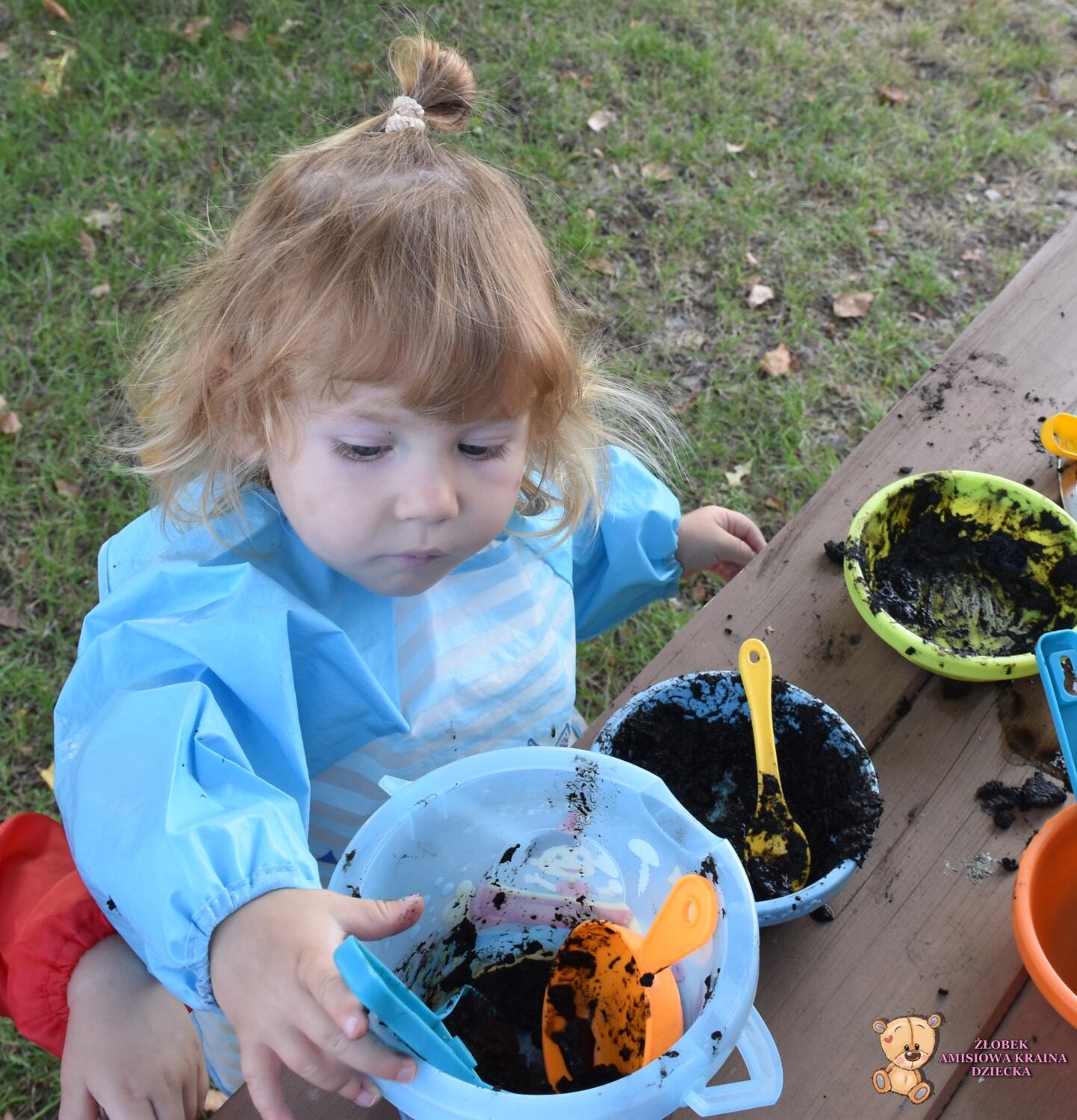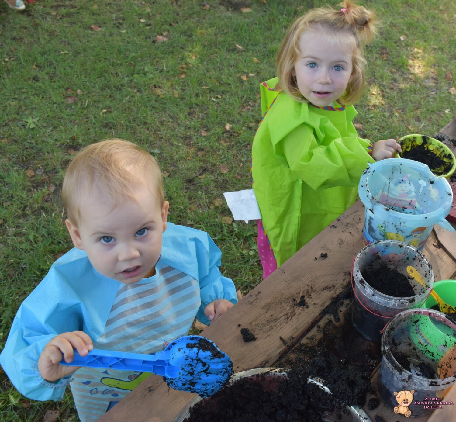 Dziś na zajęciach z metody Montessori Amisie bawiły się na dworze błotkiem ![]()