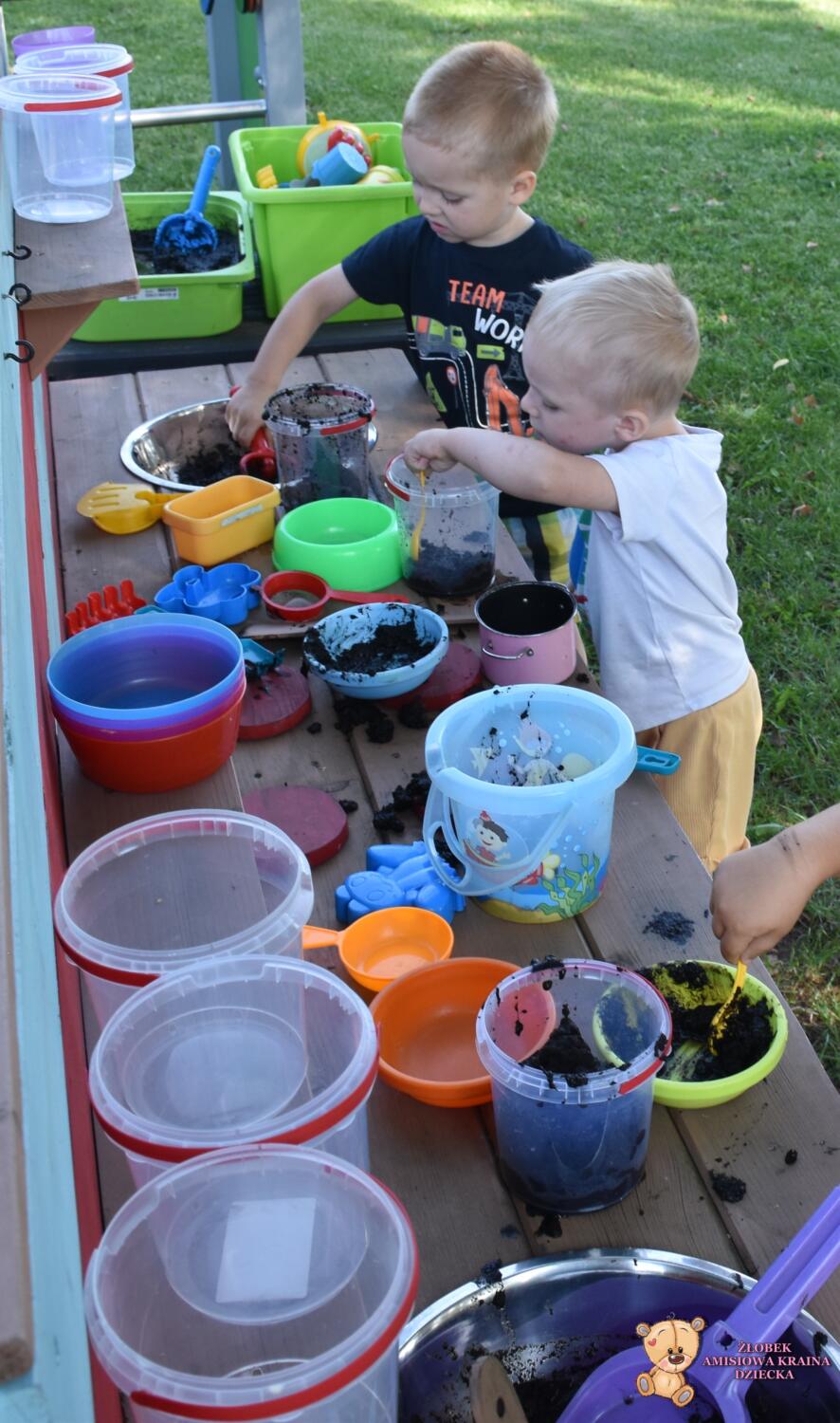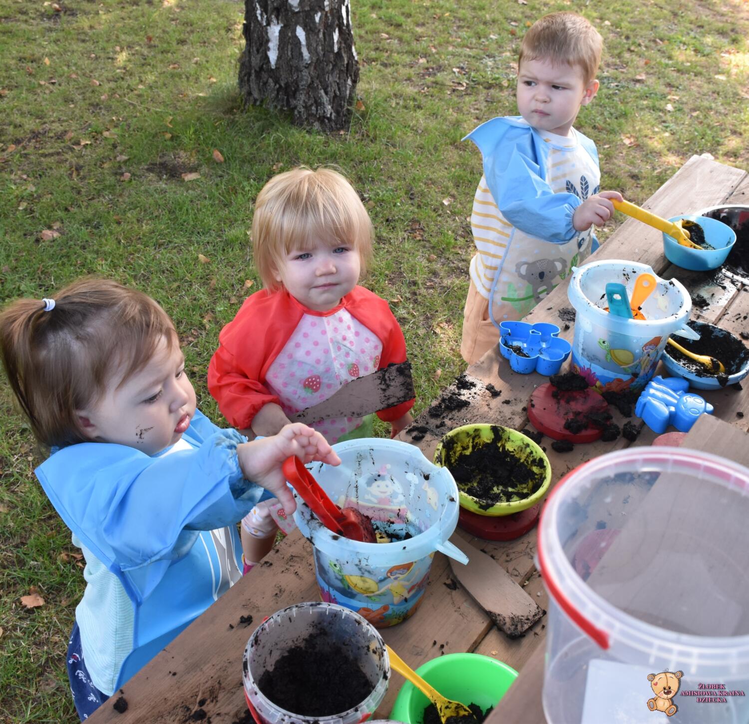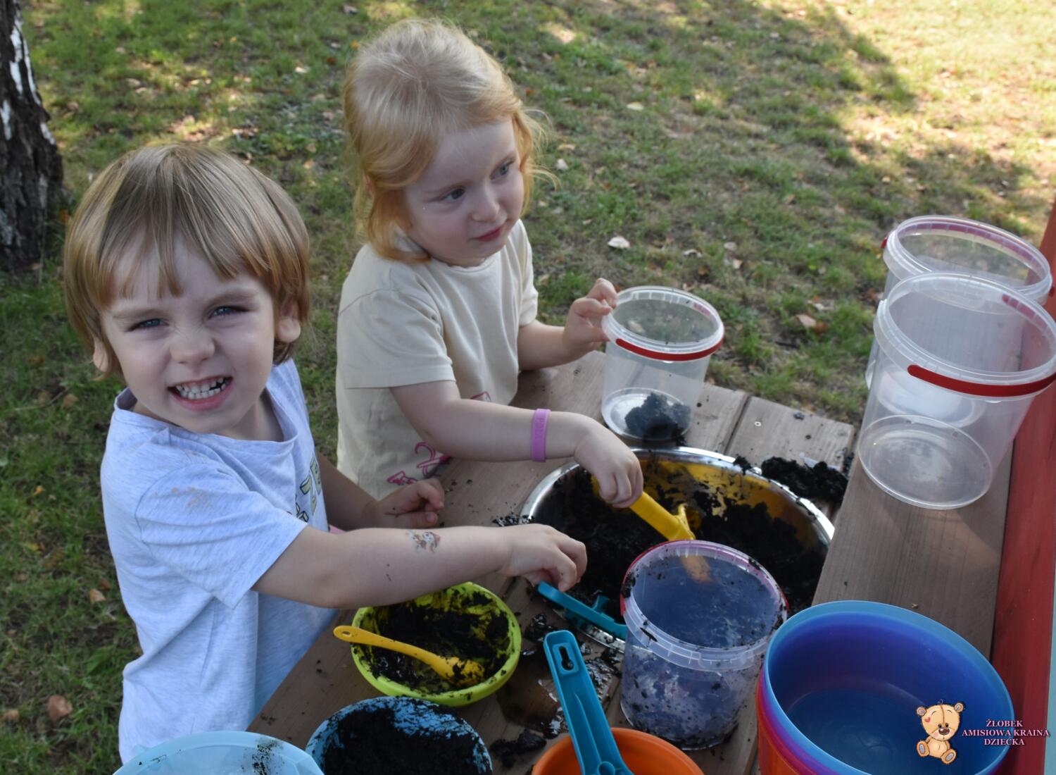 Dziś na zajęciach z metody Montessori Amisie bawiły się na dworze błotkiem ![]()