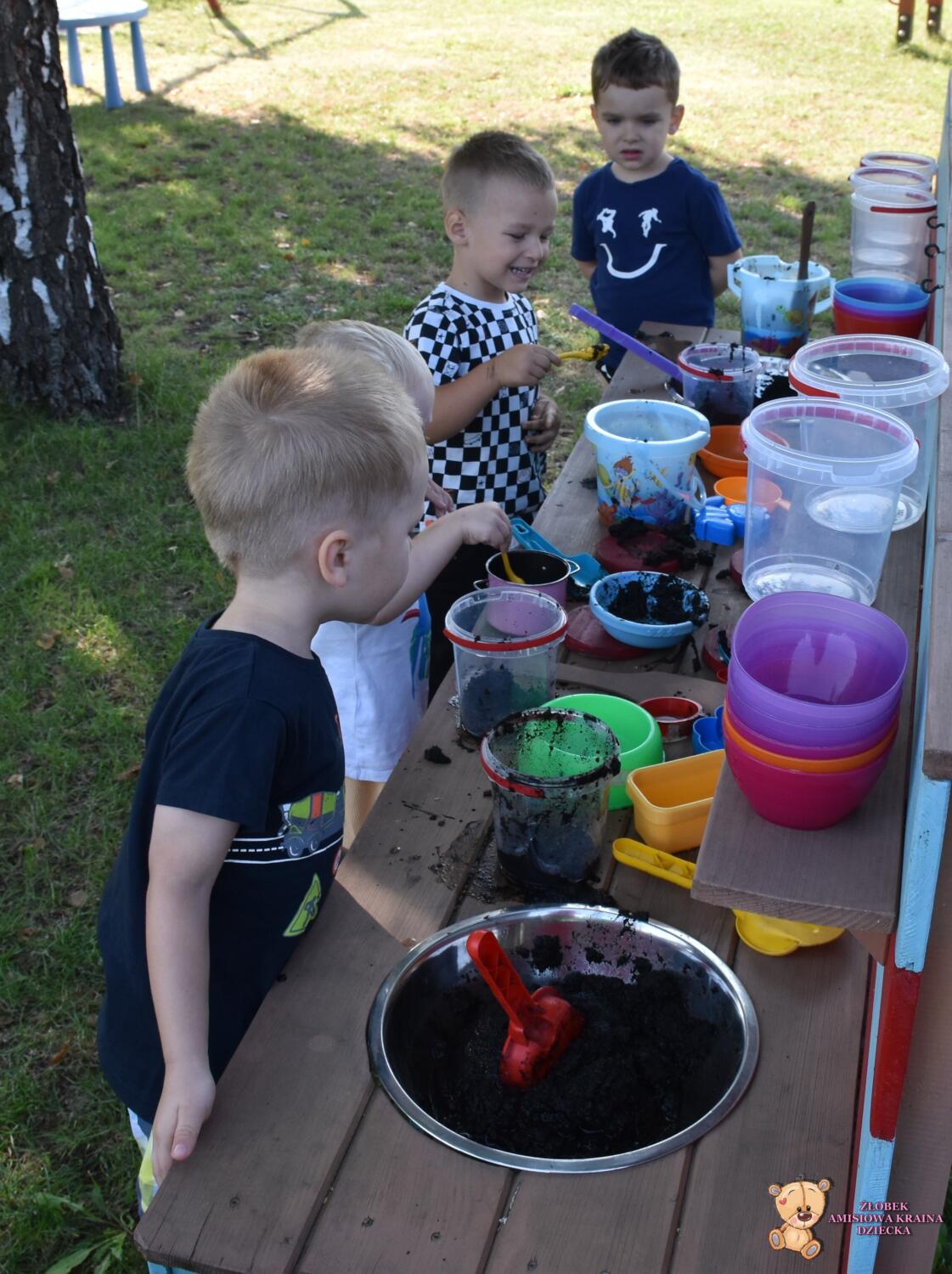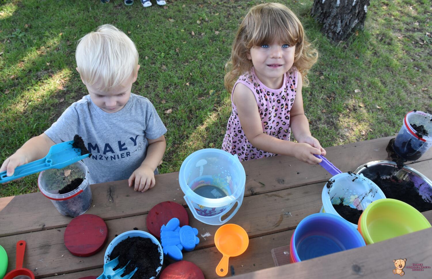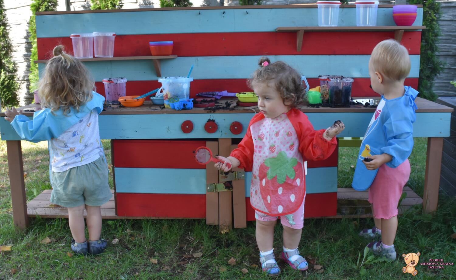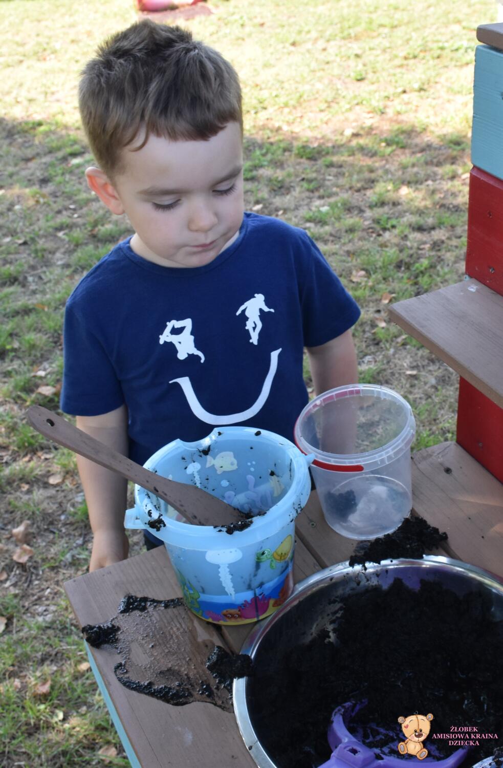 Dziś na zajęciach z metody Montessori Amisie bawiły się na dworze błotkiem ![]()
