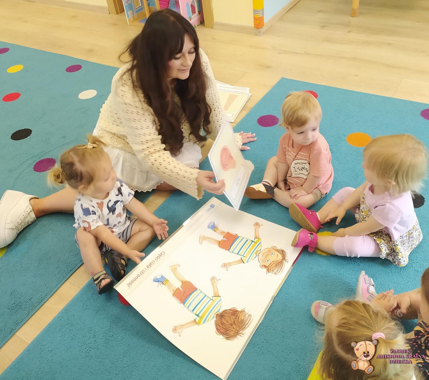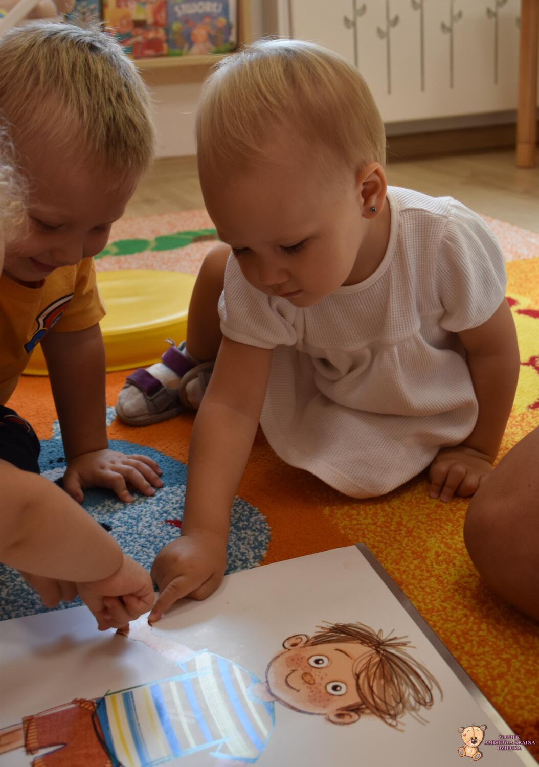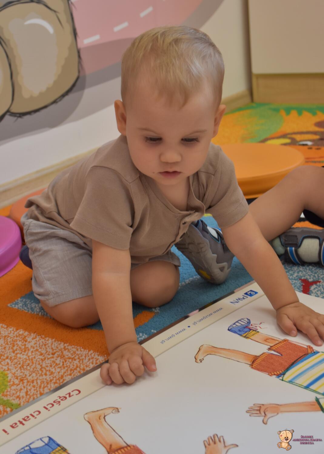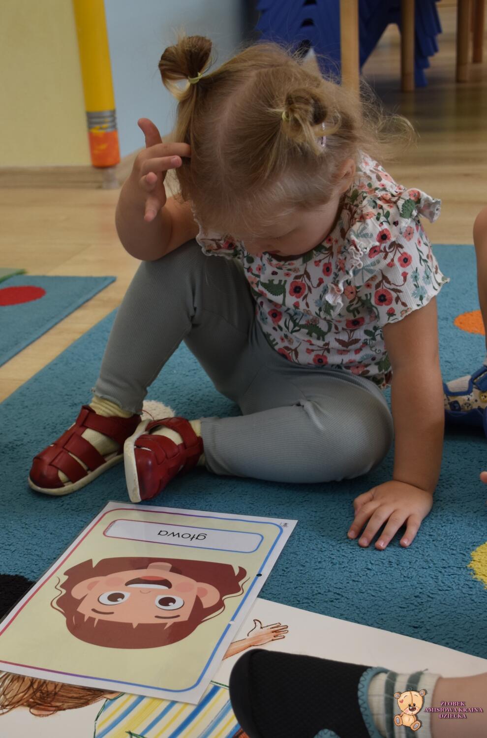 Dziś części ciała. Ciocia przyniosła plansze na których powtórzyliśmy sobie części naszego ciała. Poszło nam bardzo dobrze.