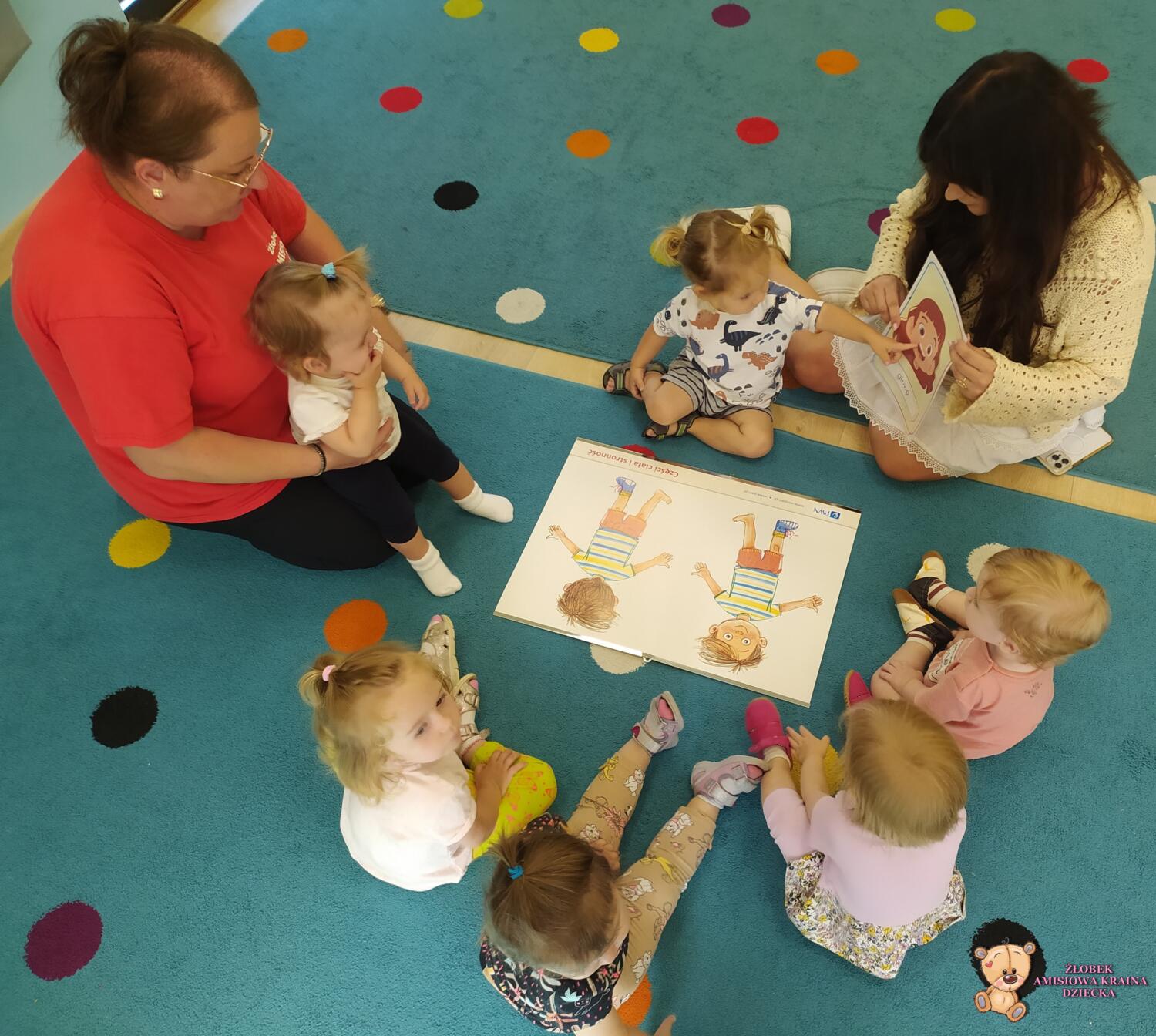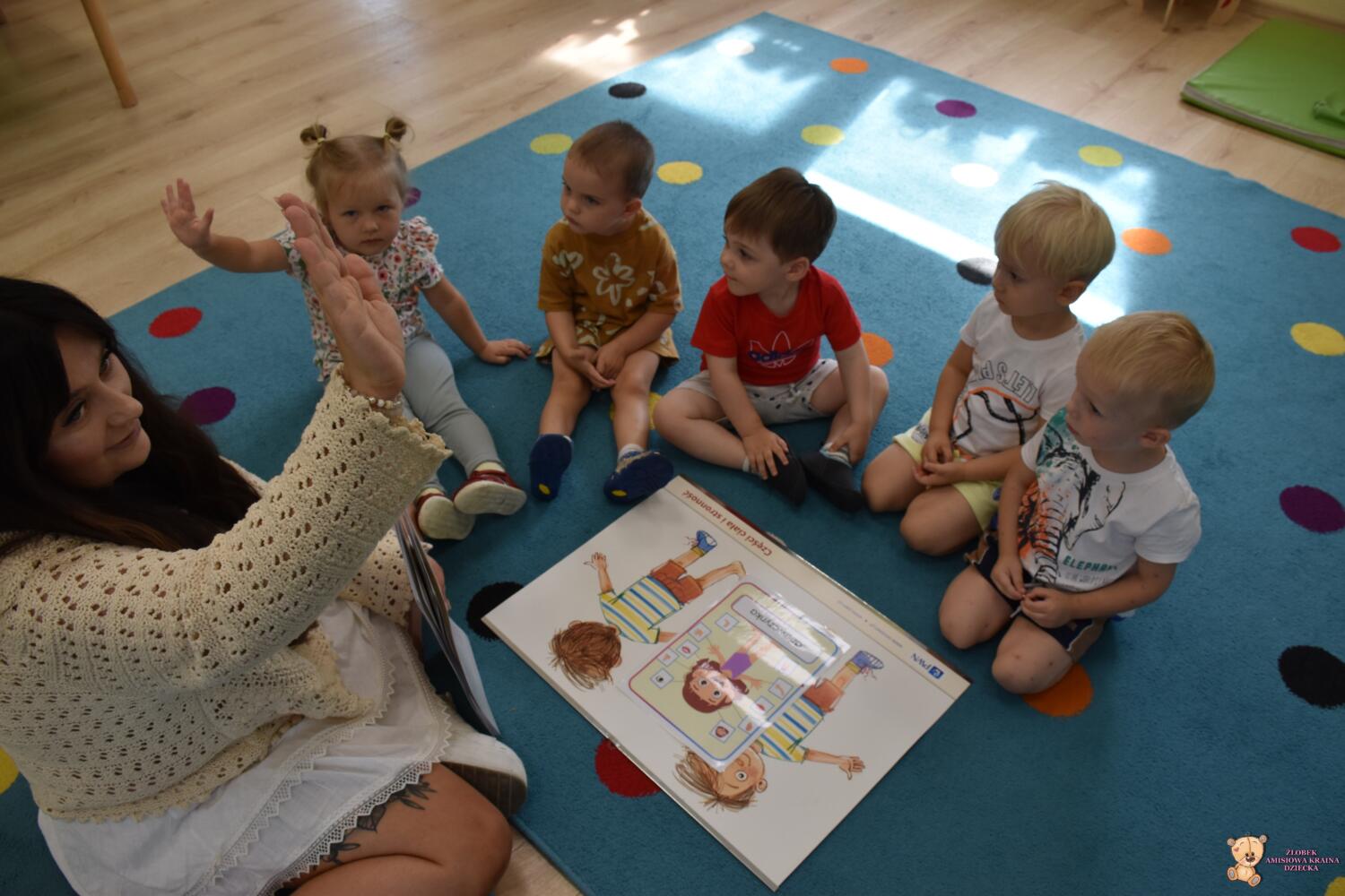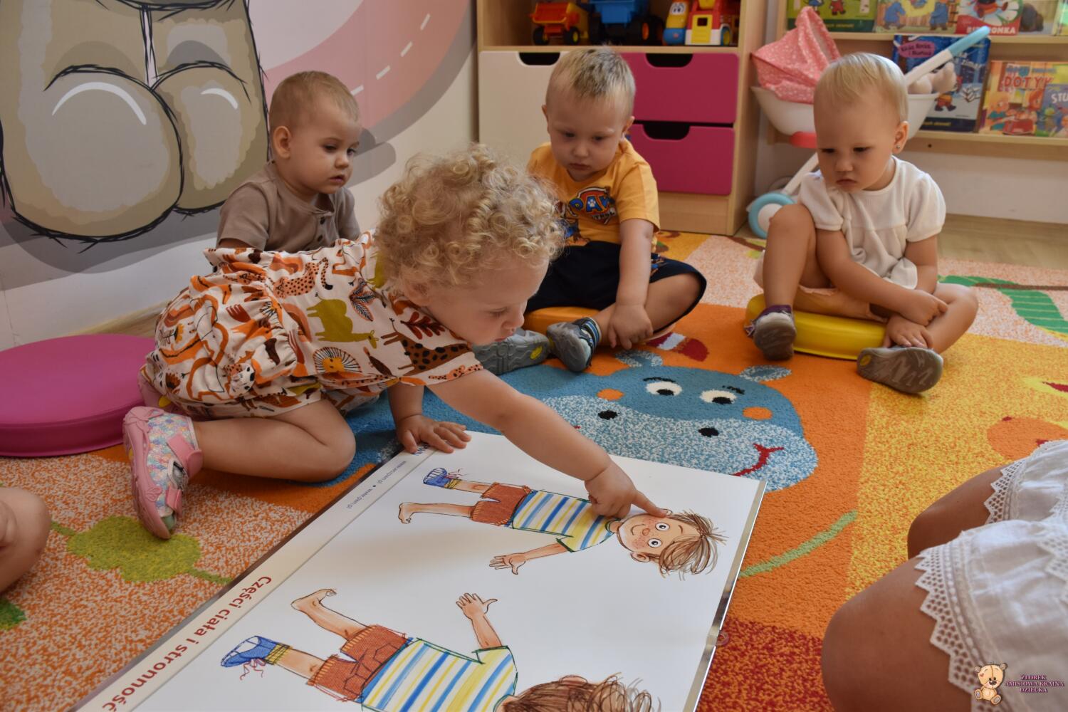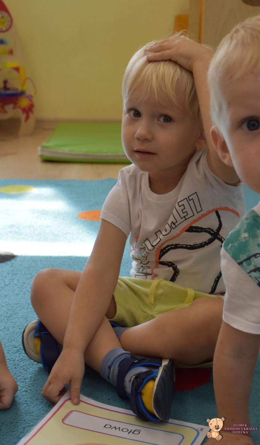 Dziś części ciała. Ciocia przyniosła plansze na których powtórzyliśmy sobie części naszego ciała. Poszło nam bardzo dobrze.