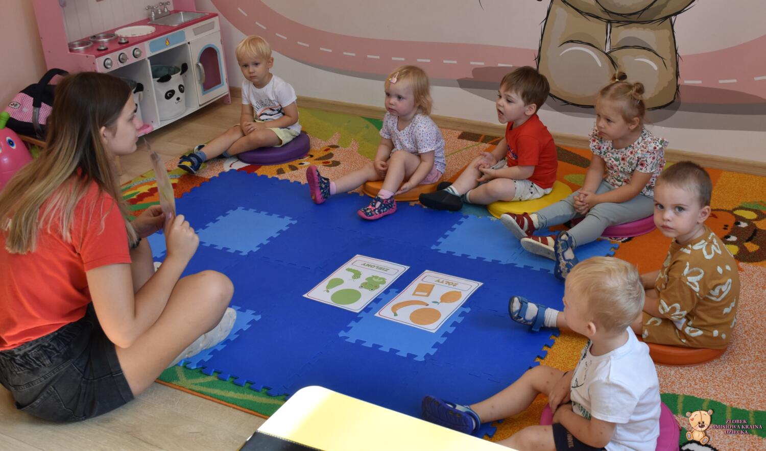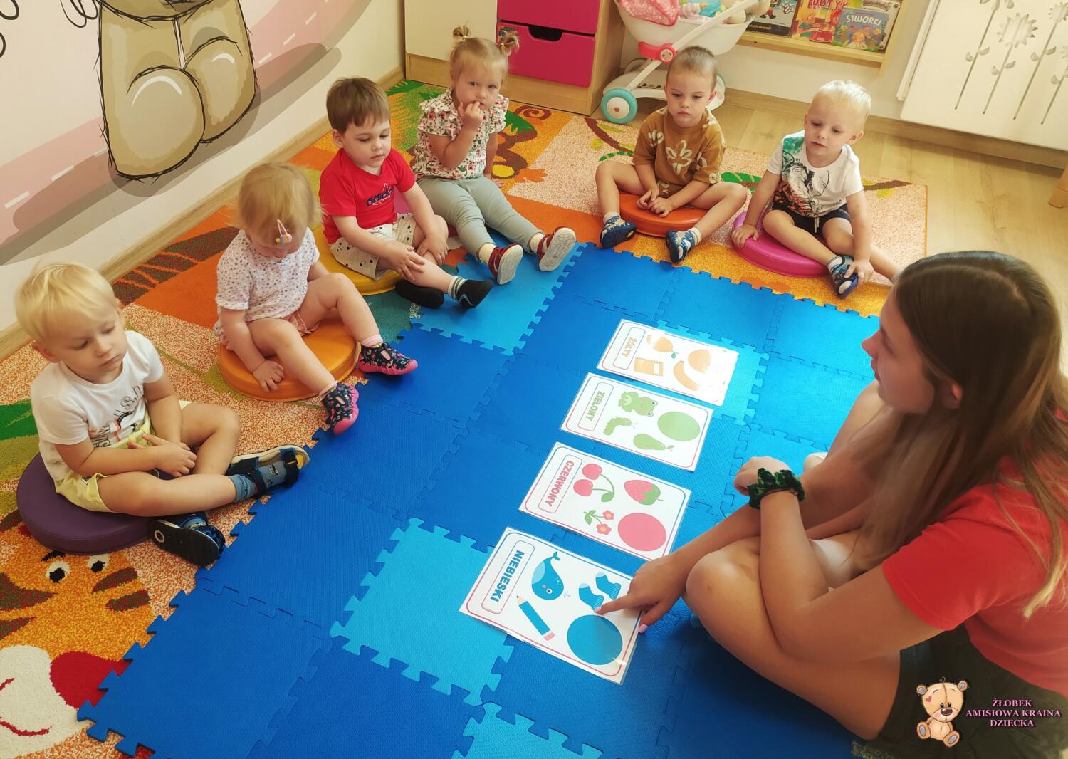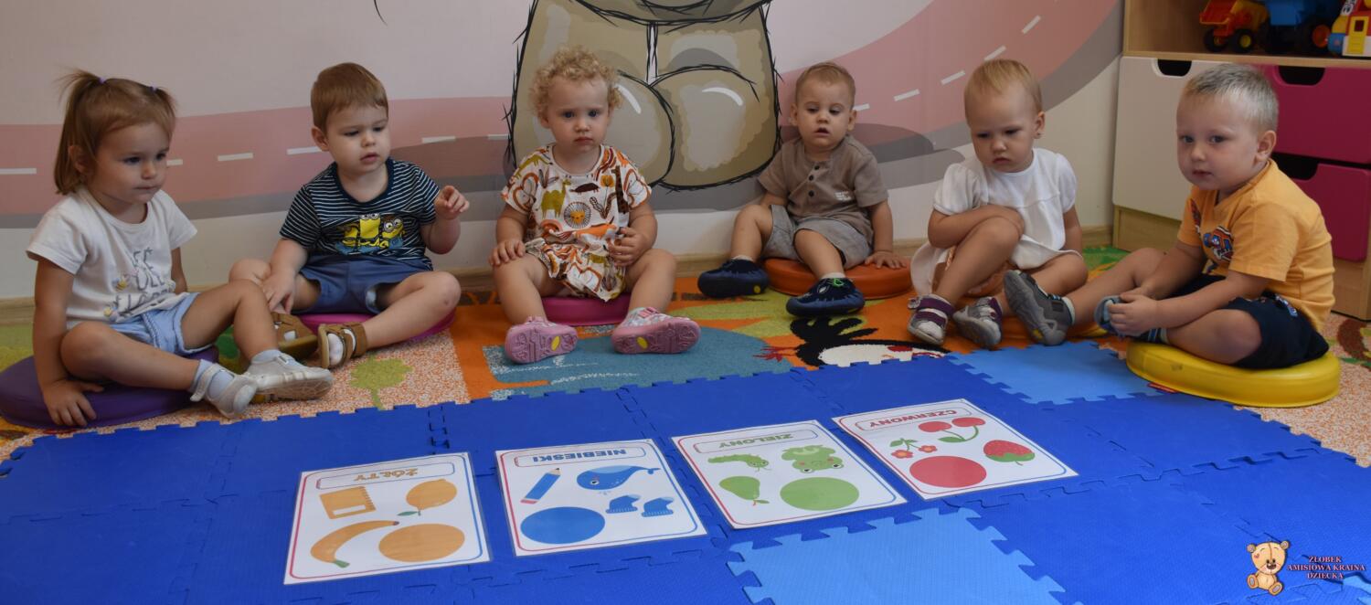 Ich tematem były kolory. Wspólnie zapoznaliśmy się z wszystkimi kolorami, patrząc na kolorowe plansze, nazywając to co się na nich znajduje. Na koniec