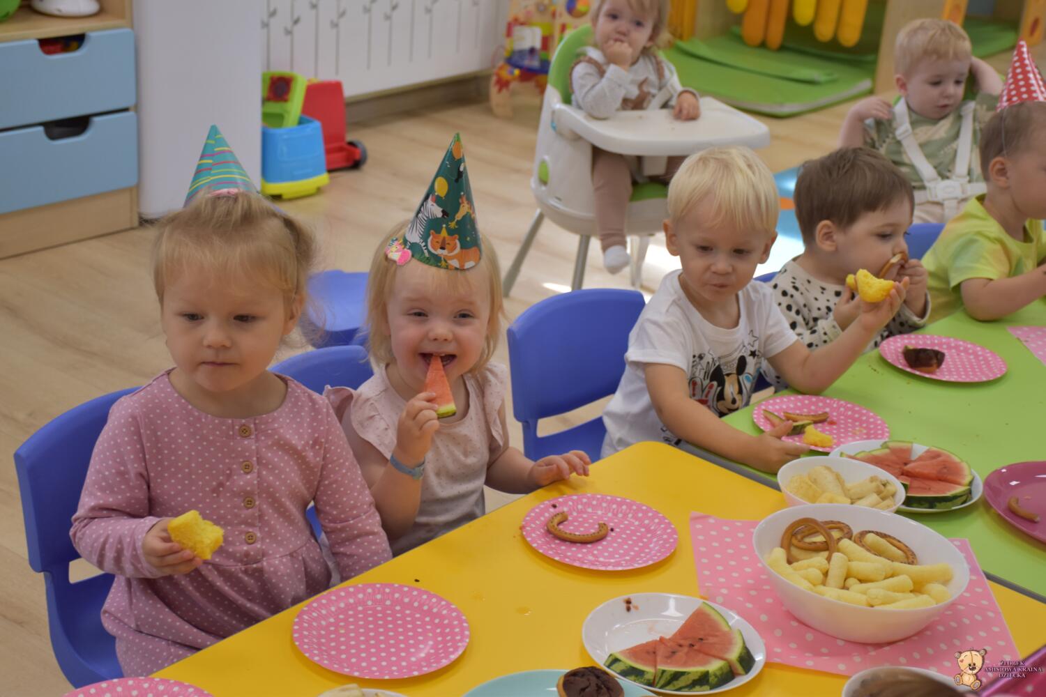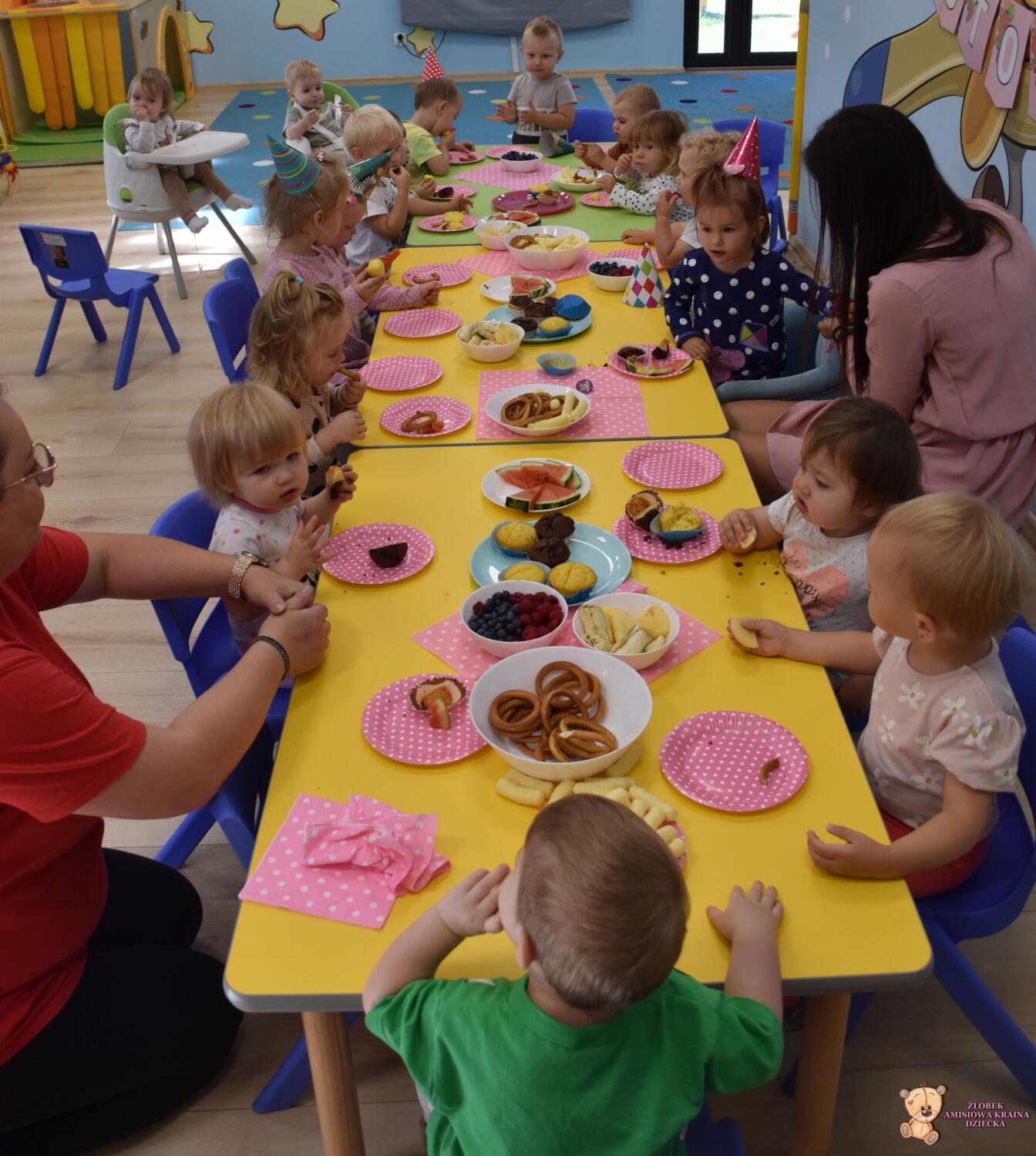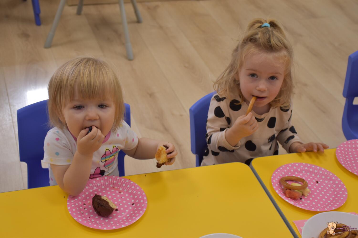 Dziś świętowaliśmy drugie urodziny Zuzi.W tym dniu towarzyszyła nam jej mama. Zabawę zaczęliśmy od wspólnego przywitania się i zaśpiewania sto lat. Następnie zasiedliśmy do stołu. Mama jubilatki przygotowała słodki poczęstunek. Zuziu jeszcze raz życzymy wszystkiego najlepszego!!
