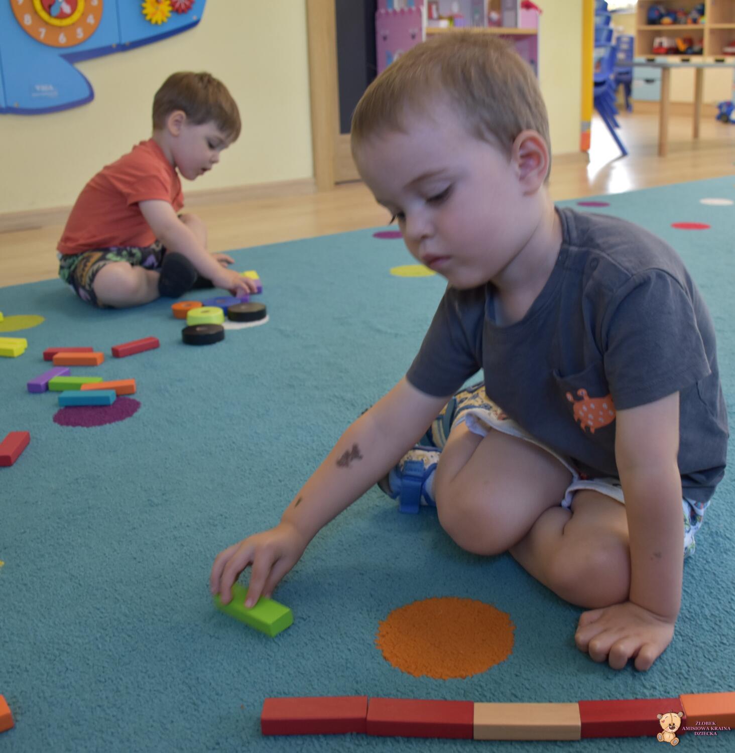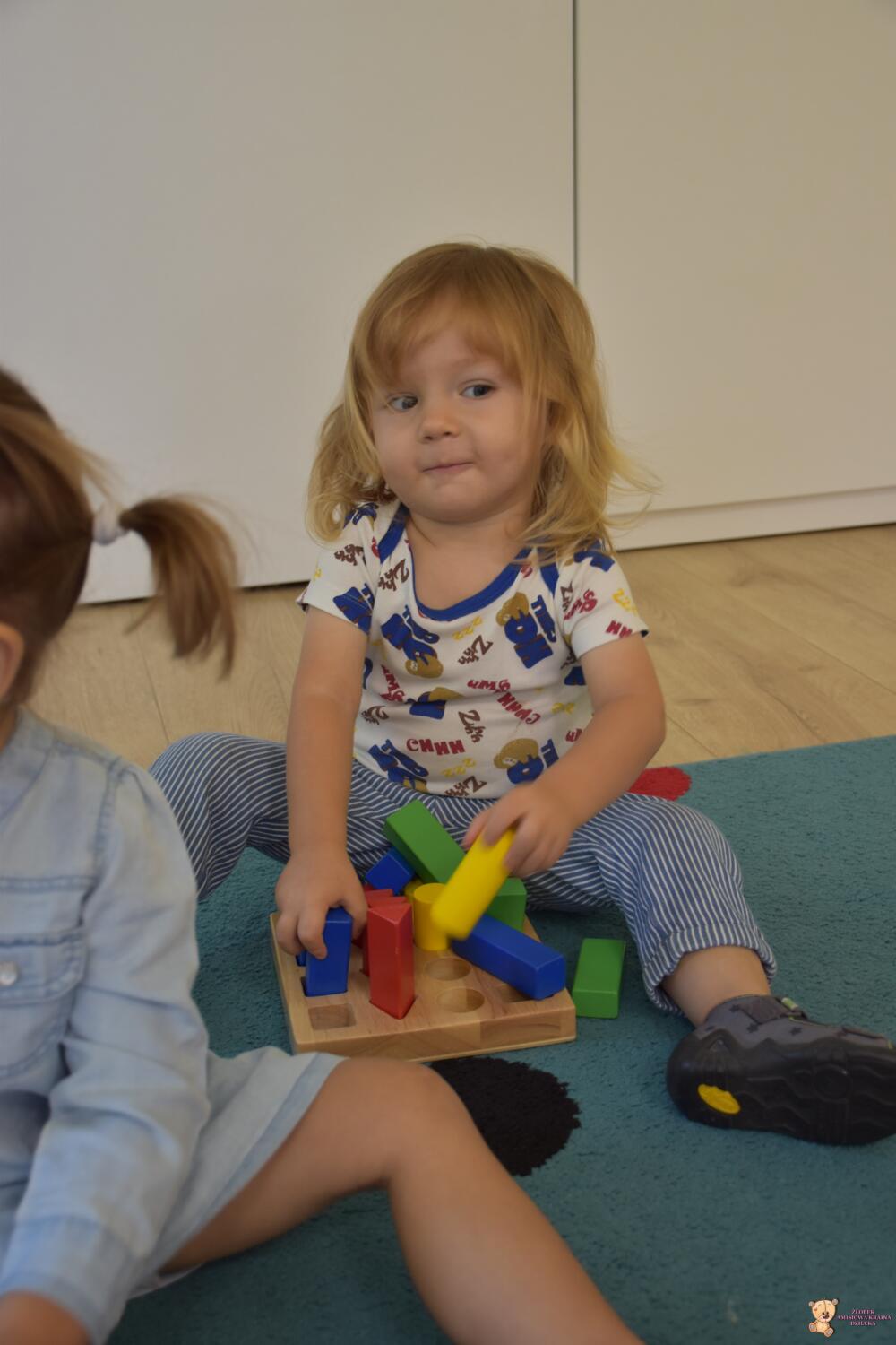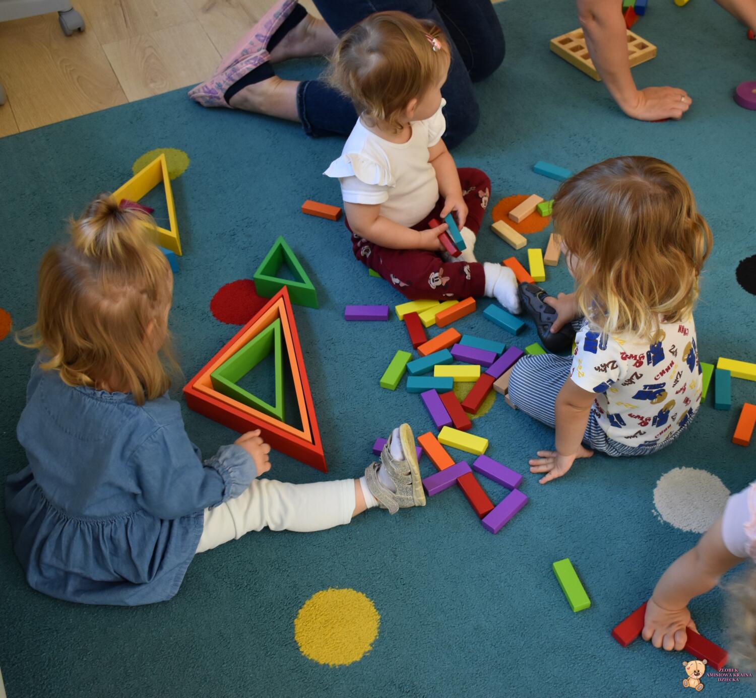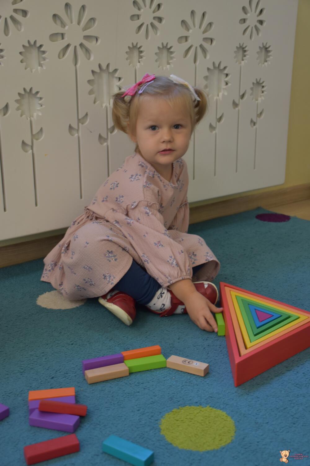 Dziś na zajęciach z metody Montessori Amisie bawiły się drewnianymi klockami